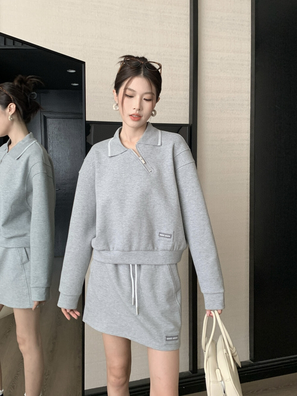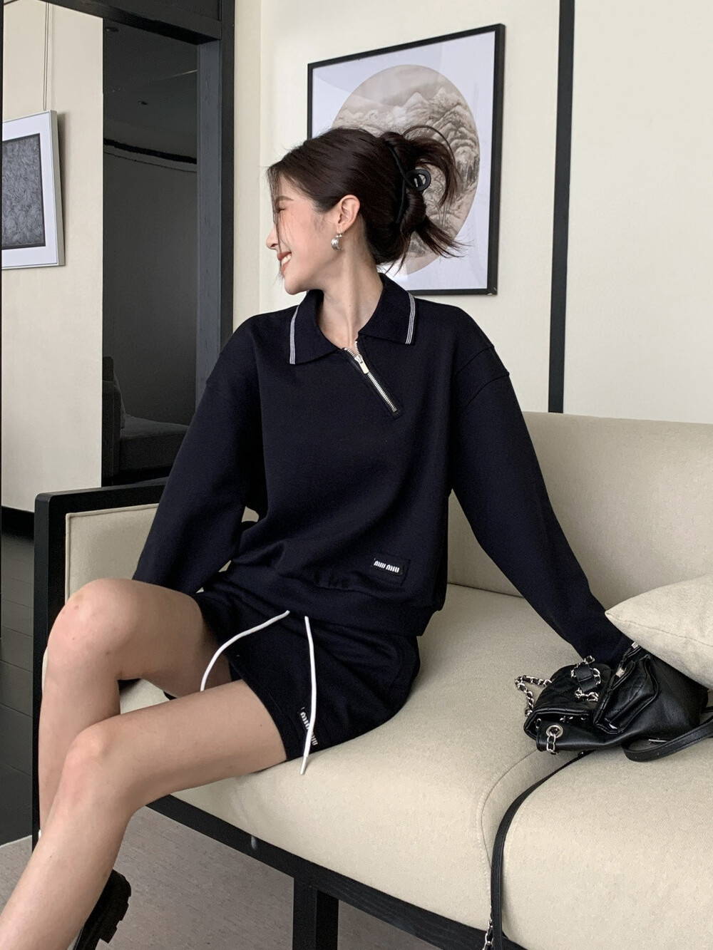 C. 뮤뮤 지퍼 라인 캐쥬얼 투피스