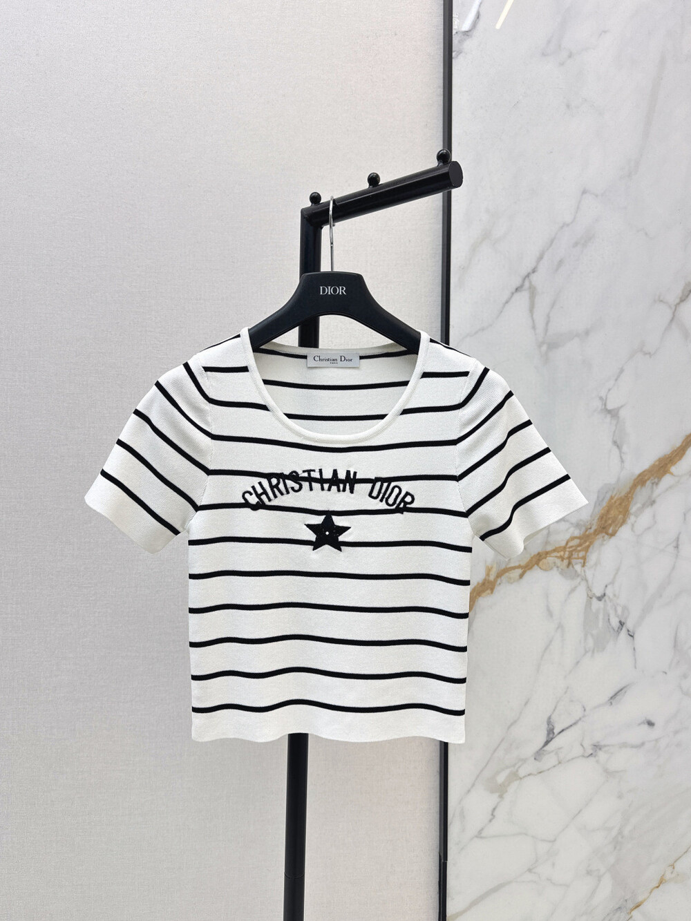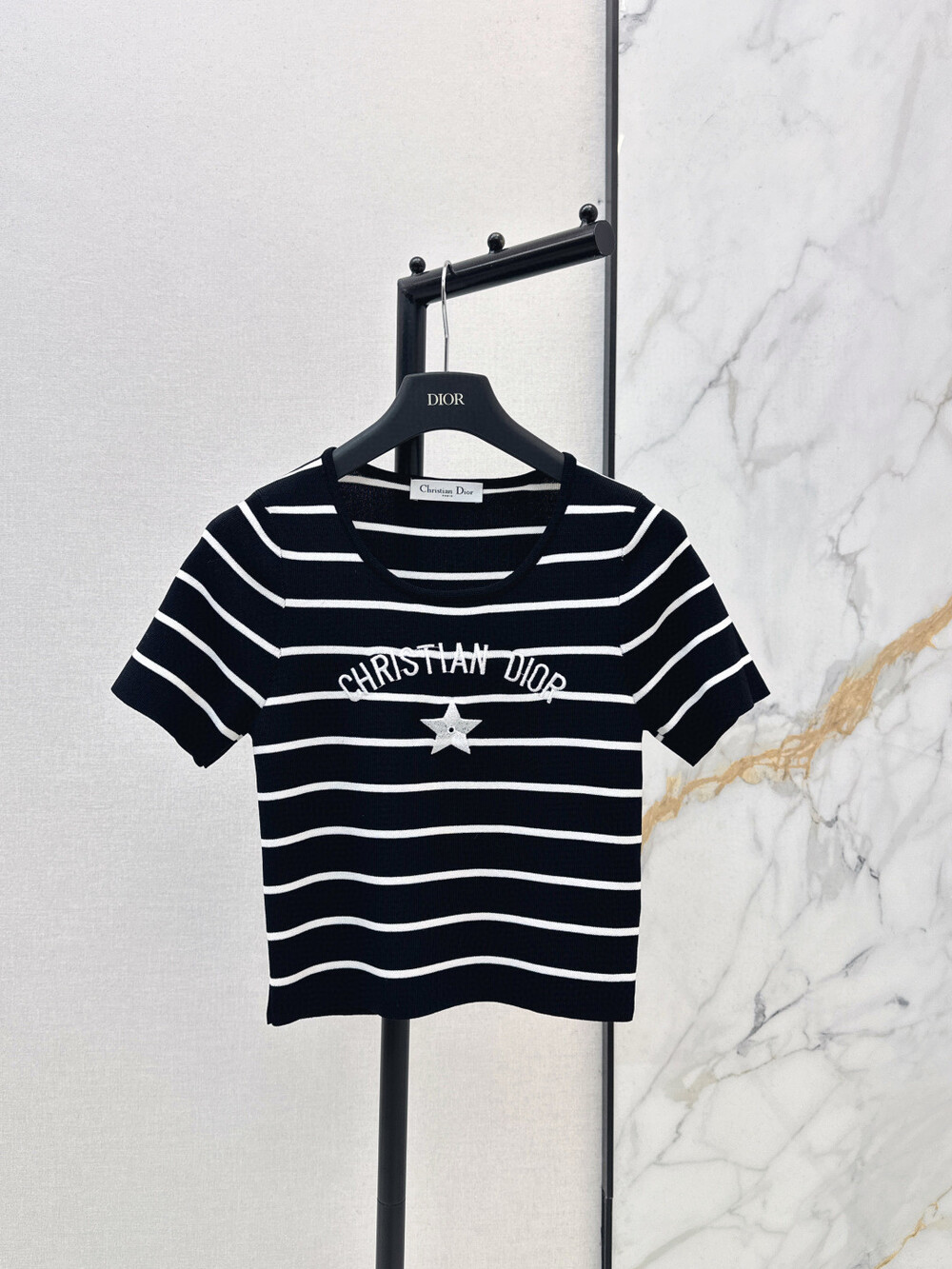 D. CD SS 단가라 반소매 니트