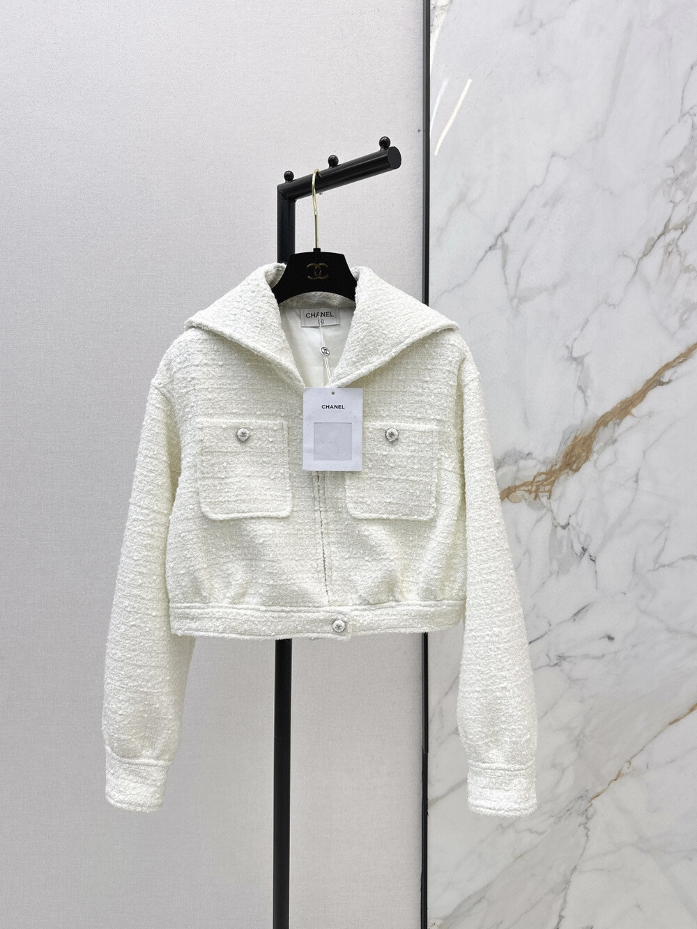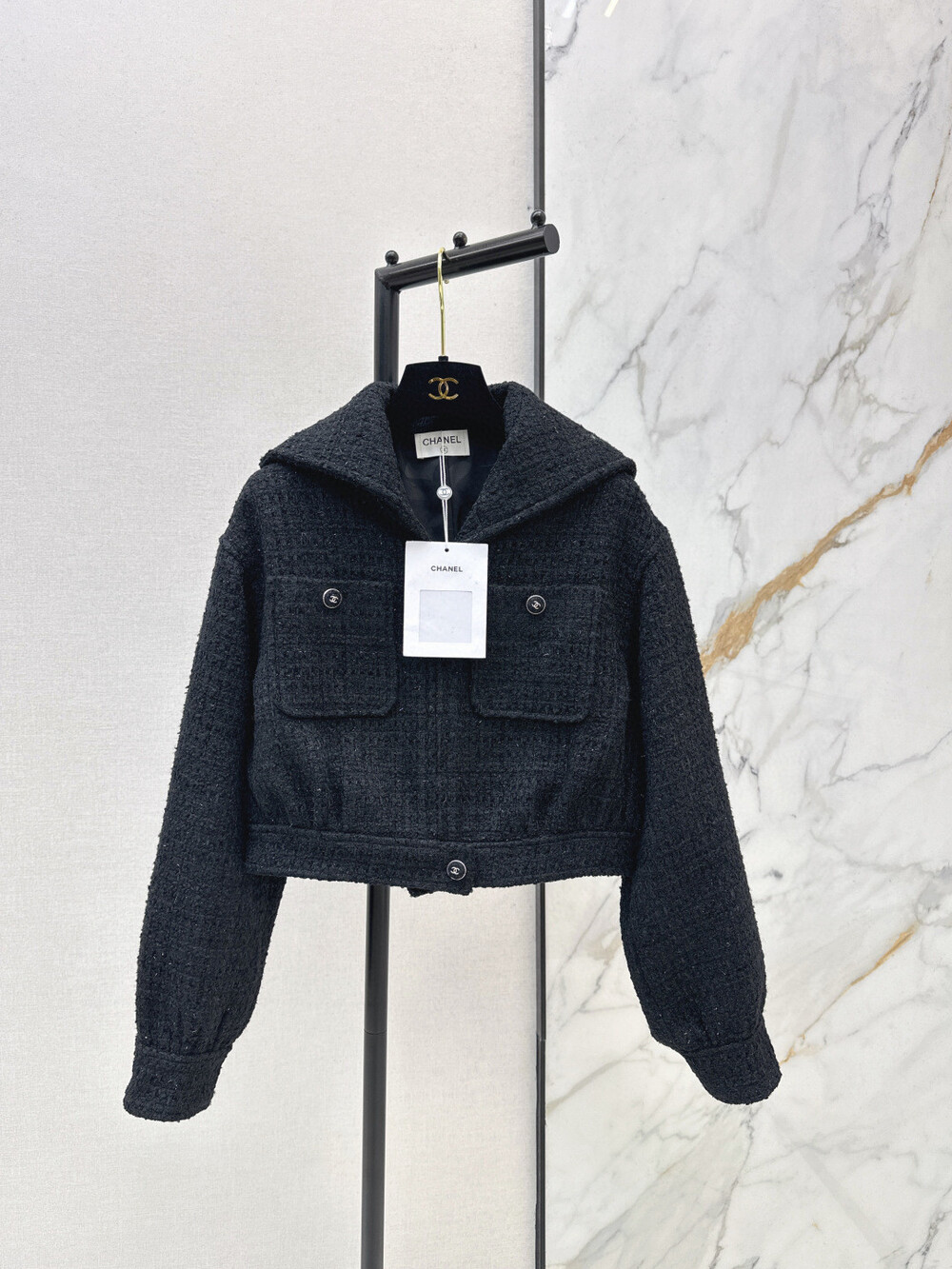 E. CC 케이프 크롭 트위드자켓