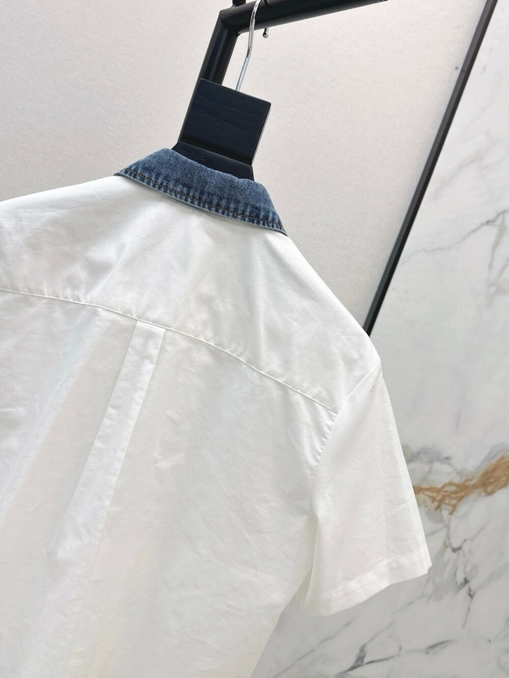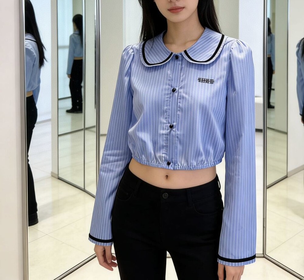 G. 알왕 데님 카라 크롭 셔츠