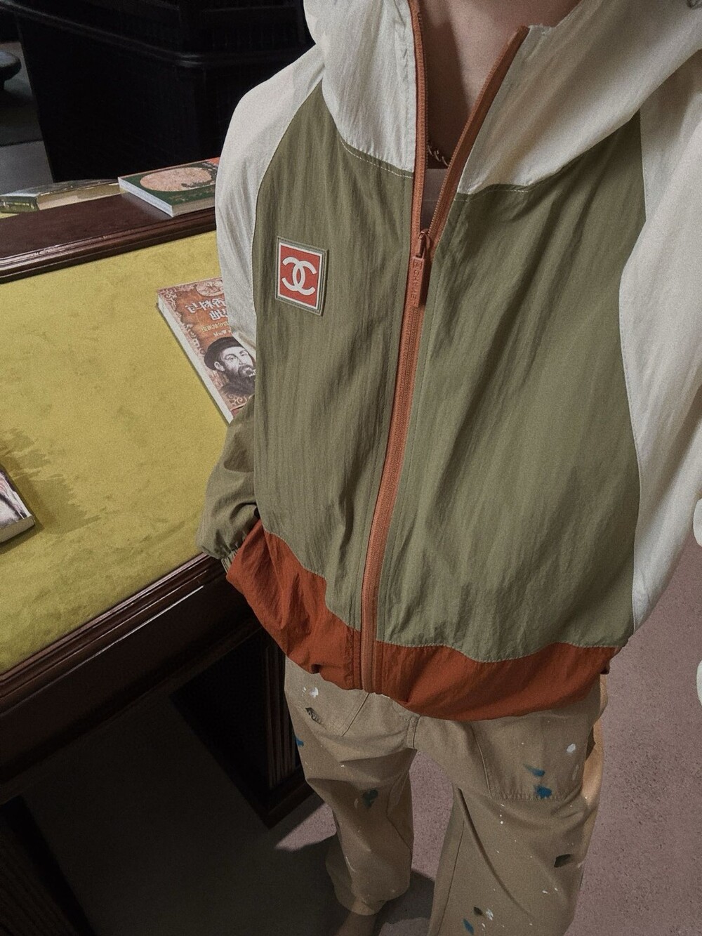 I. CC 배색 올리브 윈드 브레이커