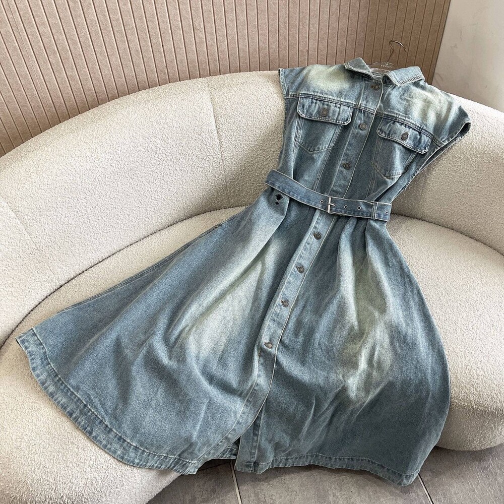 J. CD 반소매 데님 벨티드 원피스