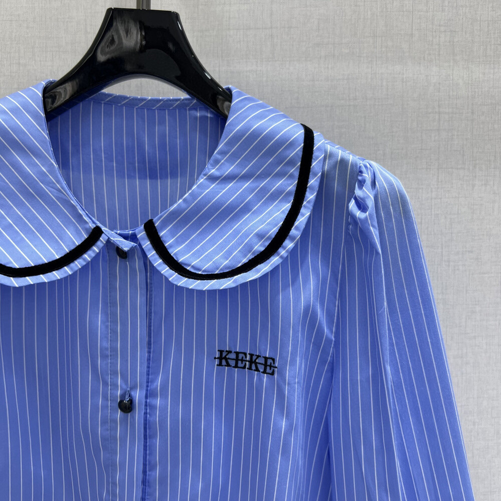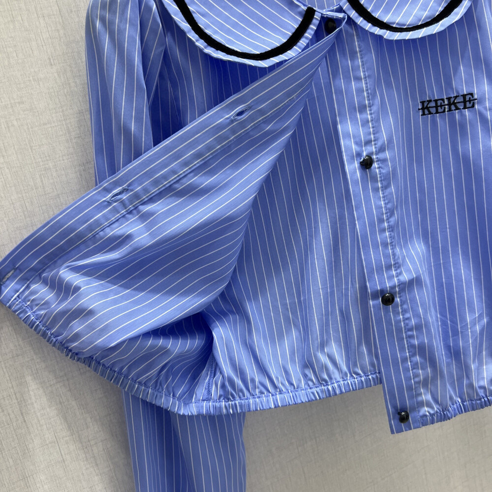 O. KE 크롭 스트라이프 븝라우스
