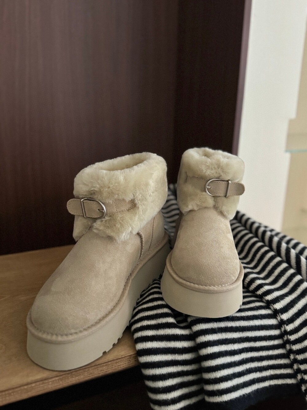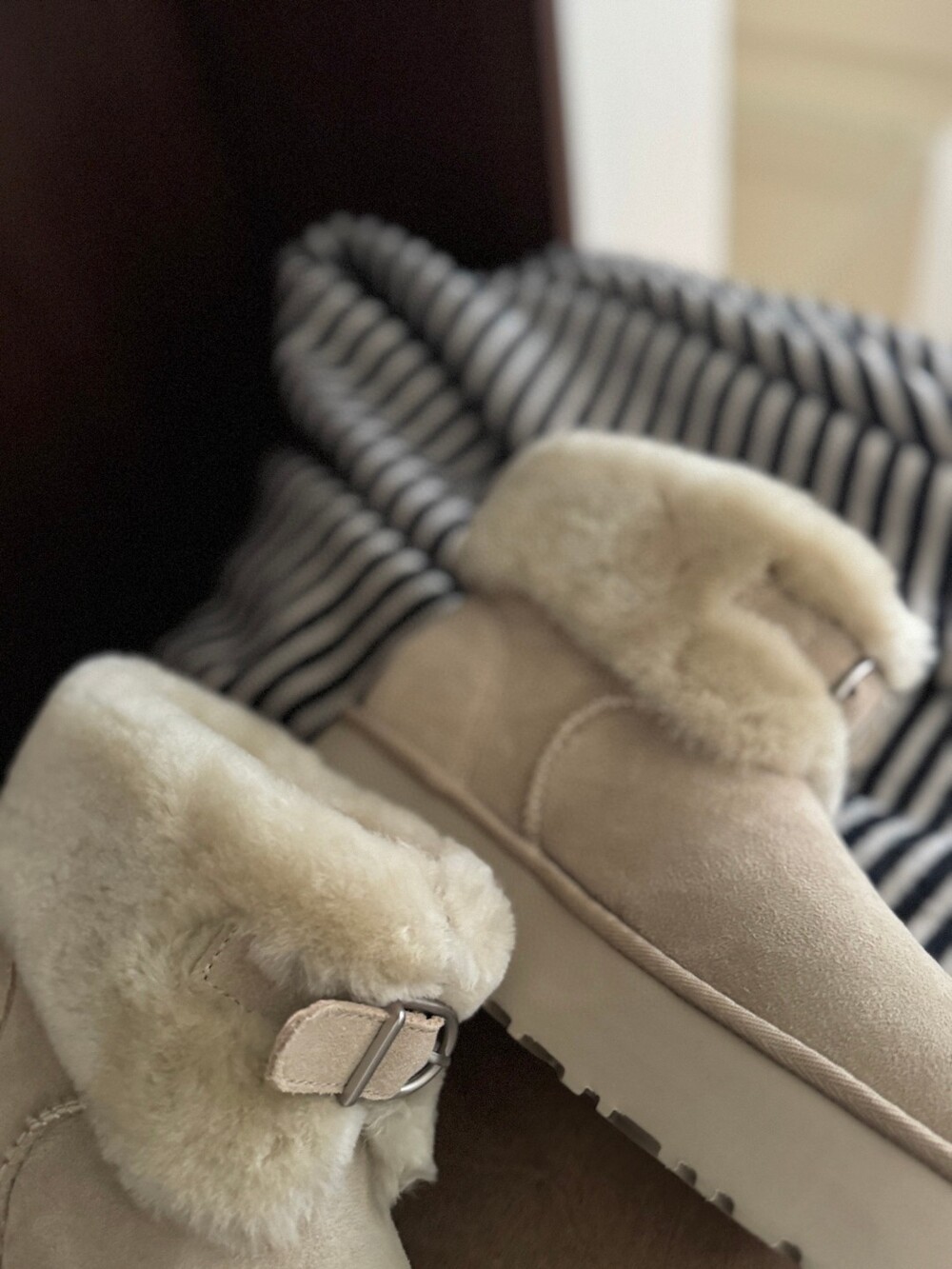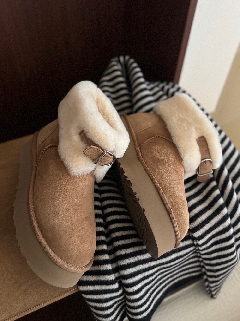 UGG 특유의 포근한 무드에 버클 디테일을 더한 프리미엄 윈터 부츠입니다