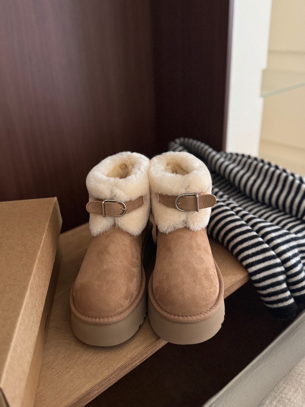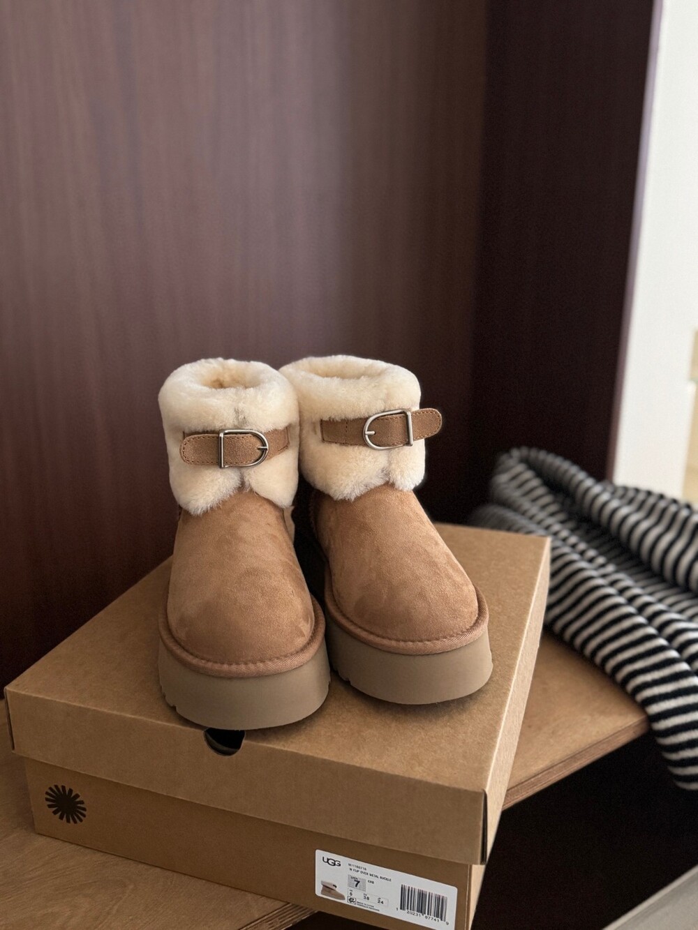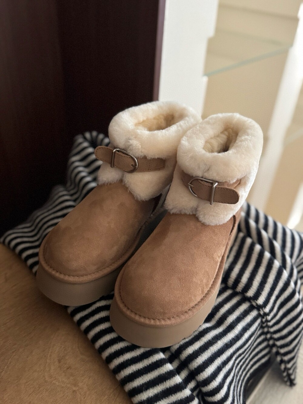 UGG 특유의 포근한 무드에 버클 디테일을 더한 프리미엄 윈터 부츠입니다