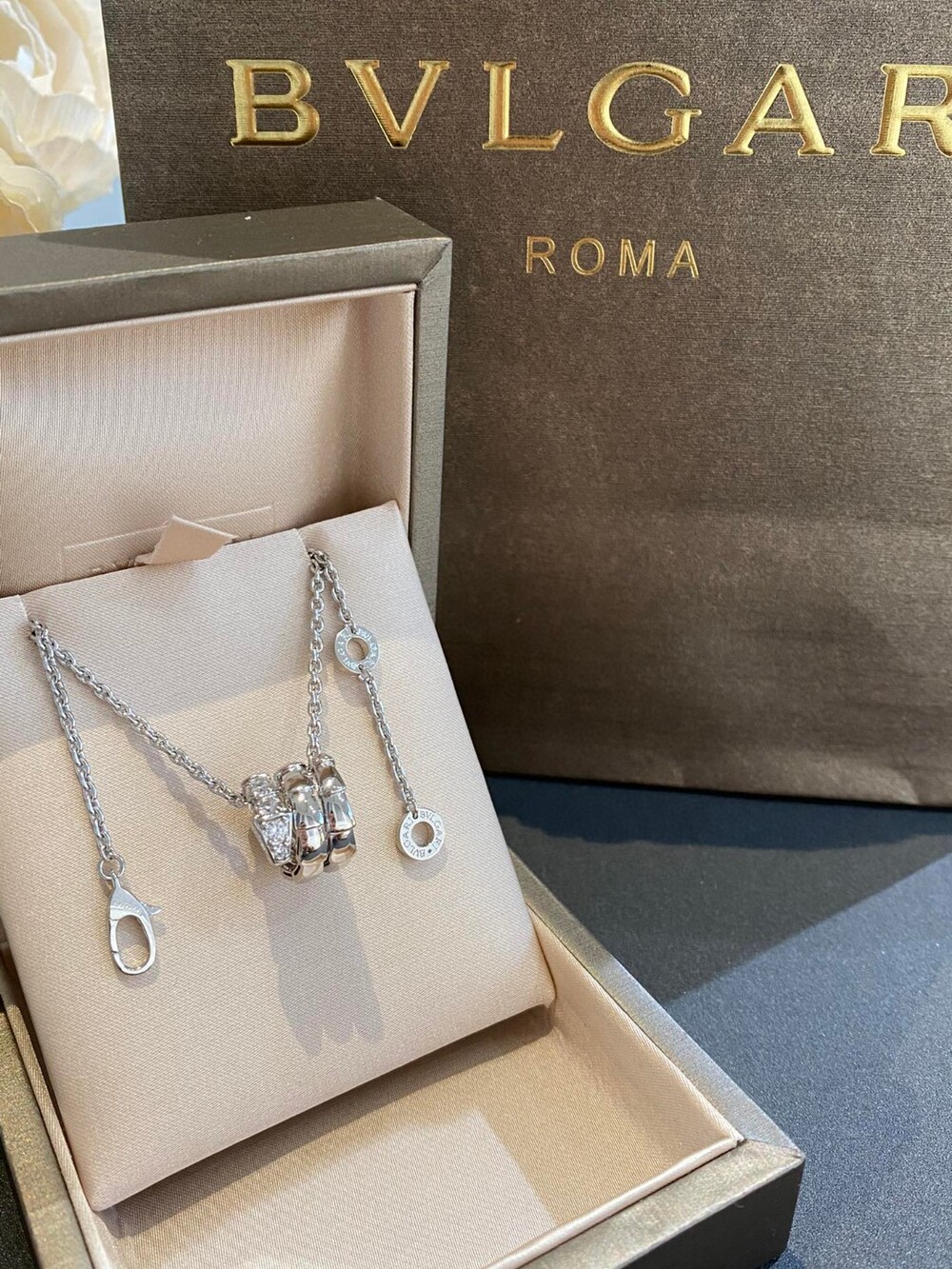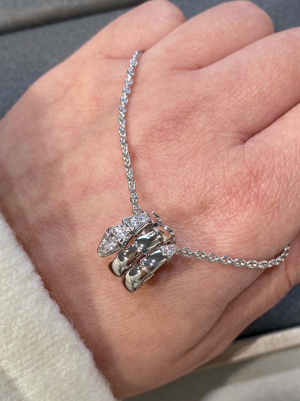 treasure new, snake pendant necklace, serpenti viper jewelry with pavé diamonds. With geometric patterns and sharp shapes to outline the mysterious snake posture, exquisite scales radiate human light, showing the unique subtle curves of the serpenti series.