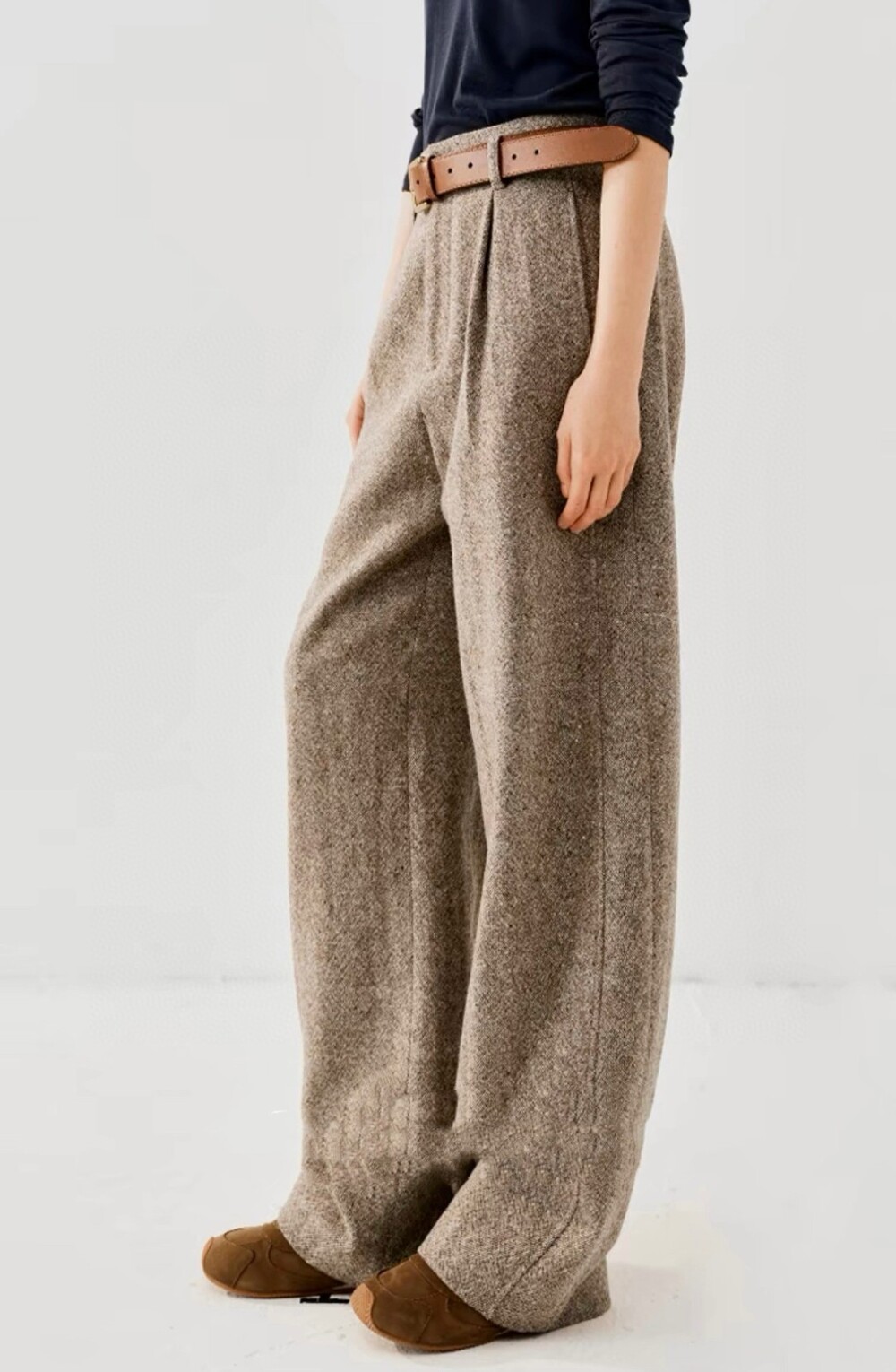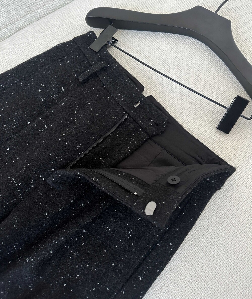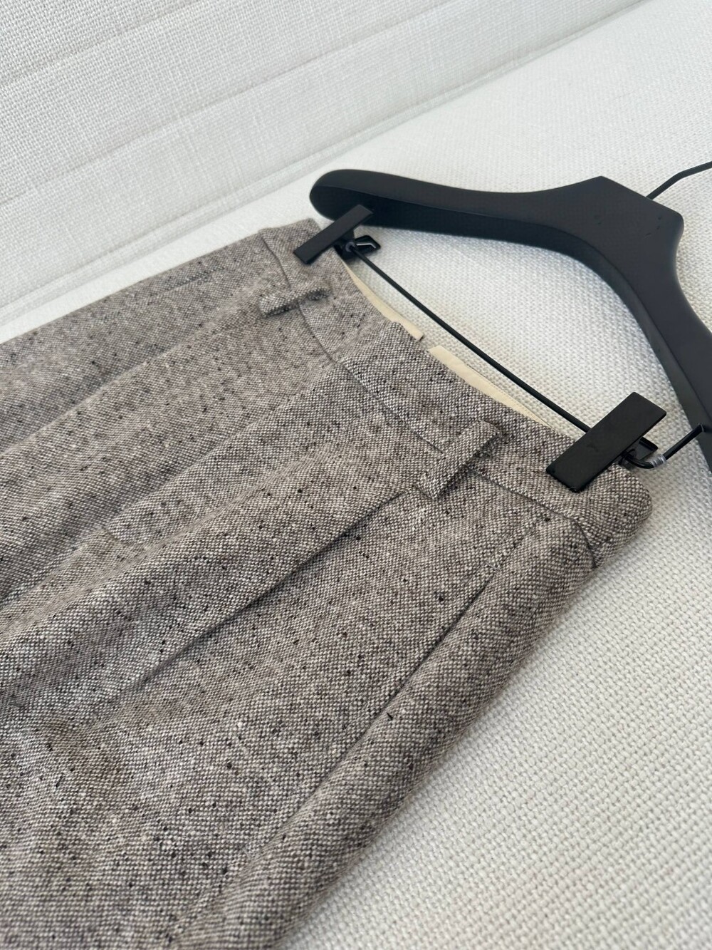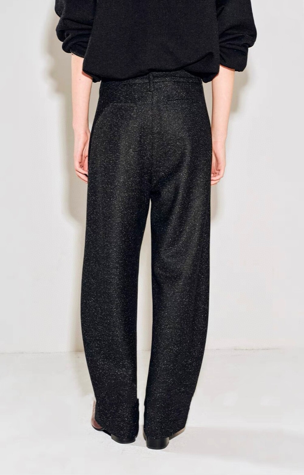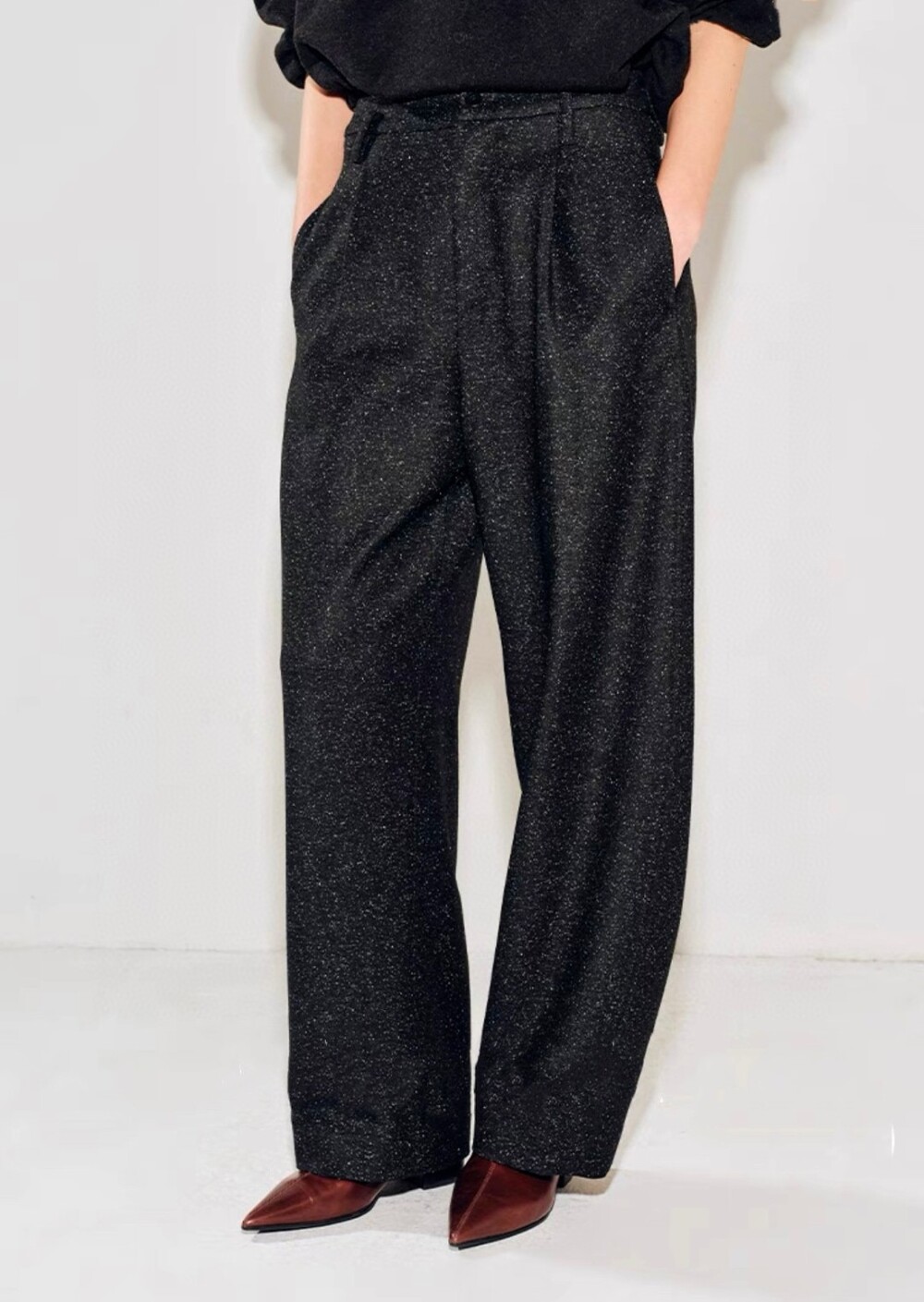 고급스러운 화사한 울 텍스처로 분위기가 바로 살아나는 커브 팬츠예요.