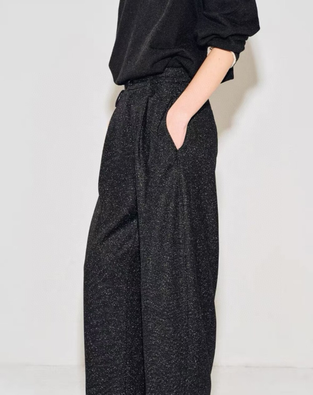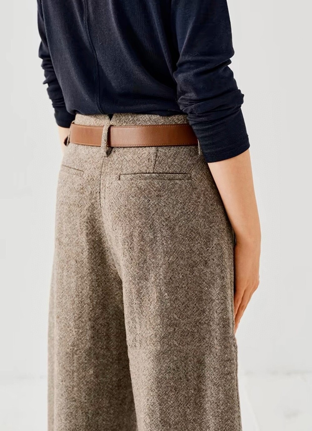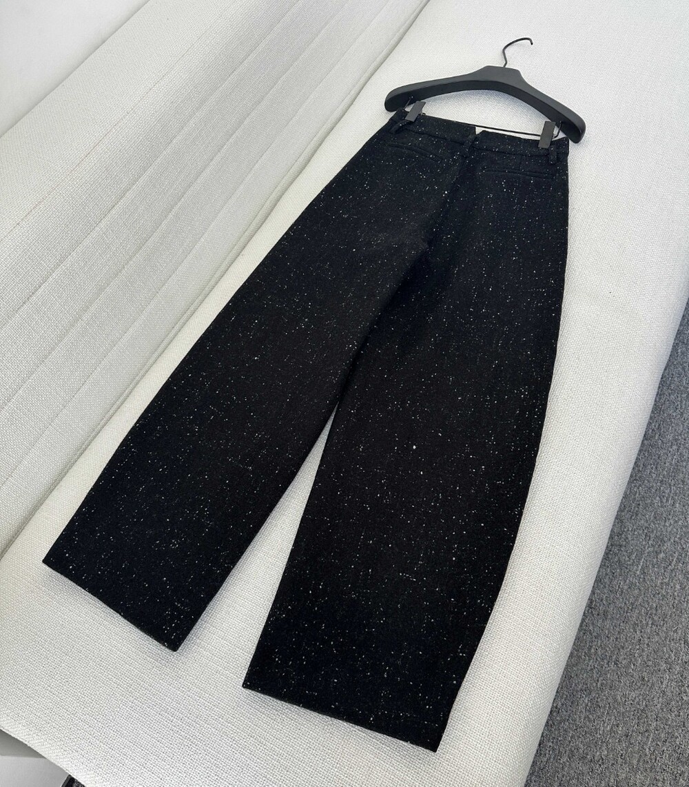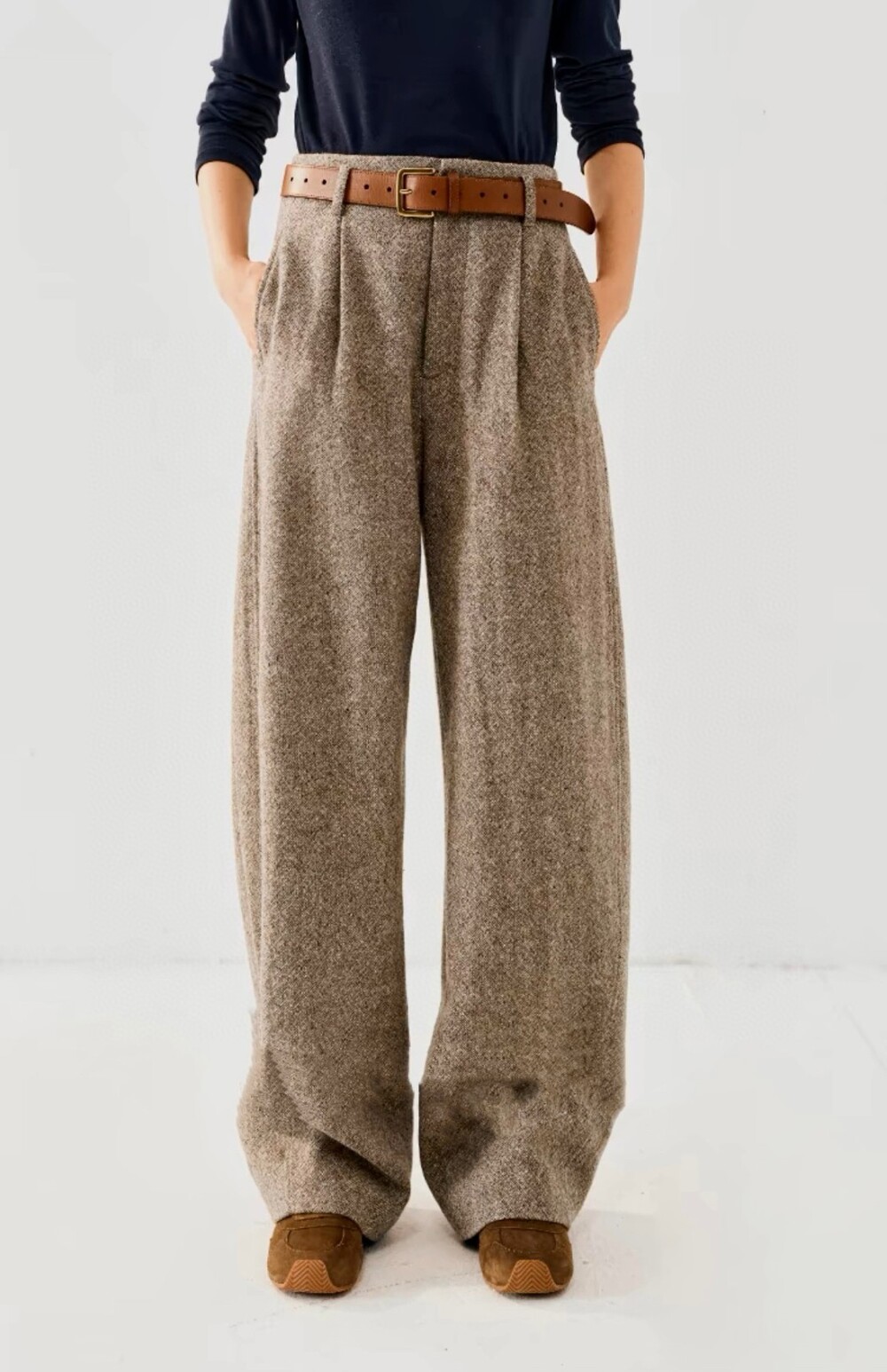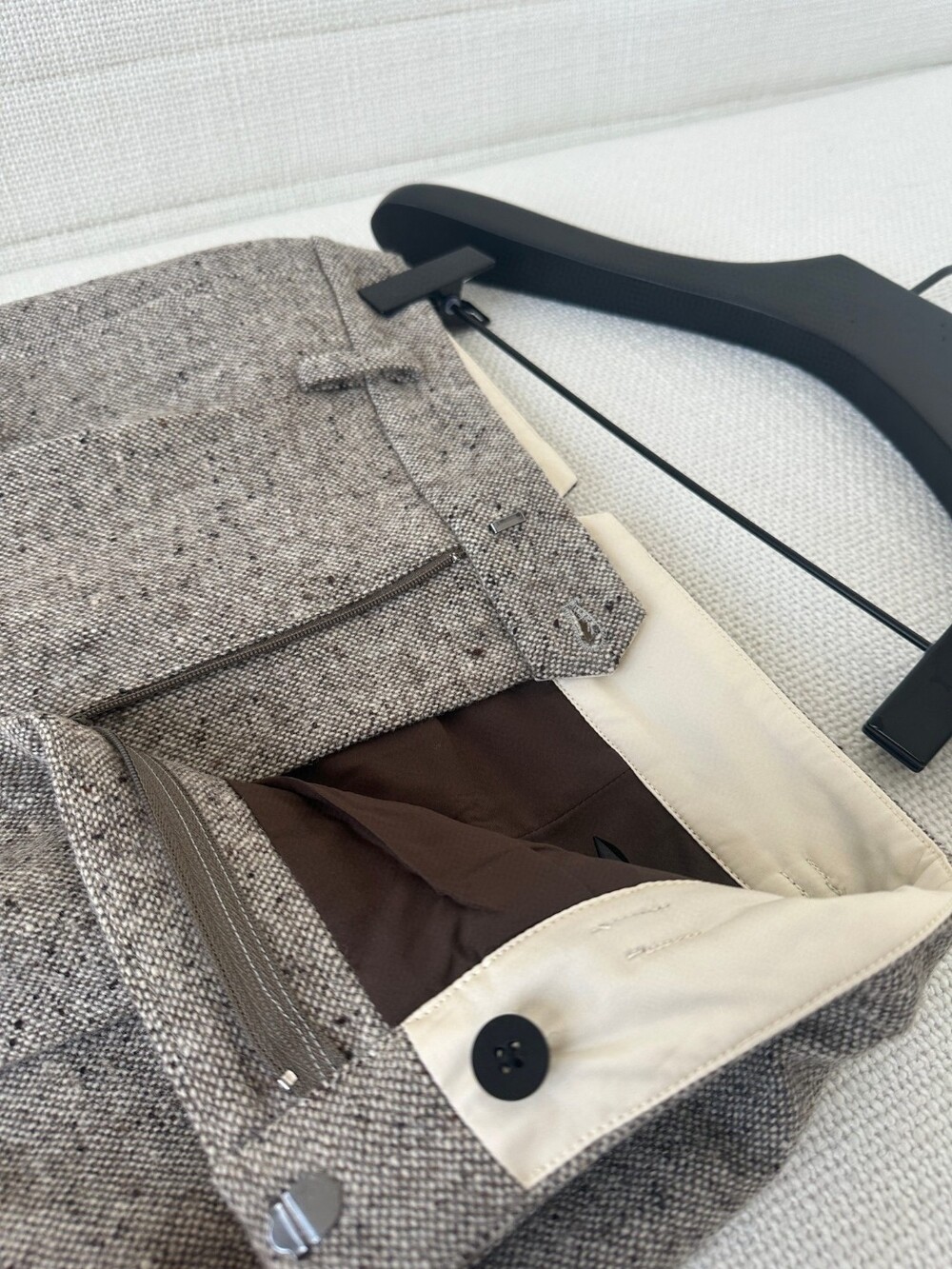 고급스러운 화사한 울 텍스처로 분위기가 바로 살아나는 커브 팬츠예요.