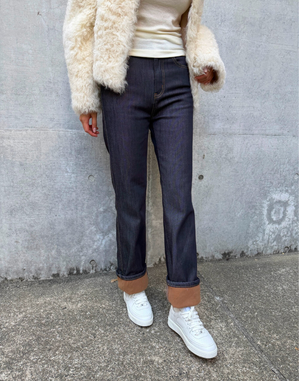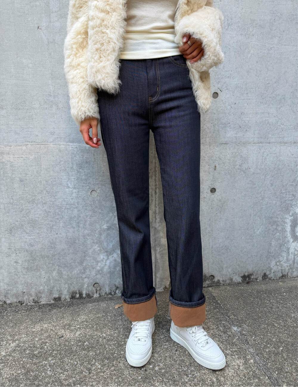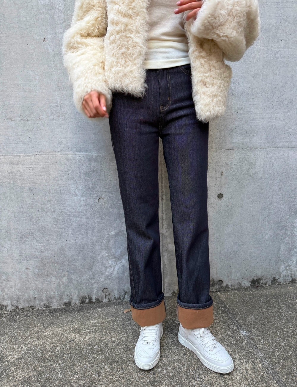 안쪽은 기모 배색 처리로 한겨울까지 따뜻하게 입기 좋은 데님 팬츠입니다.