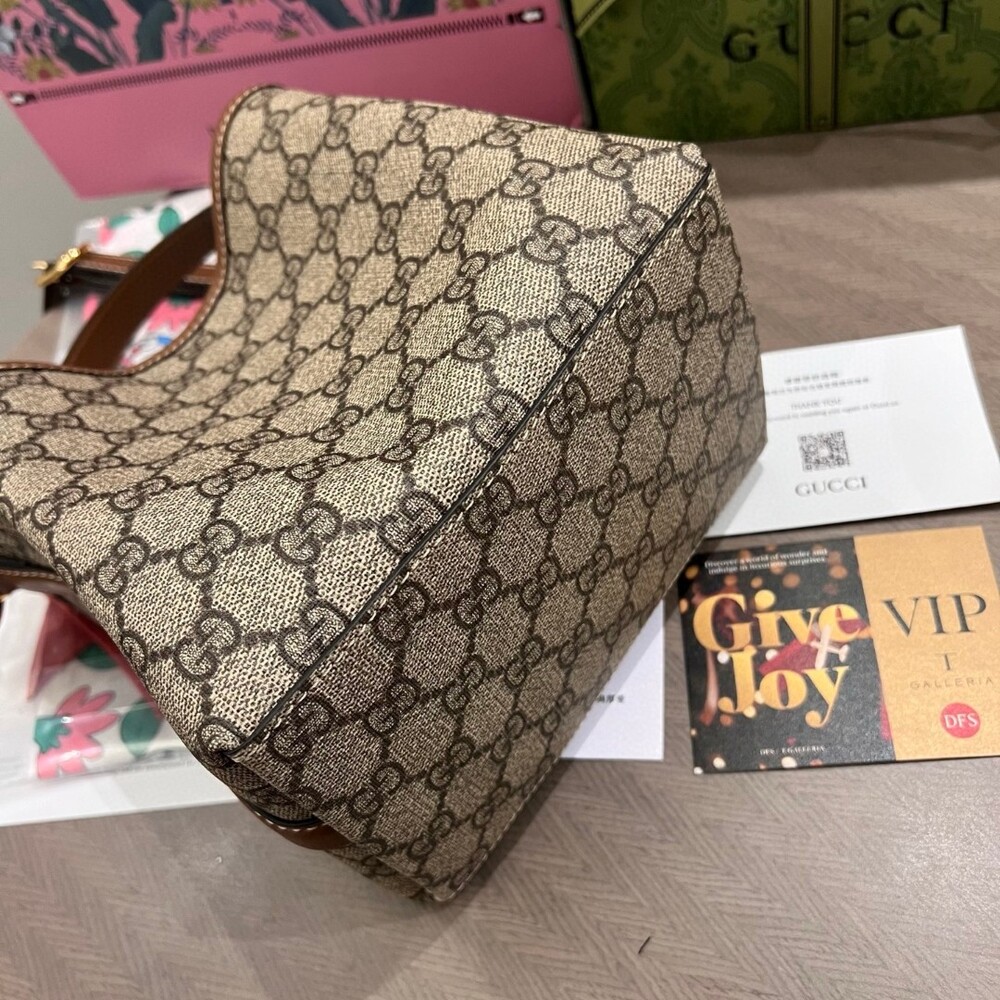 Featuring the iconic GG monogram canvas and brown leather trim,