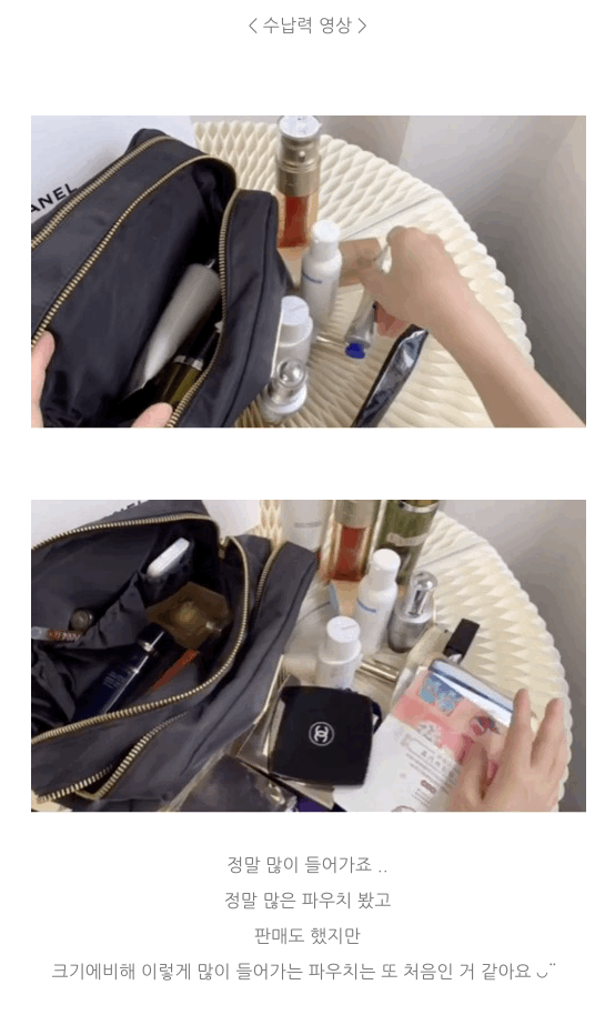 넉넉한 파우치는 샤넬 뷰티 파우치 라지 가장 추천드려요:)🖤