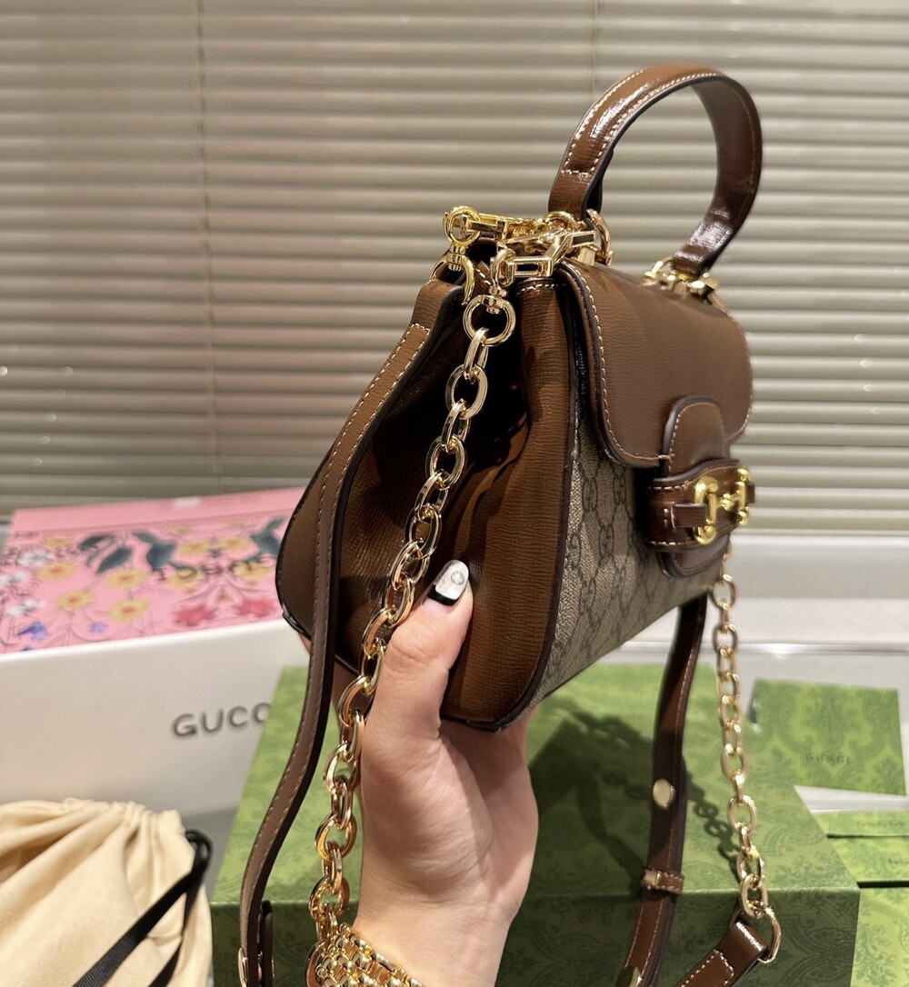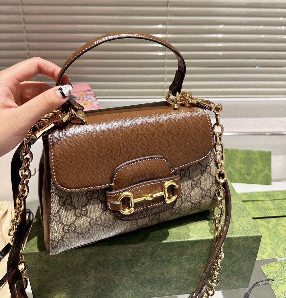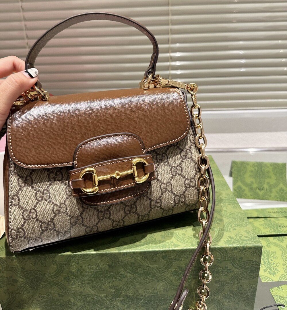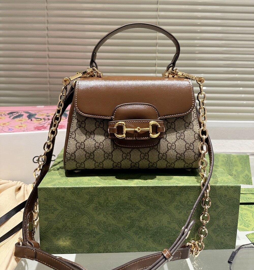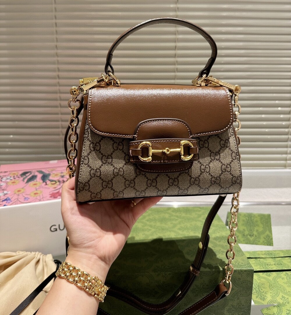 Gucci vip offer Horsebit 1955 top handle bagGucci Horsbit 1955 Series Light Brown Leather Tote BagInspired by the design of the collection, the series combines craftsmanship with products from more than 60 years ago.The brand's first classic detail and modernity highlights the chicness of the hols button Charm.Doubling with a design inspired by the brand equestrian headquartersIt consists of a long stick and two elements, and so far, brand awareness has increased significantly.One of the symbolic elements. Size Small 20 cm gift Full Set