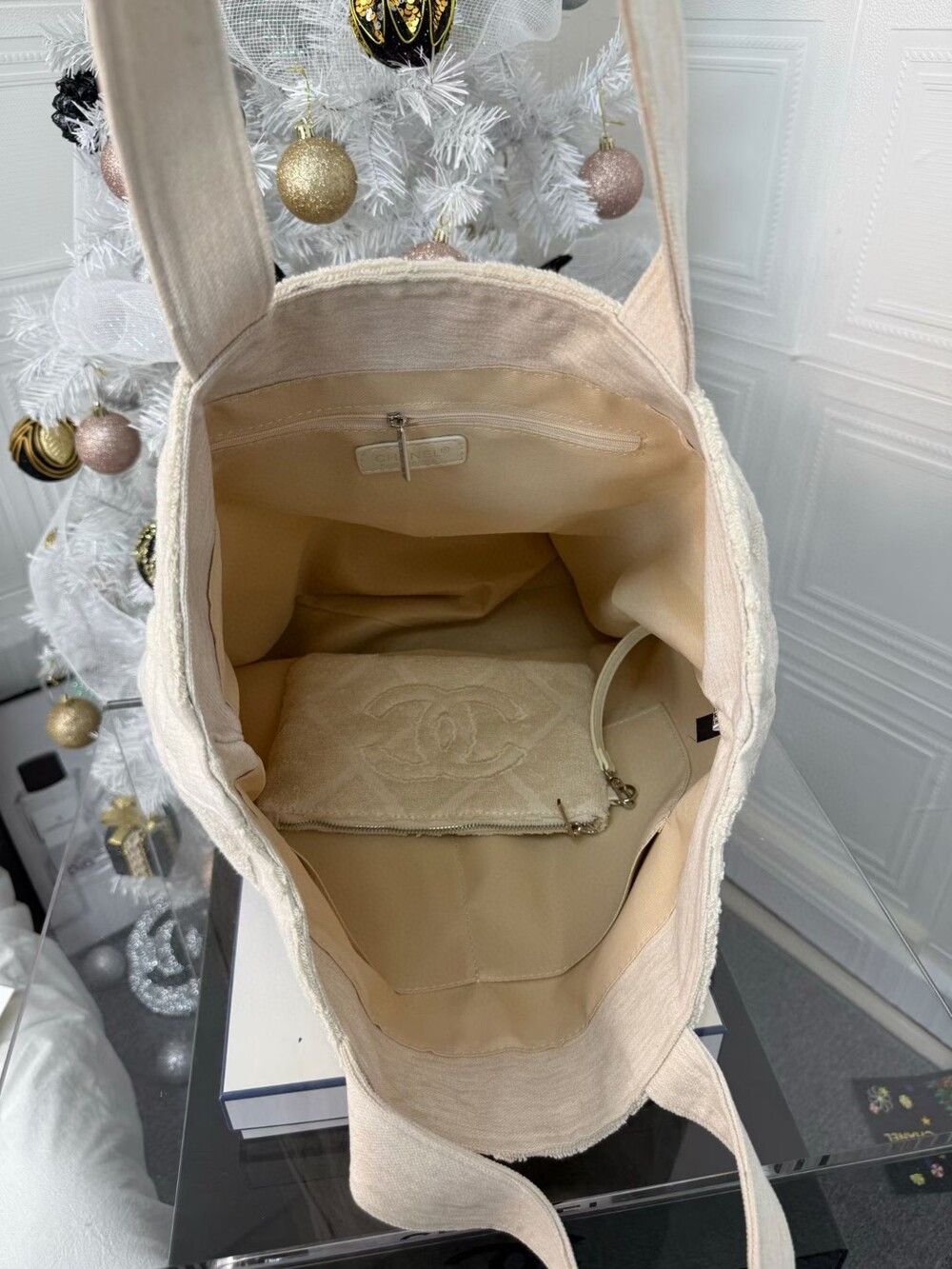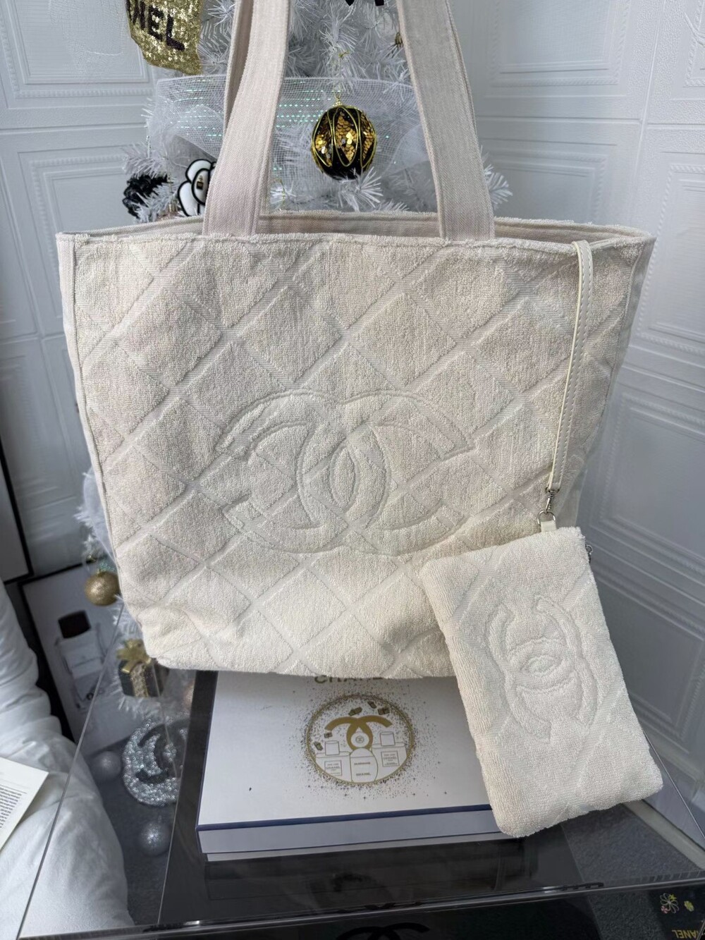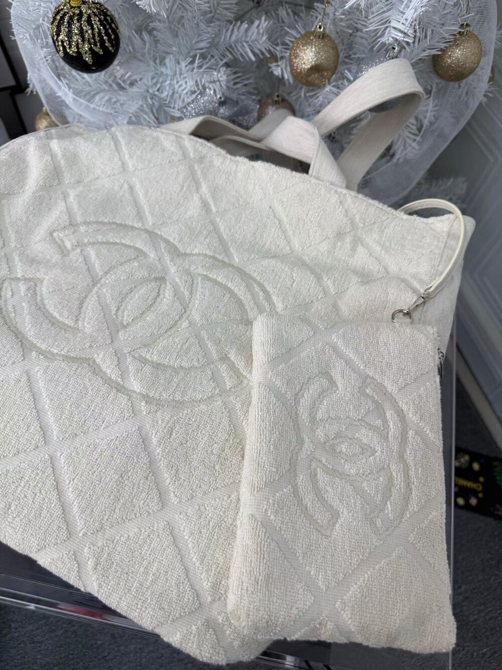 A soft bouclé-textured tote bag designed with a relaxed yet structured silhouette.