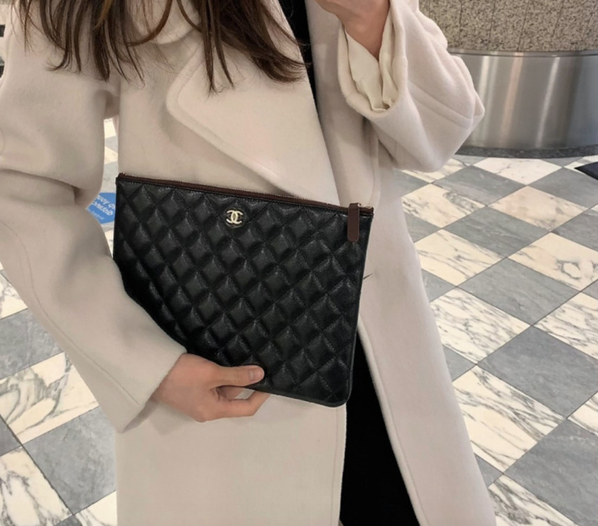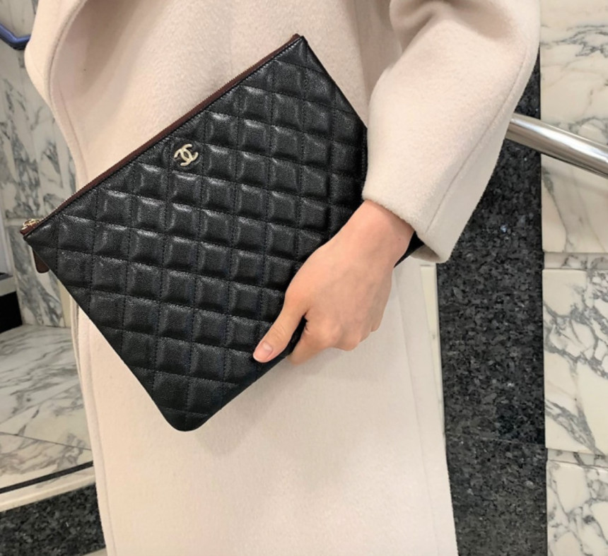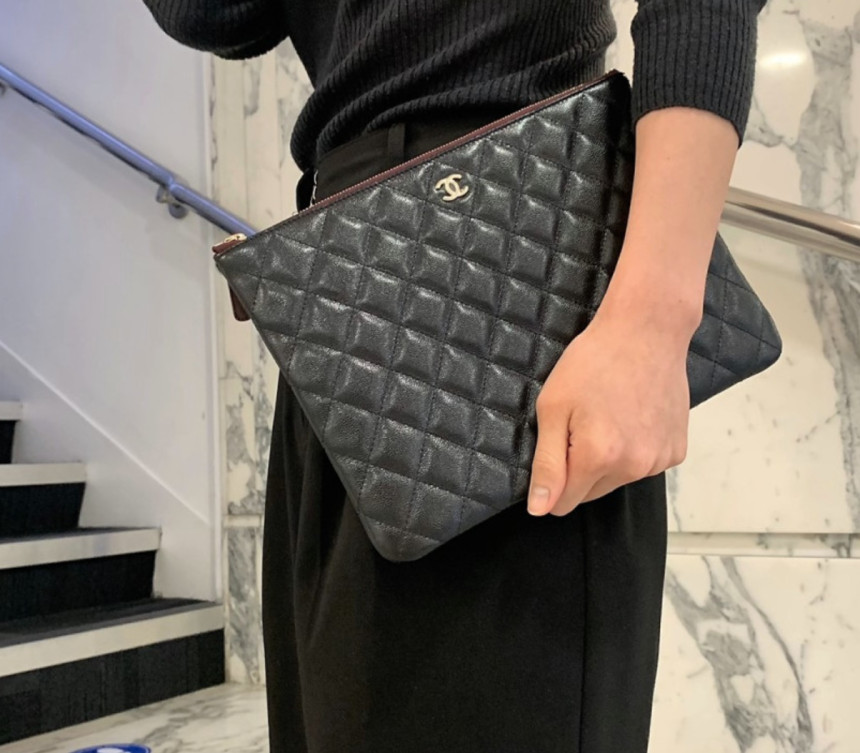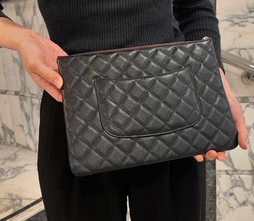 [국내재고보유] 샤넬 클래식 클러치 미디움 캐비어 금장 A82545
