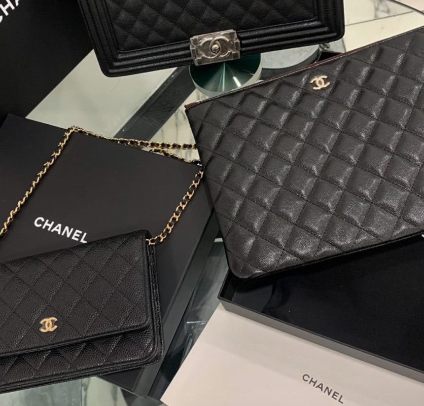 샤넬 클래식 클러치 뉴미듐 캐비어 금장 A82545