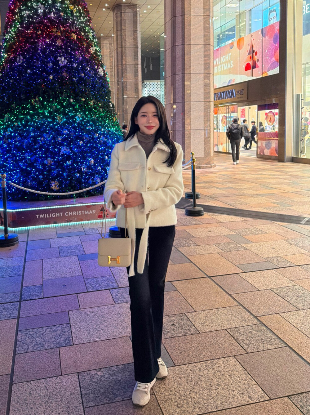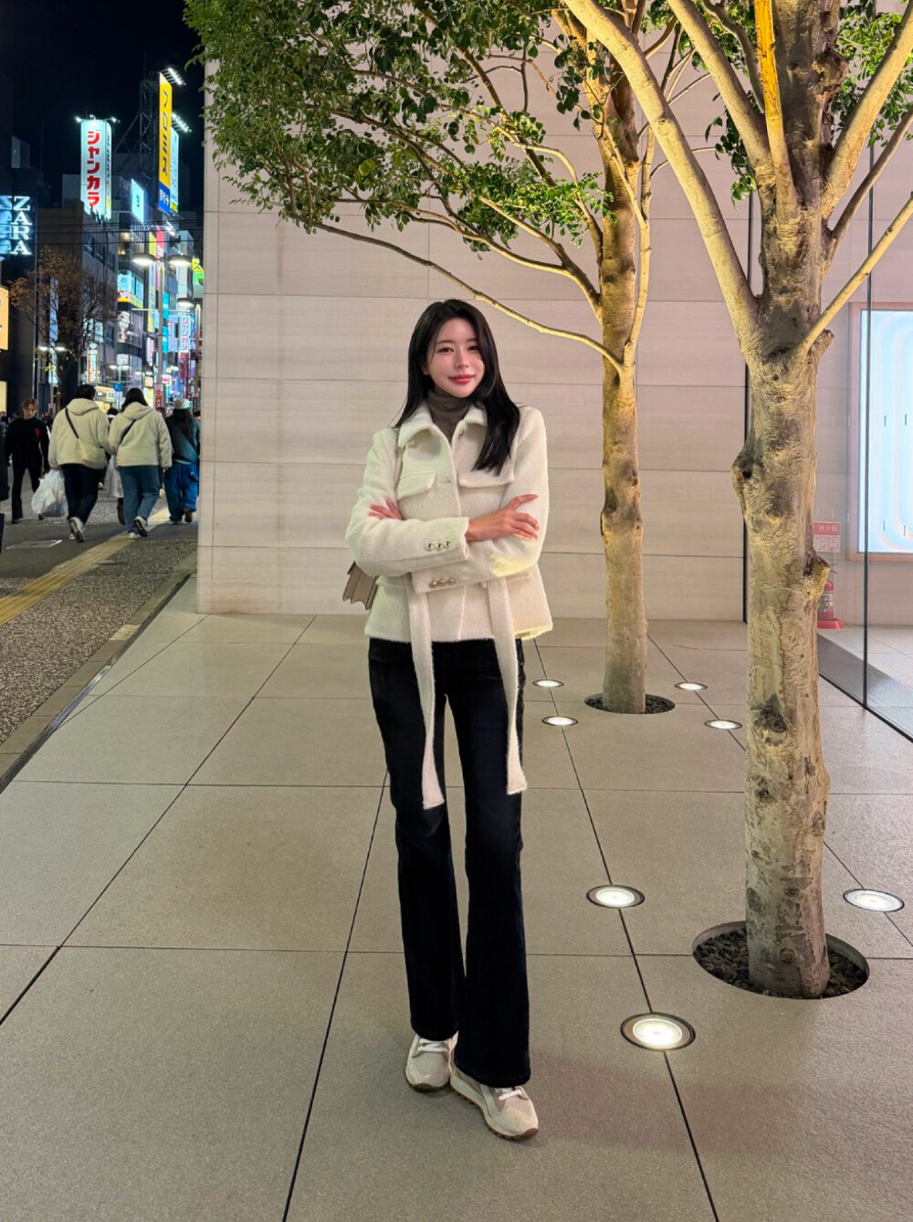 과하지 않은 버튼 디테일과 힙을 살짝 덮는 안정적인 기장감으로