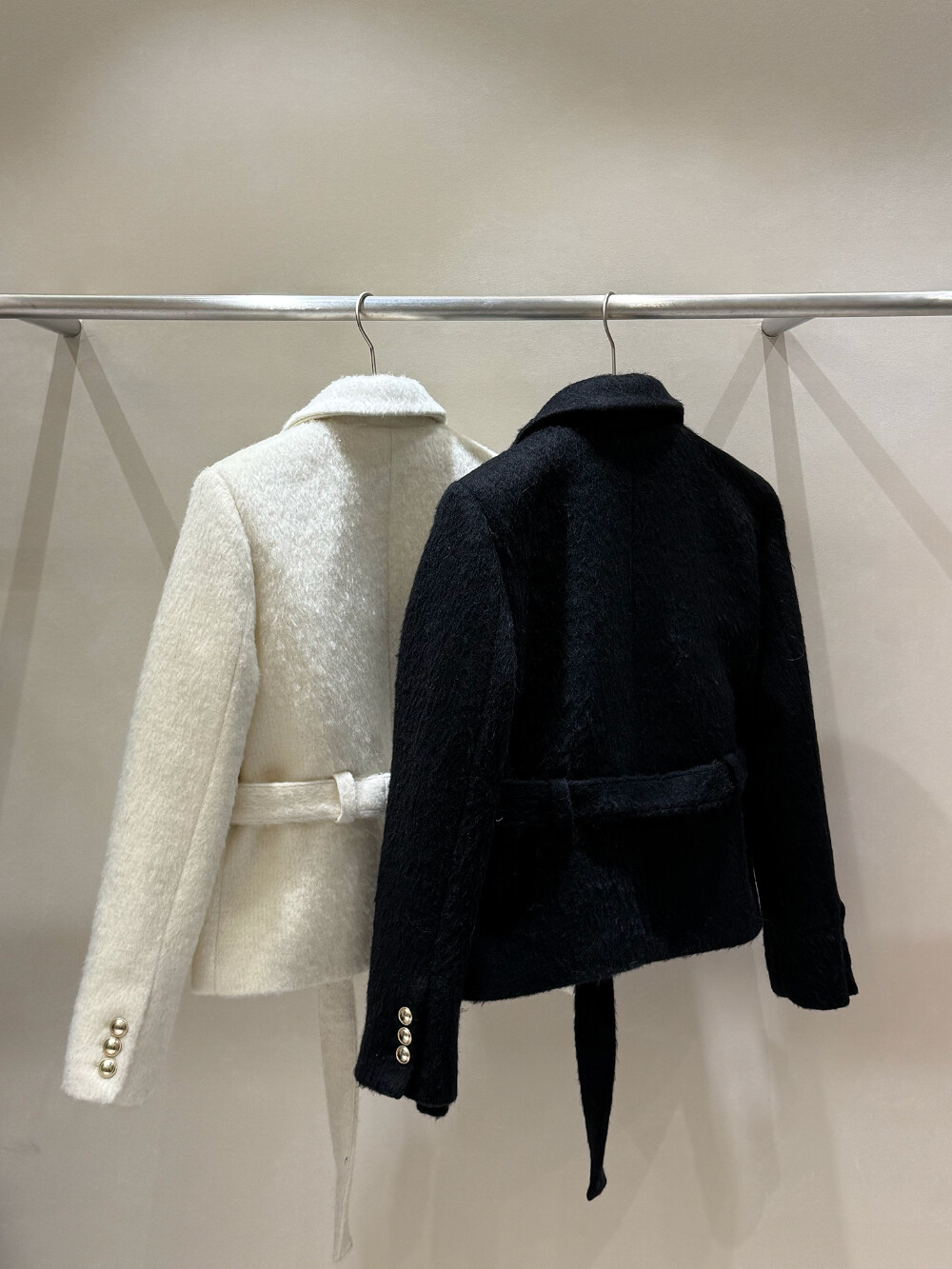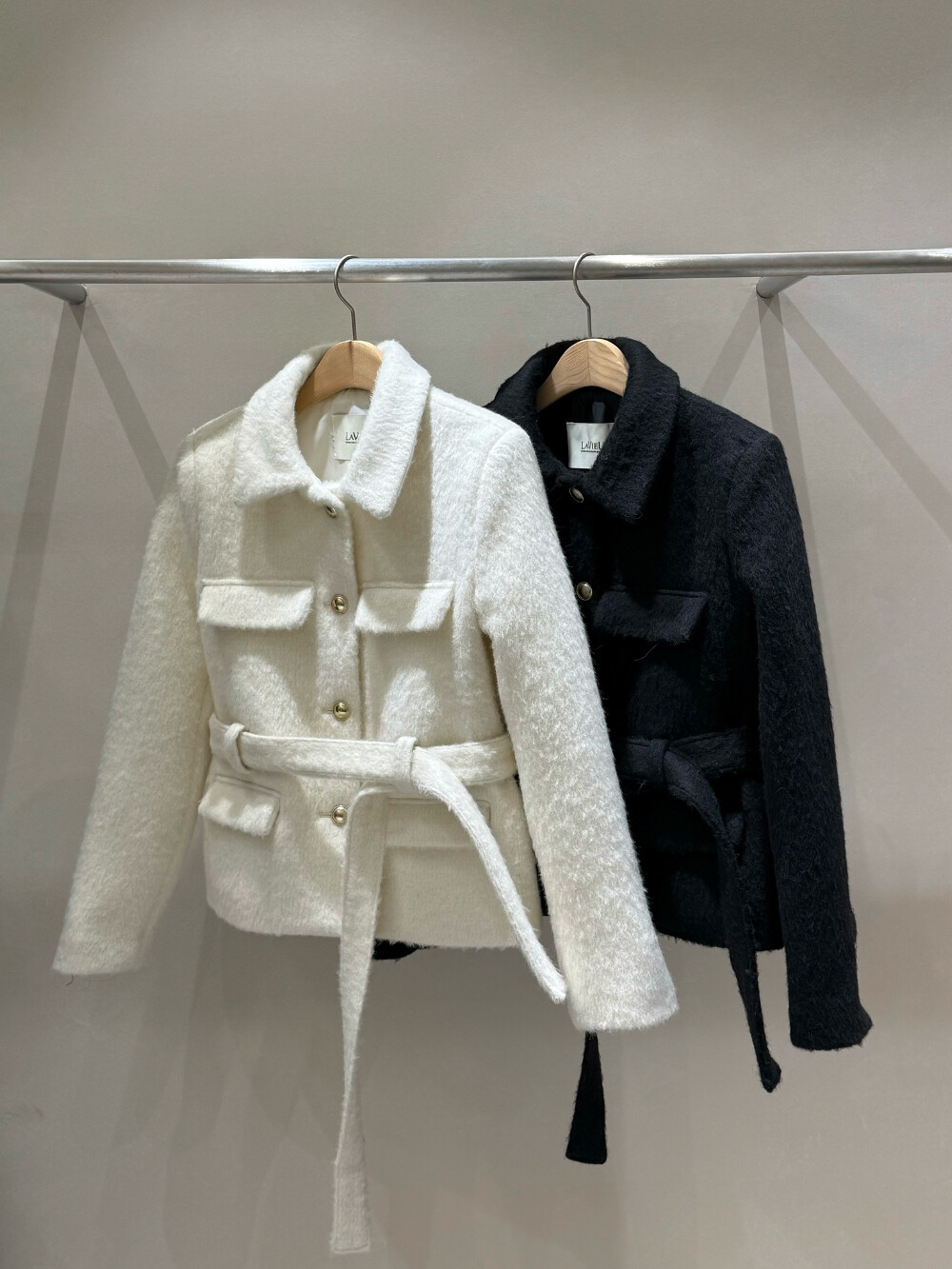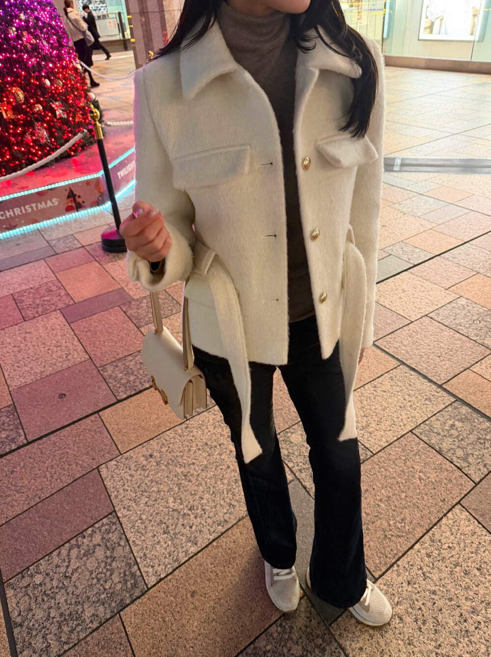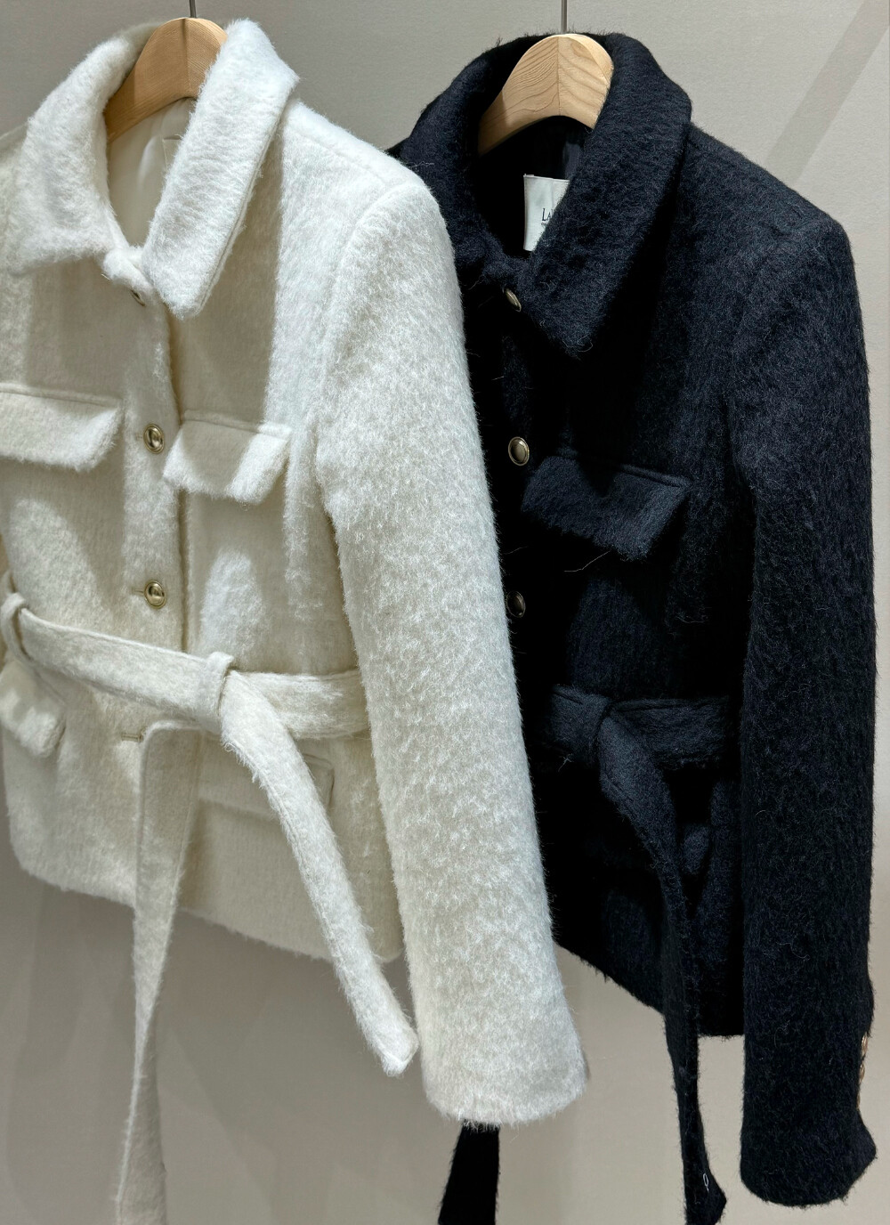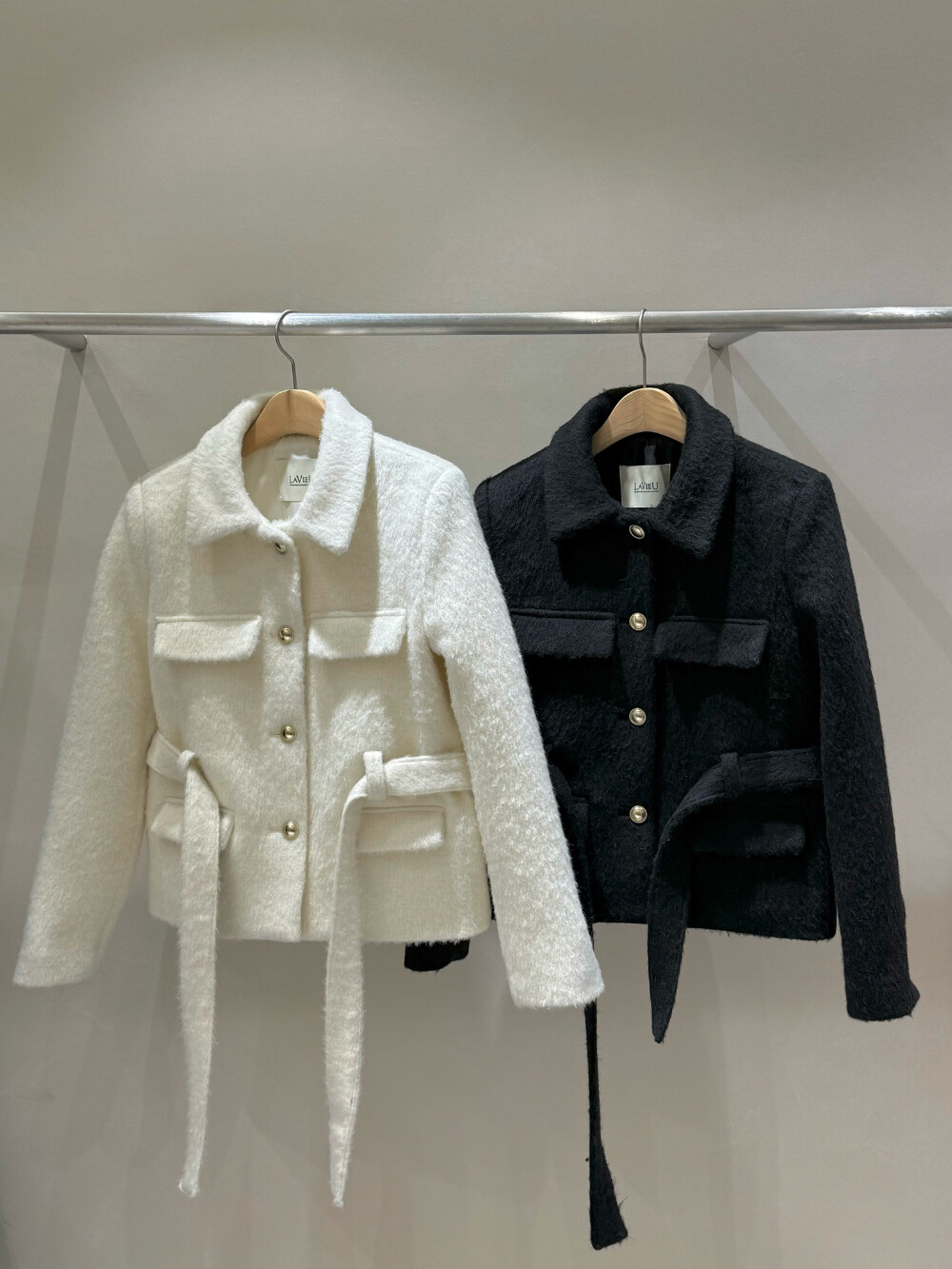 은은한 헤어리 텍스처가 살아 있는 숏 자켓이에요.