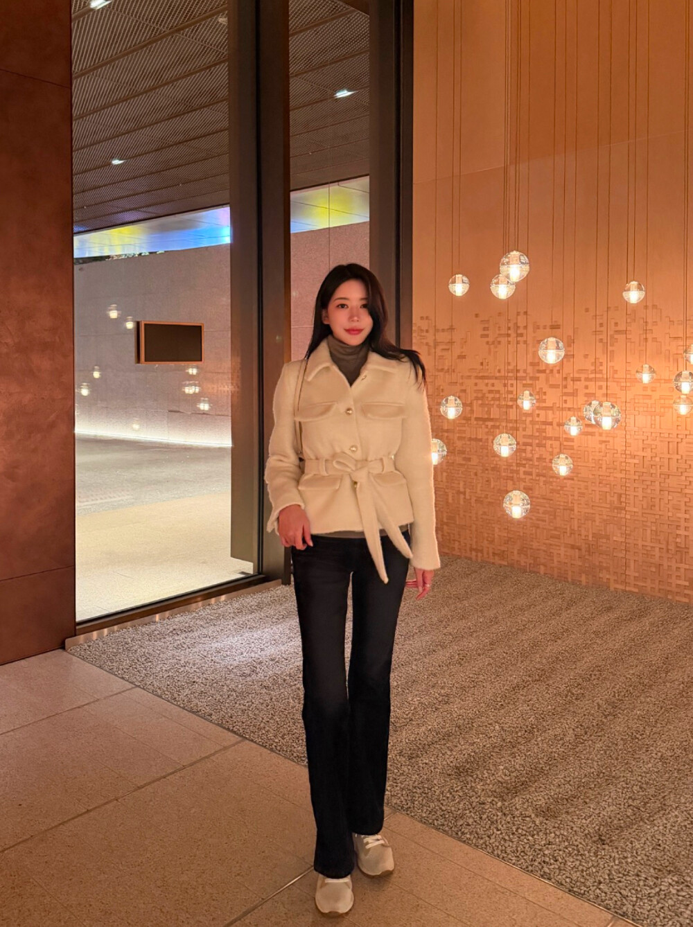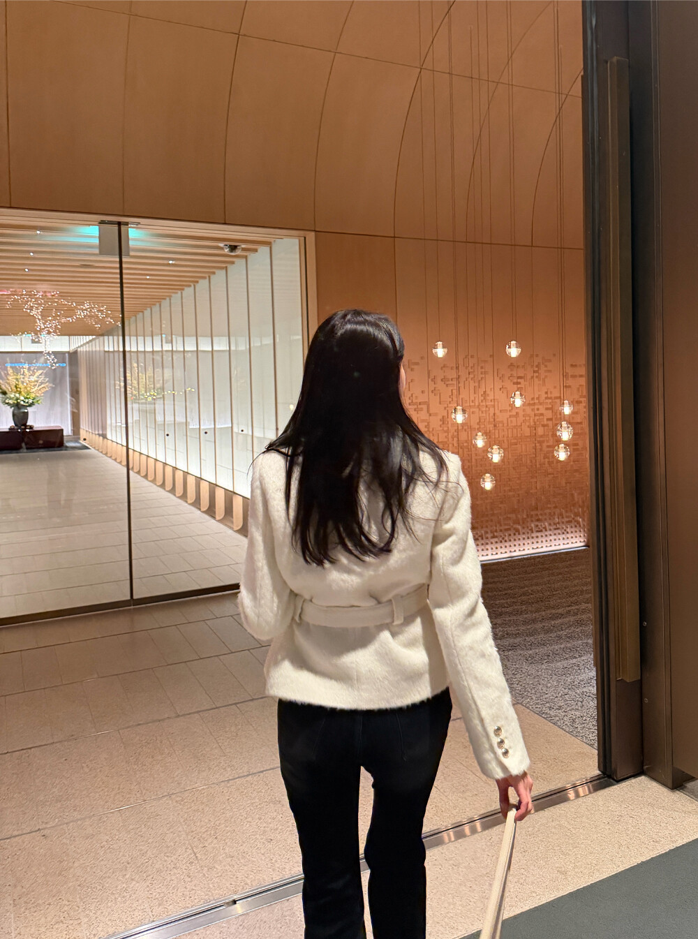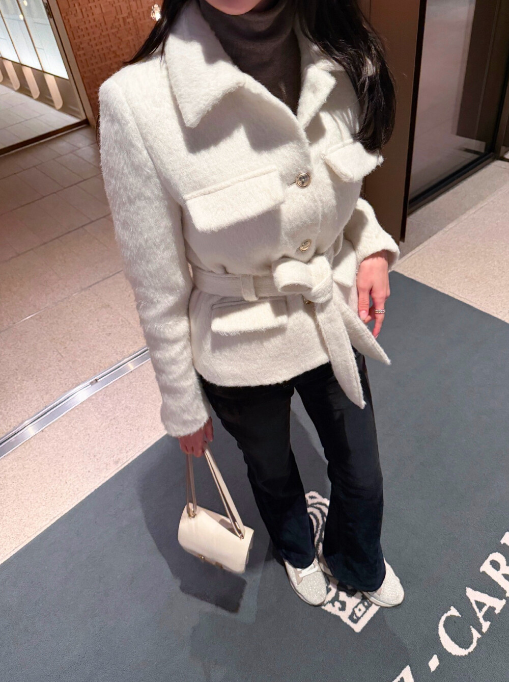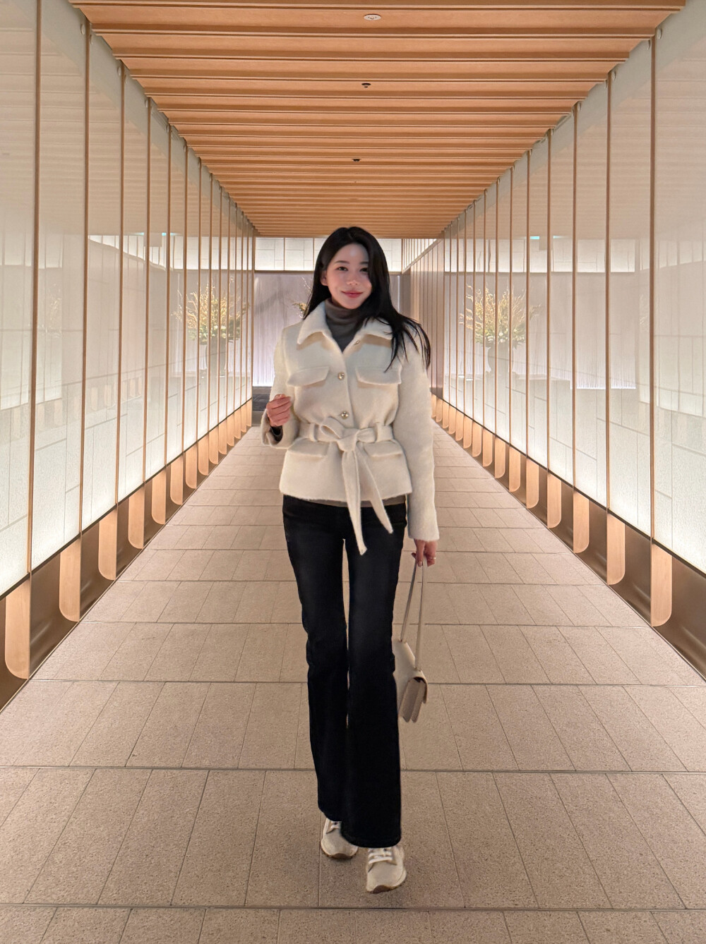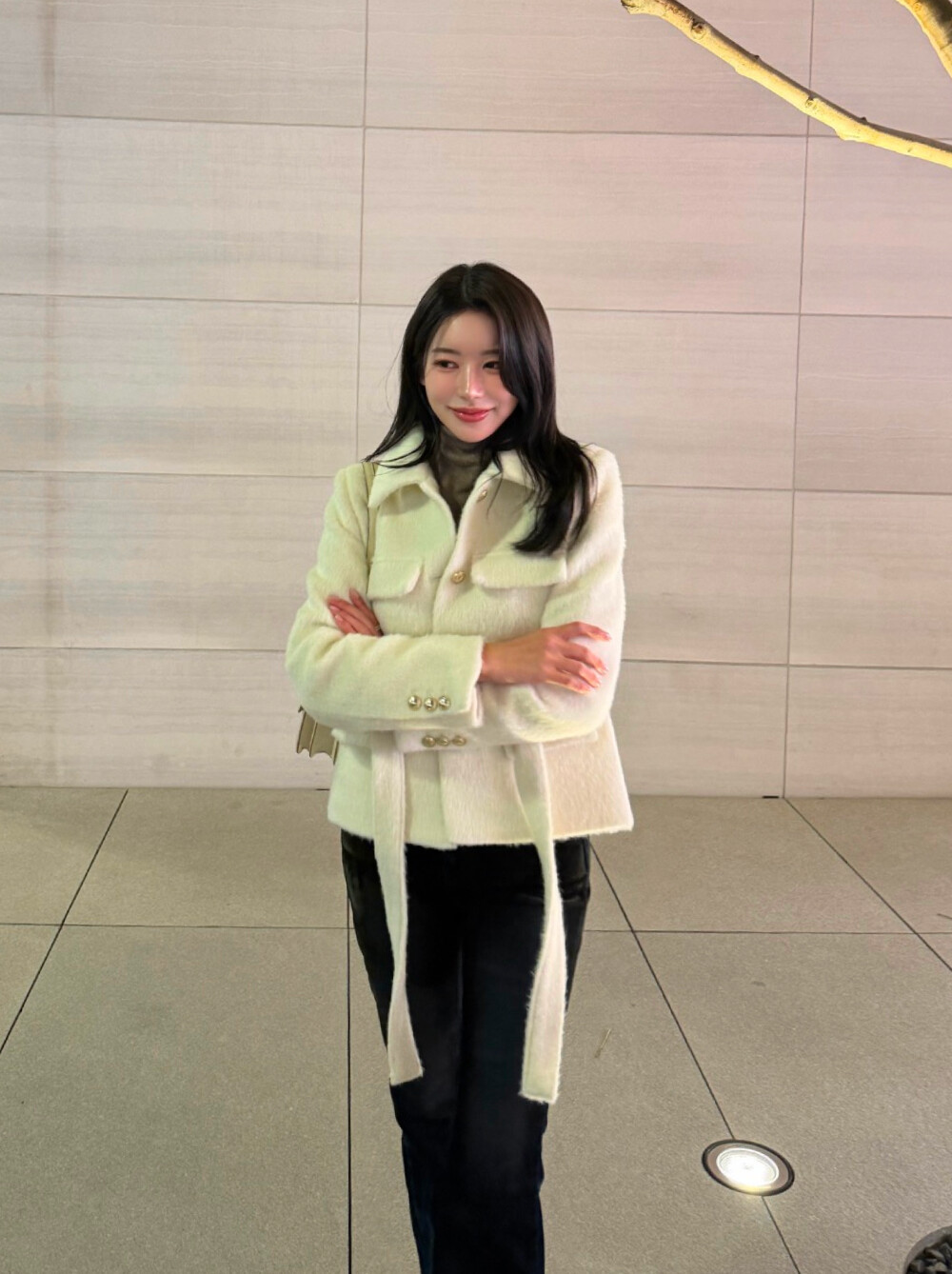 은은한 헤어리 텍스처가 살아 있는 숏 자켓이에요.