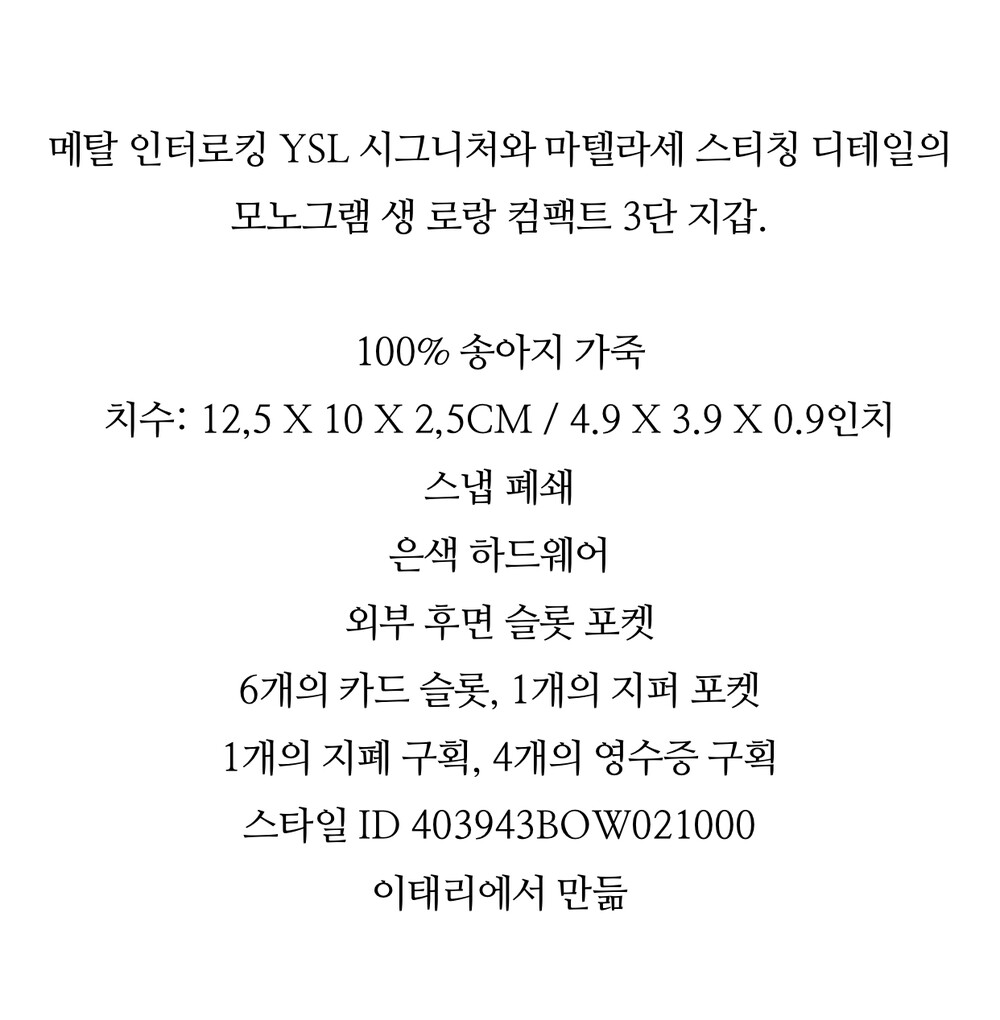 [영국정매장] 입생로랑 엔벨로프 콤팩트 월렛 /생로랑 엔벨롭 반지갑 403943BOW021000