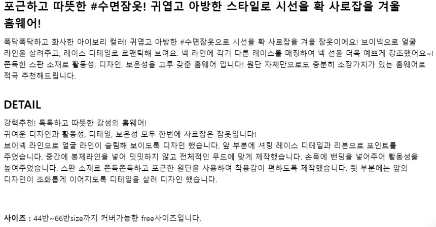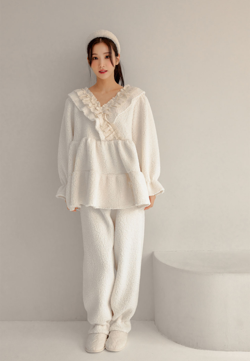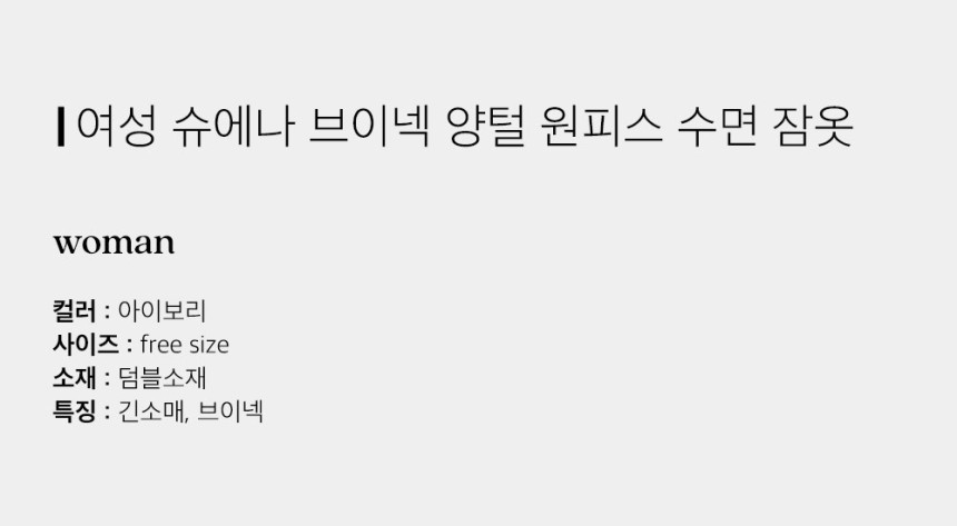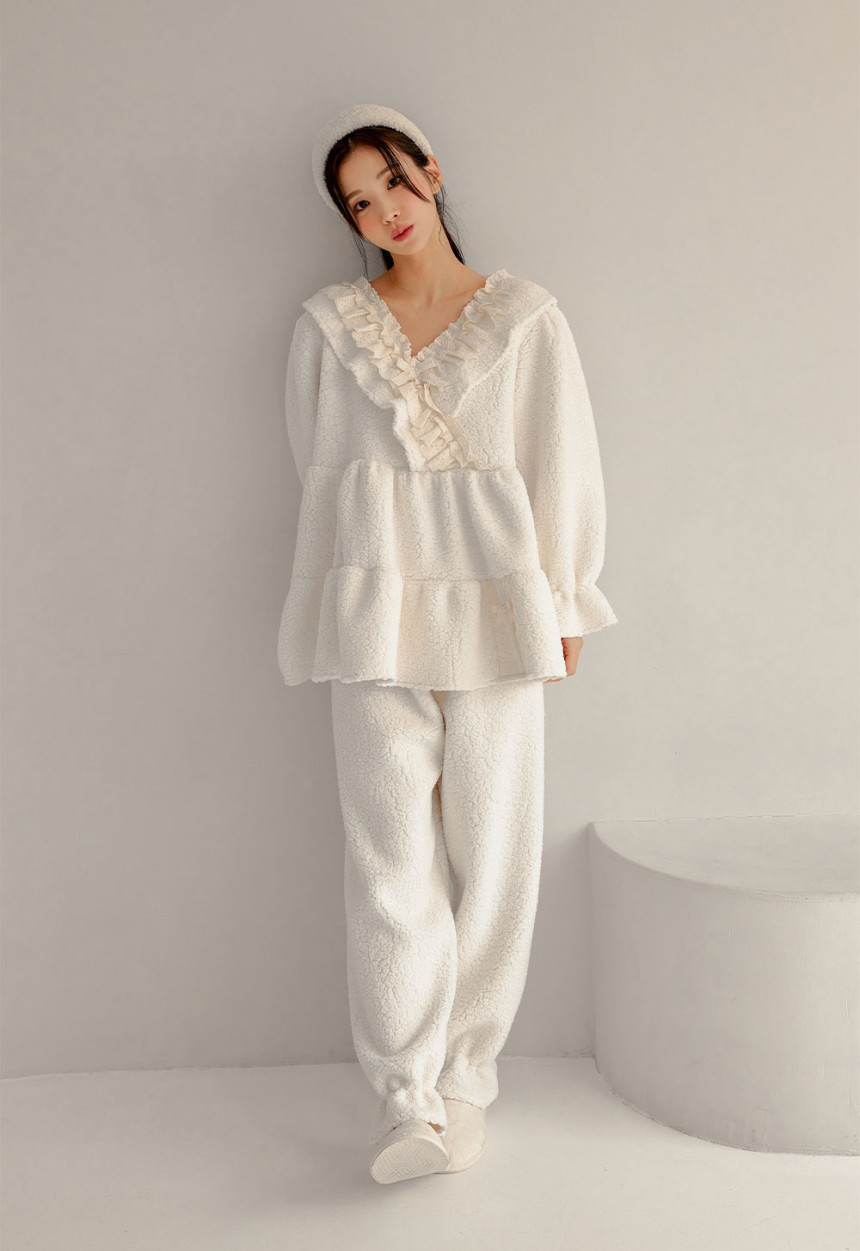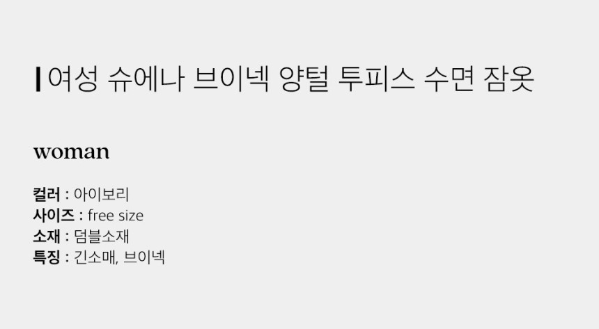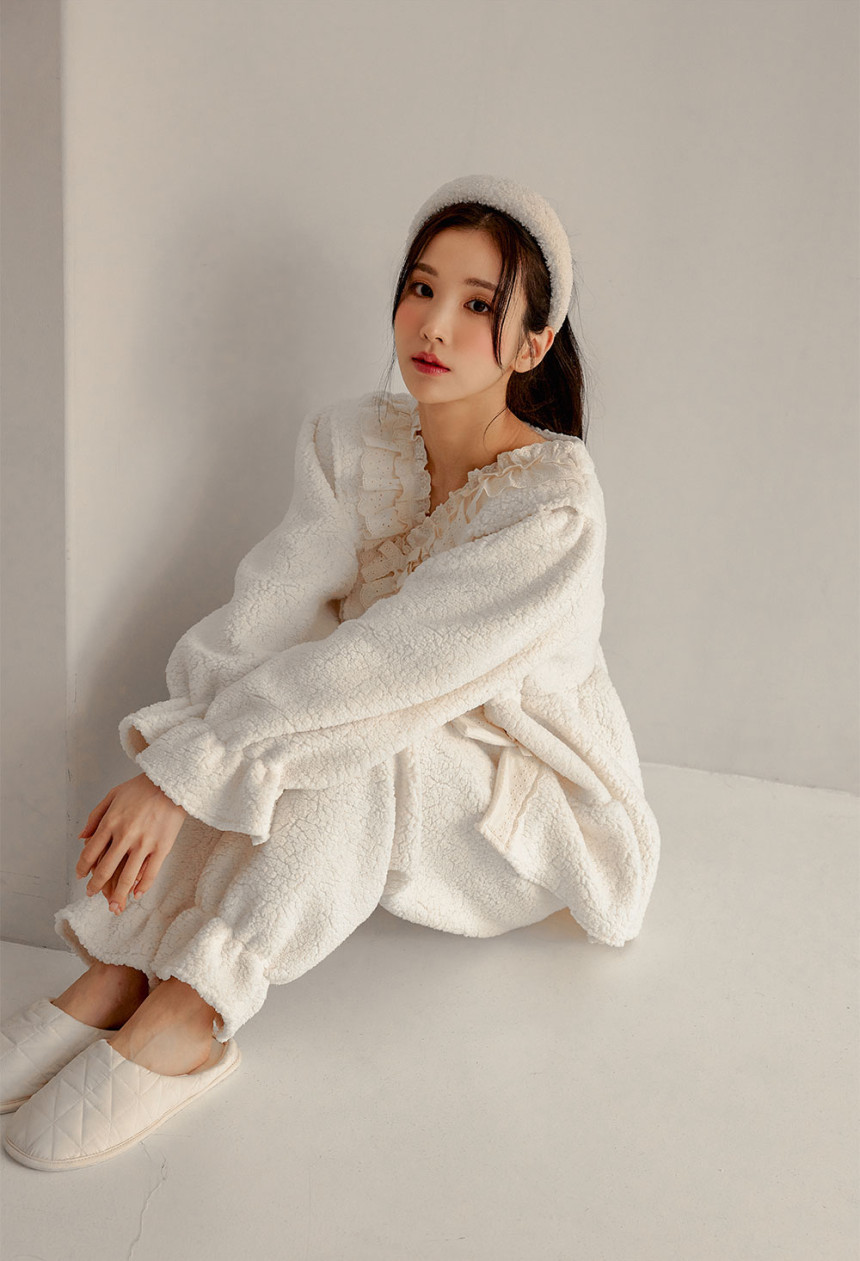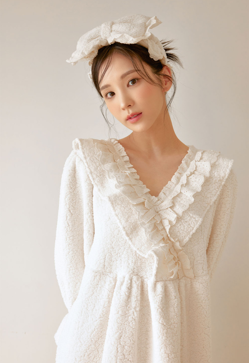 여성 슈에나 양털 원피스 투피스 수면 잠옷