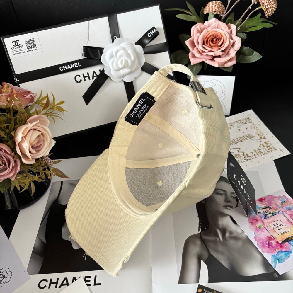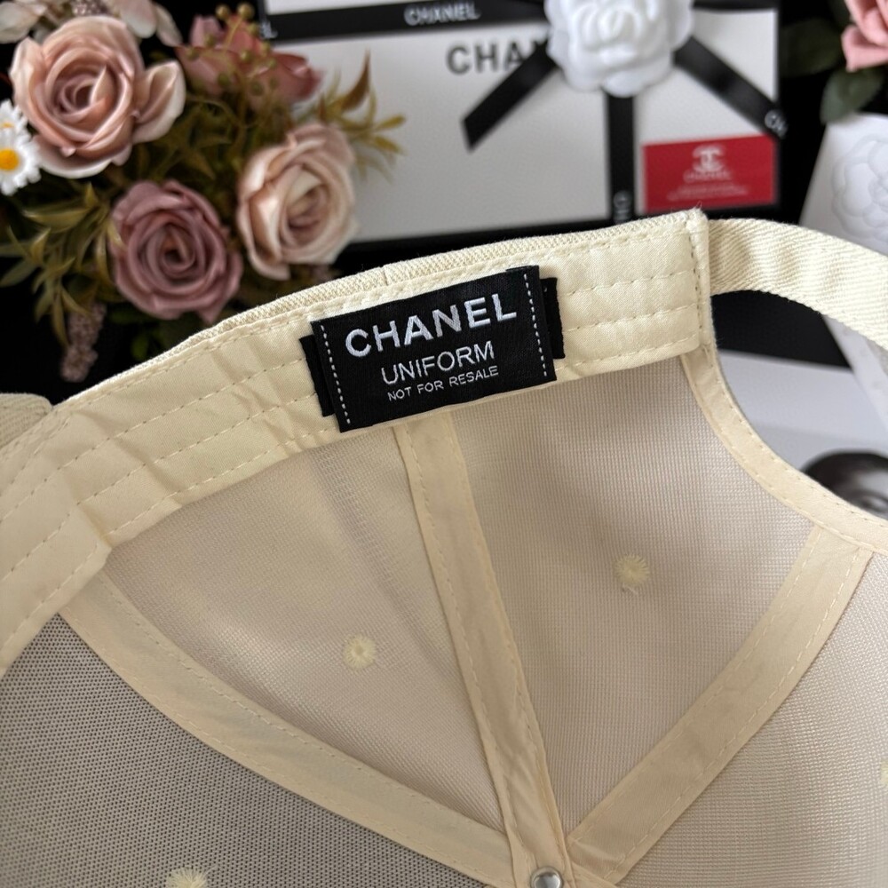 with an additional CHANEL logo detail on the brim to highlight the brand’s signature touch.