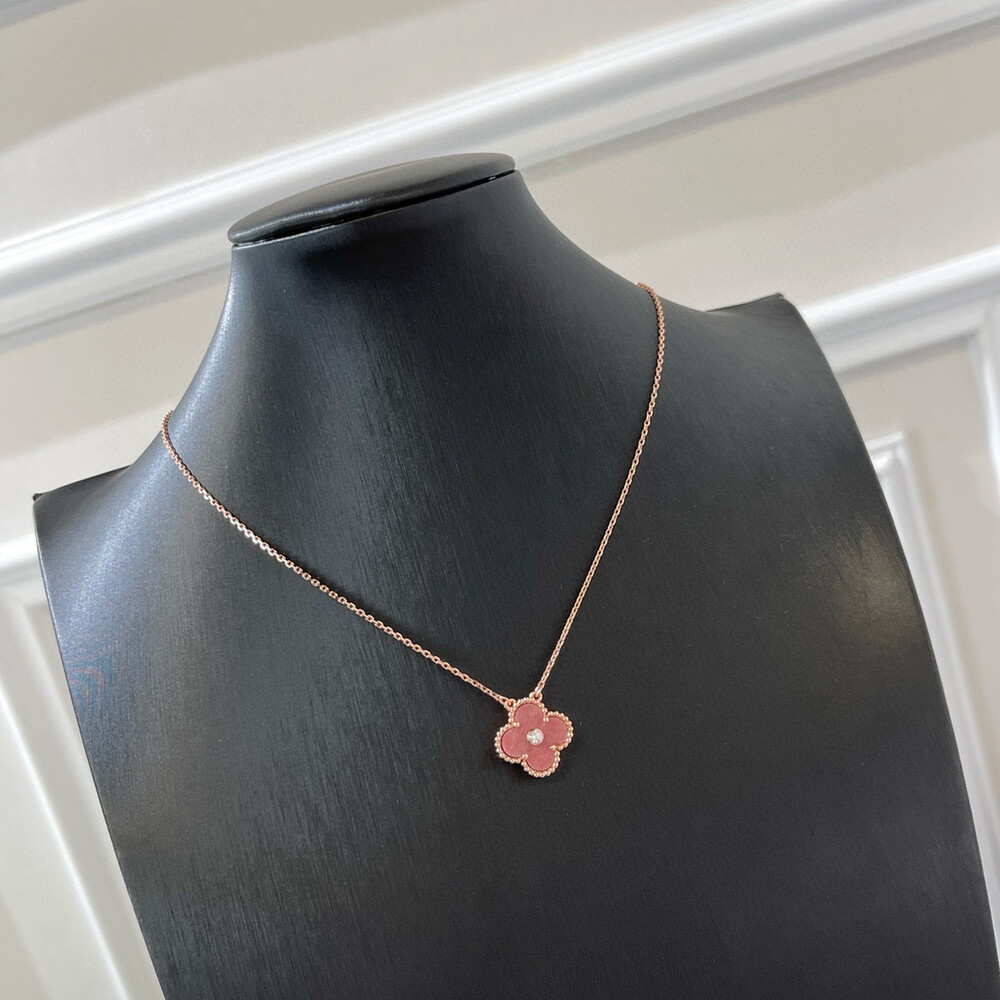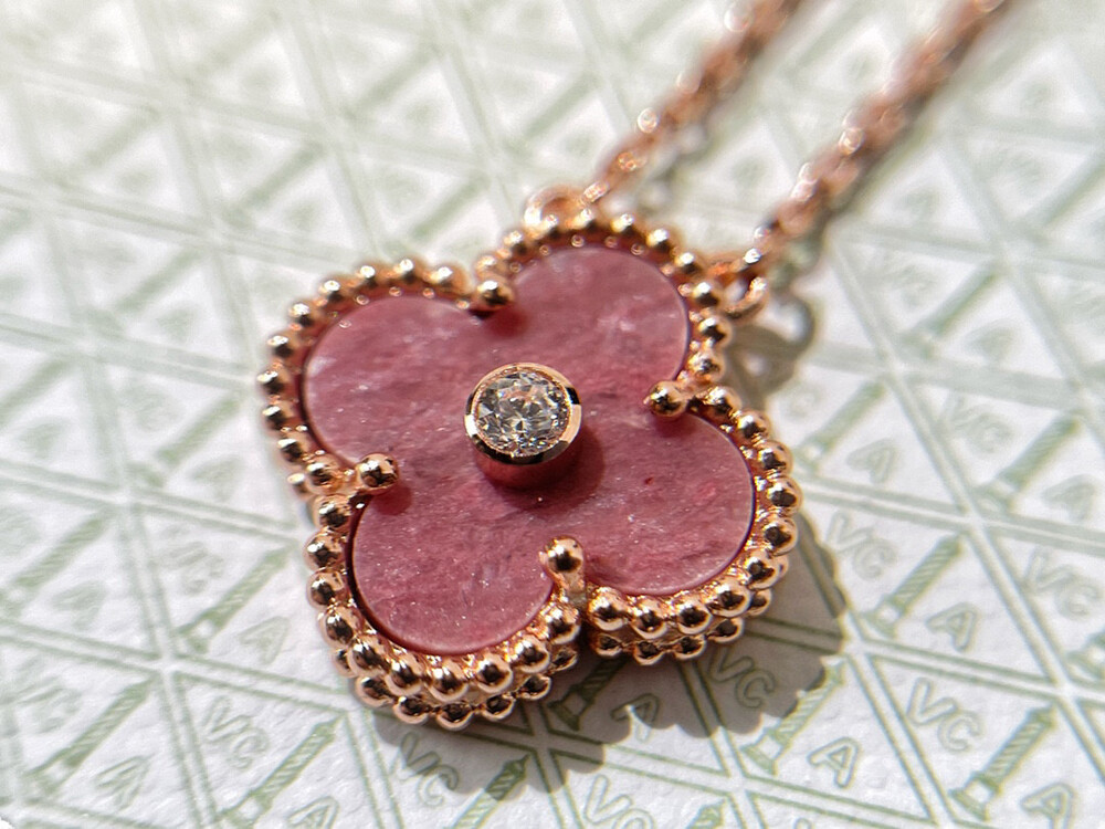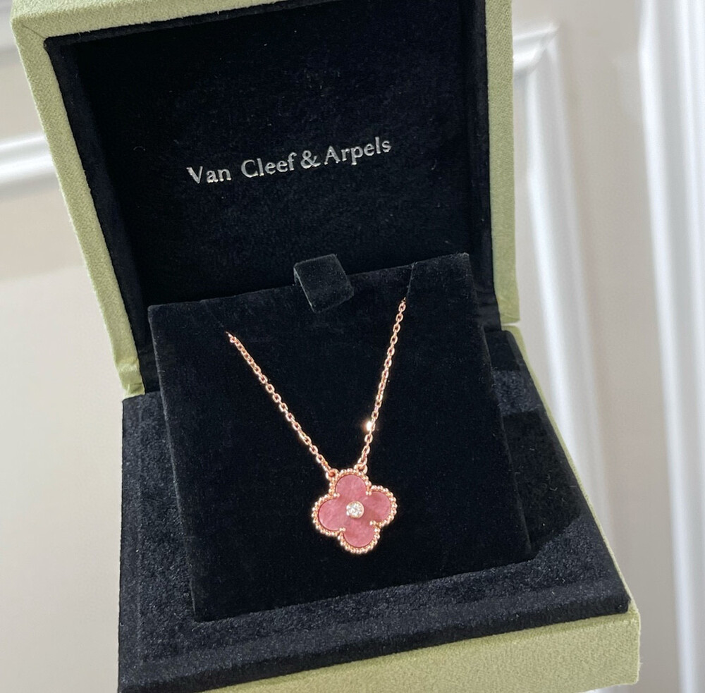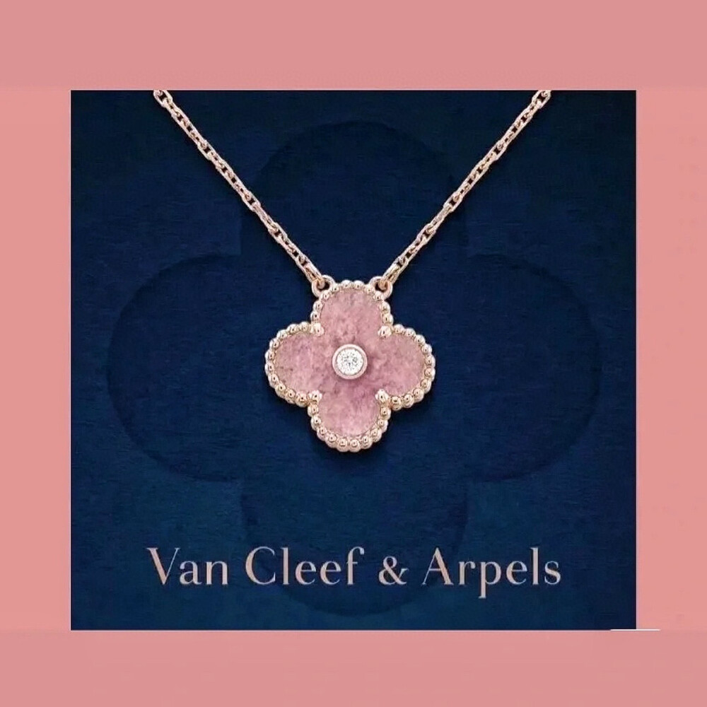 ☀️Van Cleef & Arpels Van Cleef & Arpels pink rhonite four-leaf clover necklace