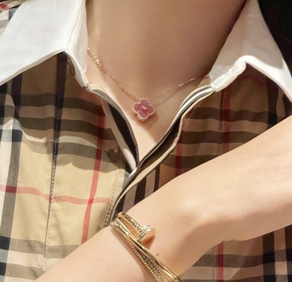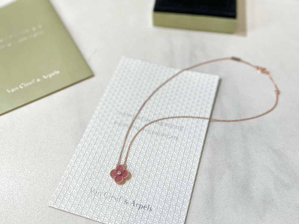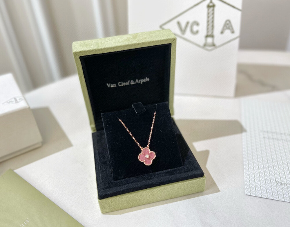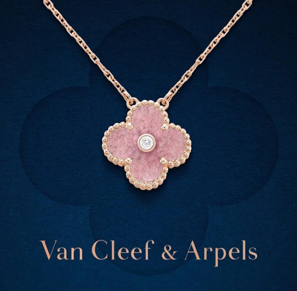☀️Van Cleef & Arpels Van Cleef & Arpels pink rhonite four-leaf clover necklace