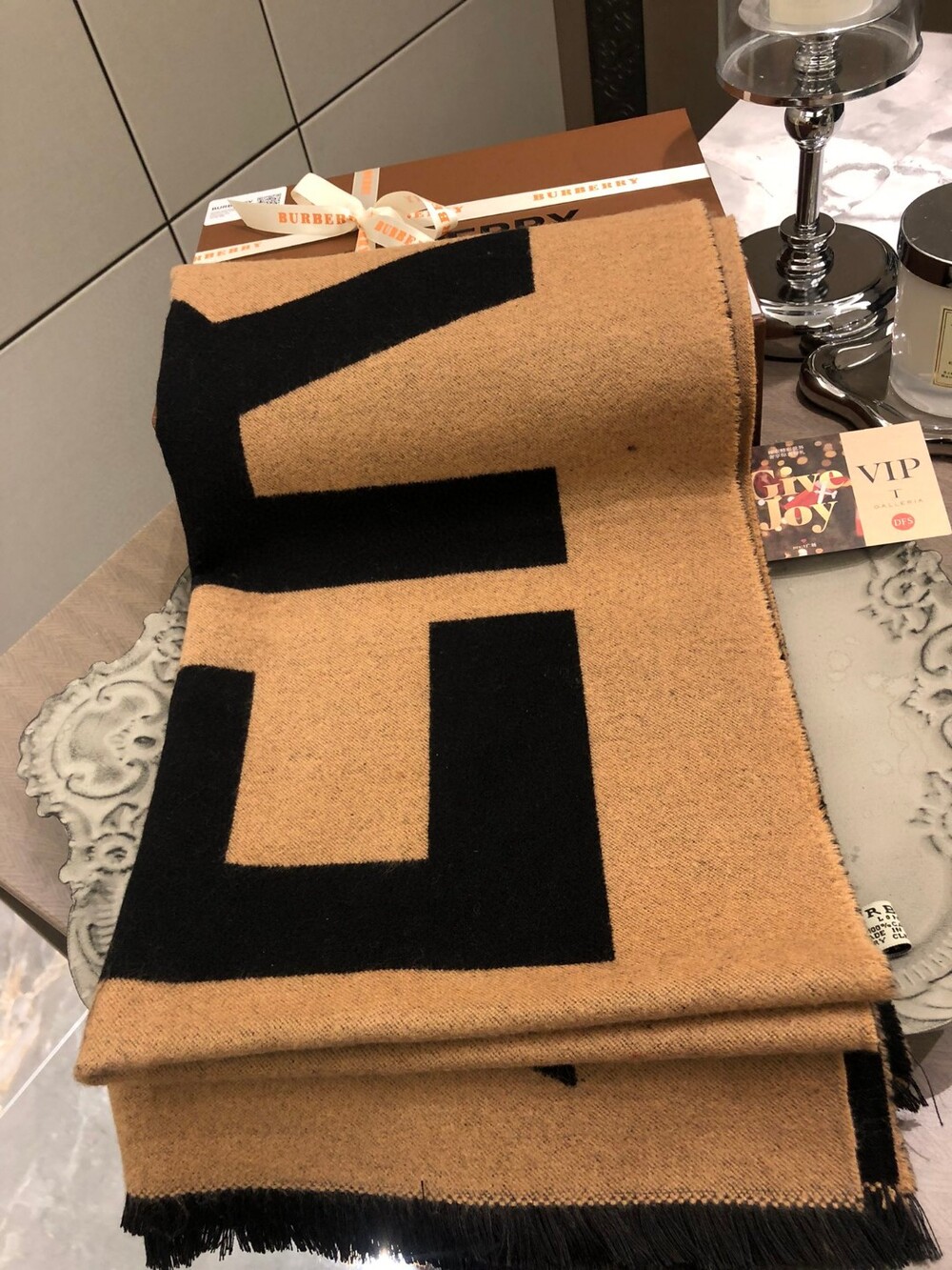 Burberry Double-Sided Big Letter Scarf Black Brown