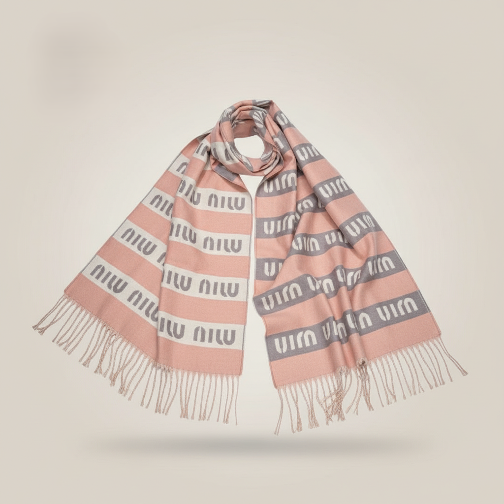 A sophisticated Miu Miu logo scarf featuring contrasting pink