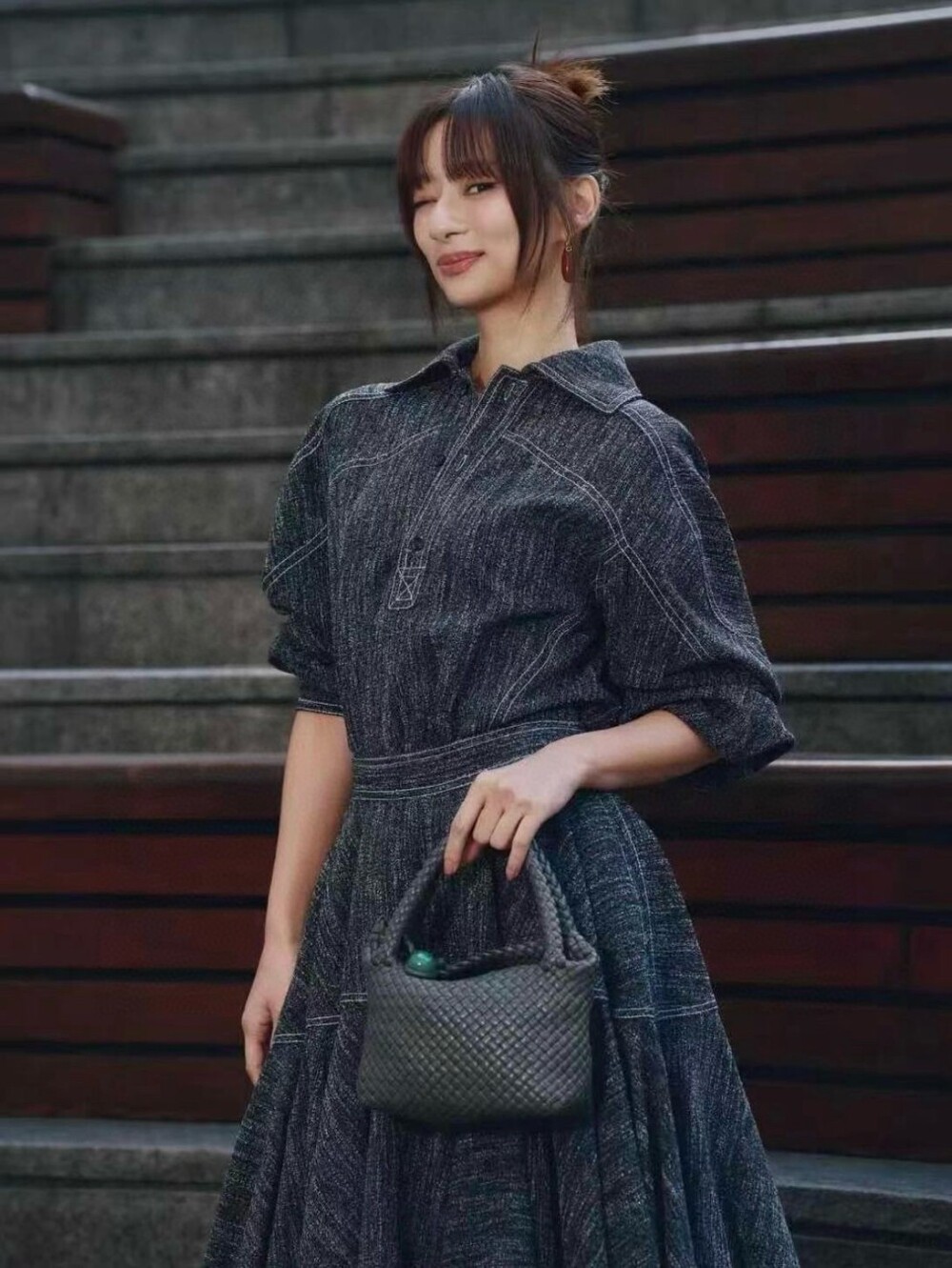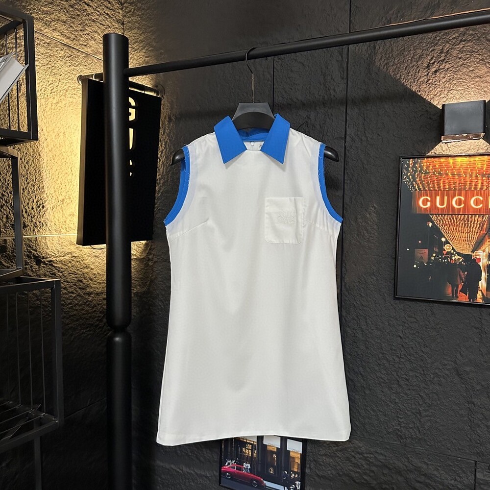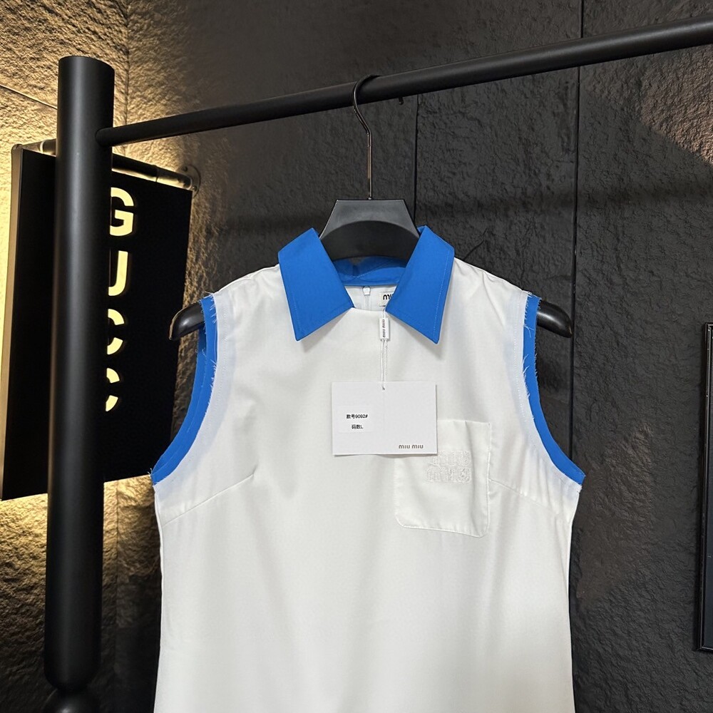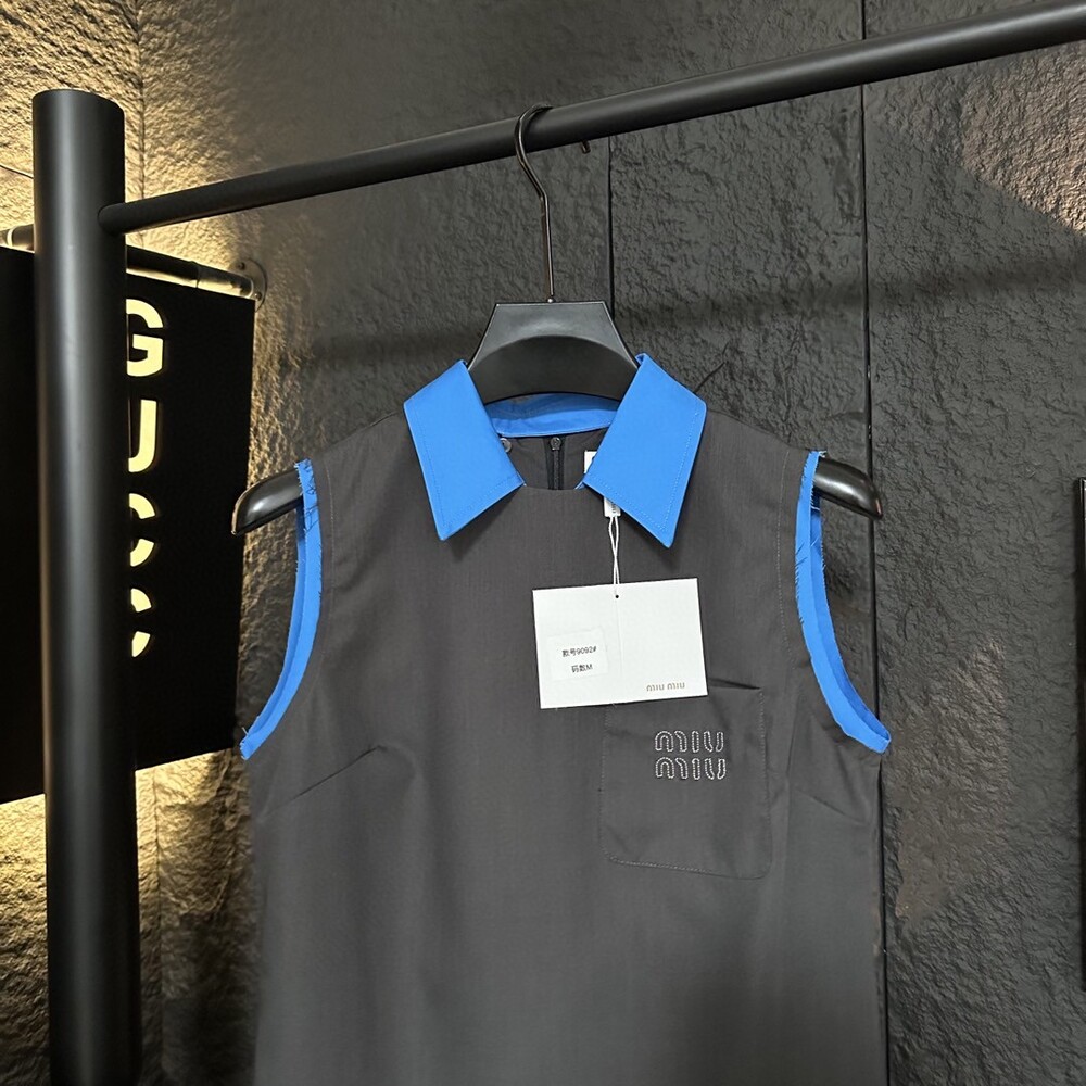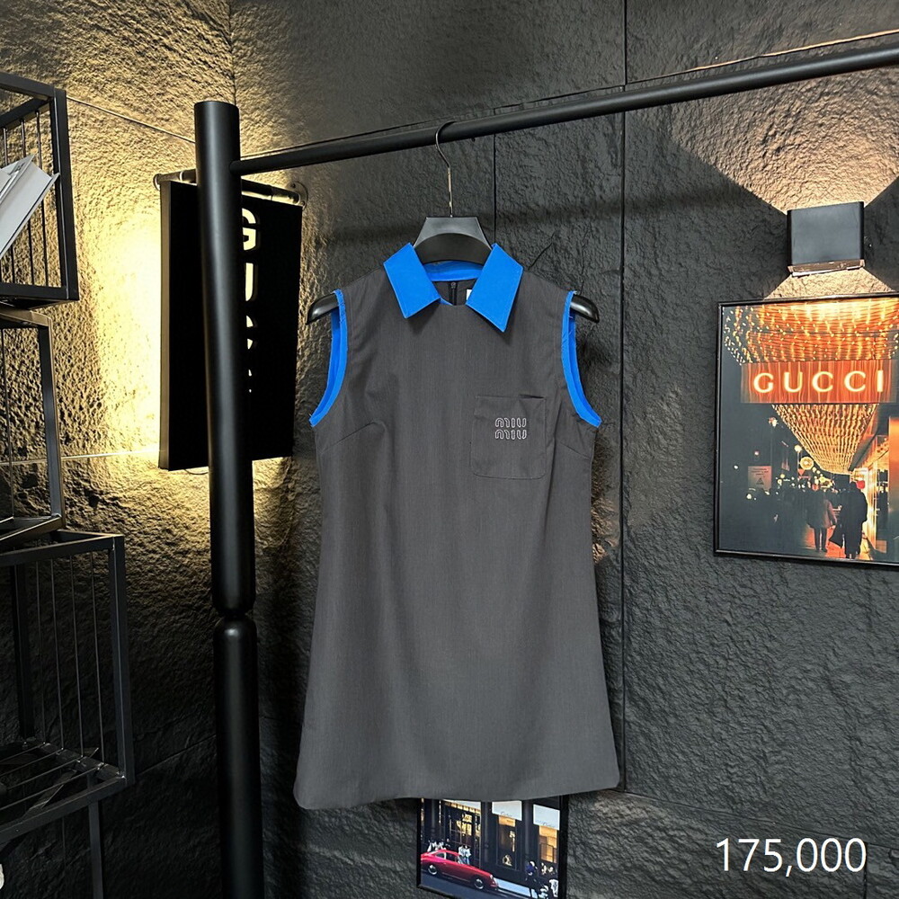 C. 뮤뮤 블루 배색 슬리브니스 스포티 드레스