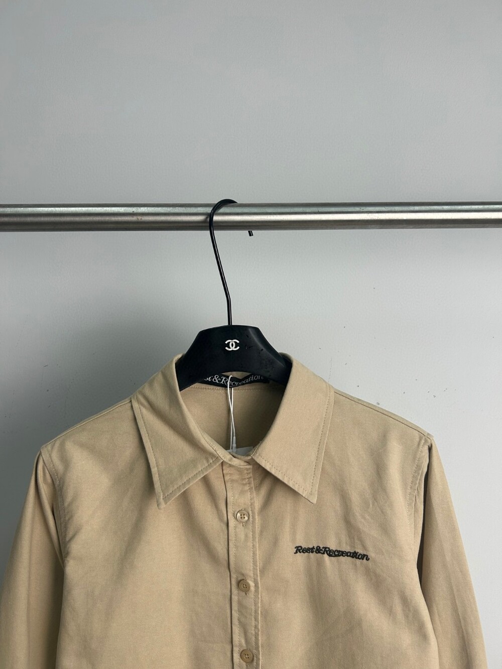 E. R&R 크림 베이지 클래식 크롬 셔츠