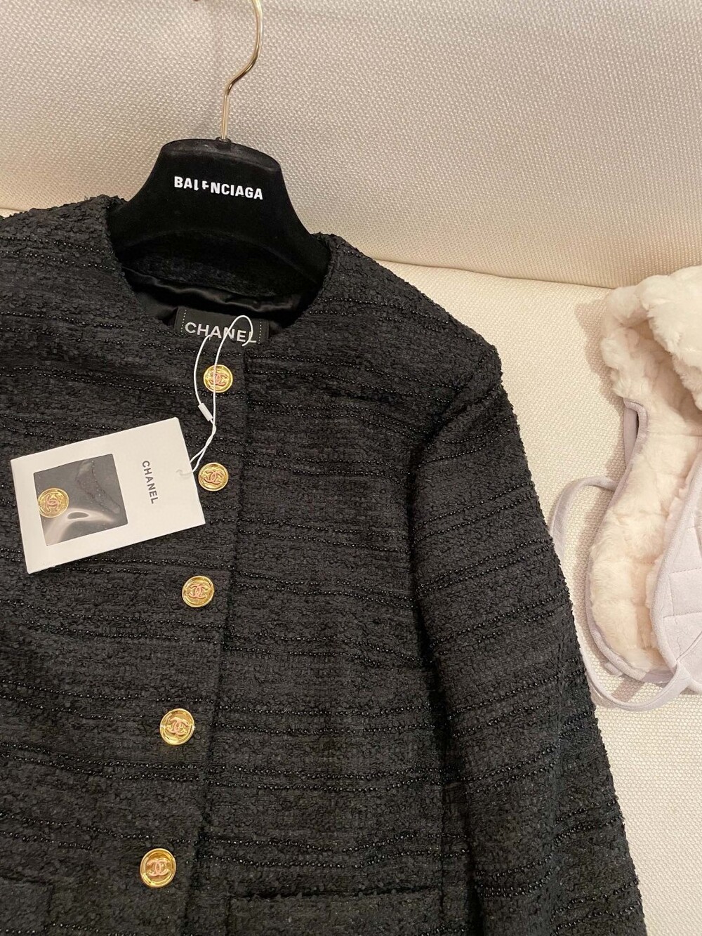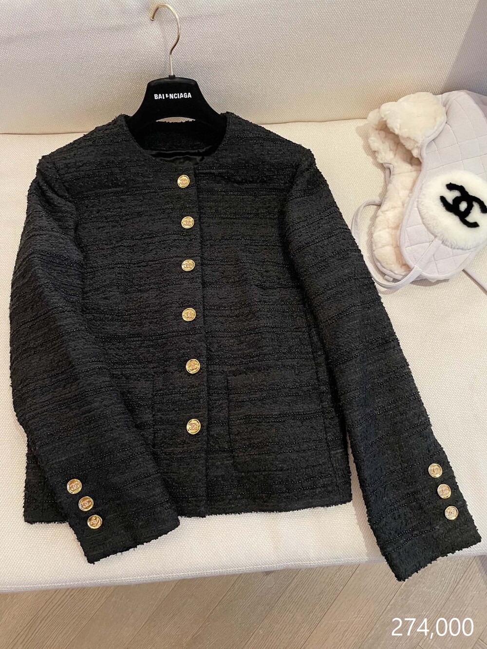 J. CC 블랙 골드버튼 클래식 트위드 자켓