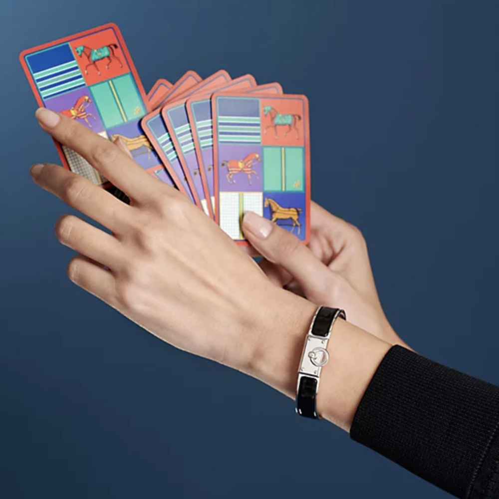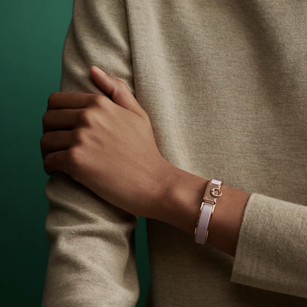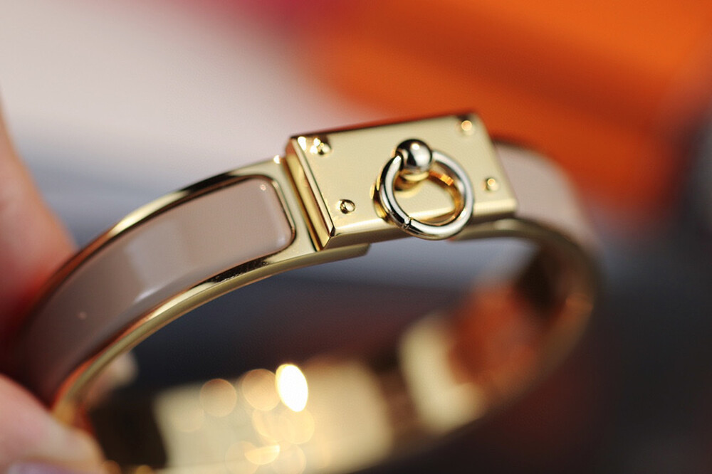 The bracelet lock buckle draws inspiration from the classic elements of Hermès-the ring and padlock, or is equipped with a finely carved and rotatable H that forms a padlock when closed; or cleverly uses the movable ring to create a feminine temperament.