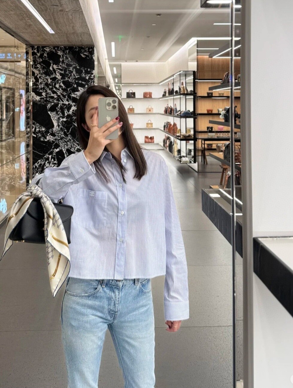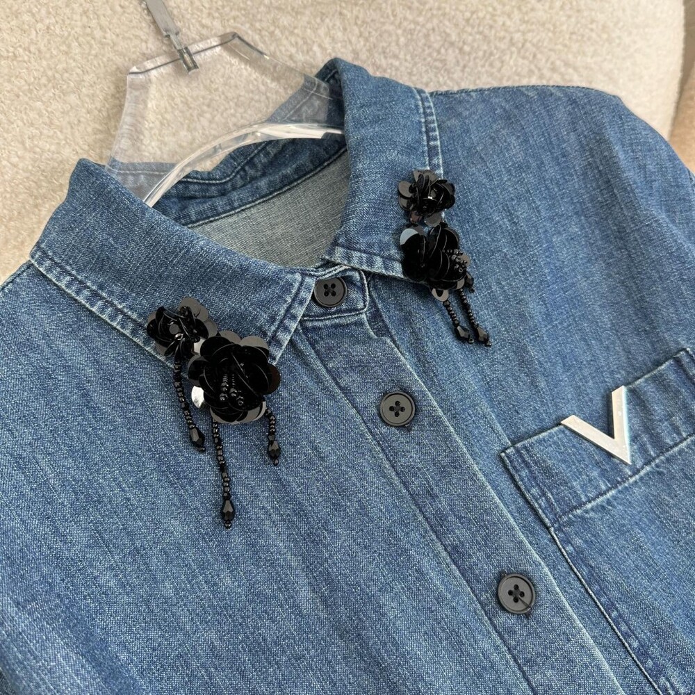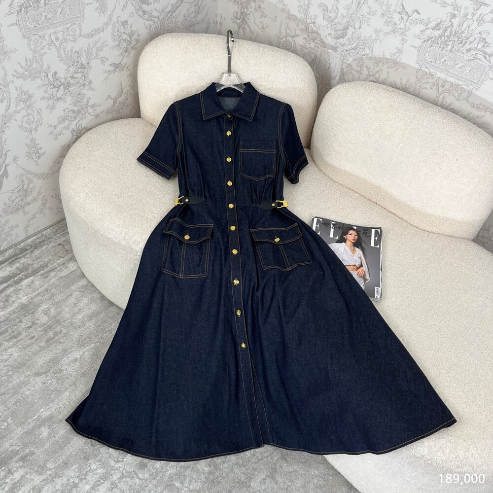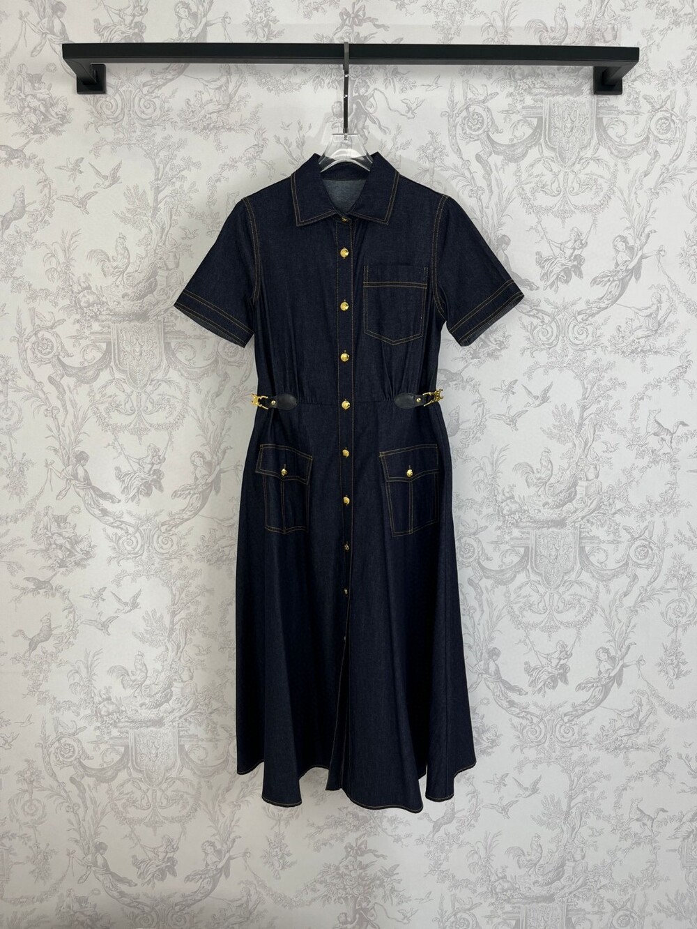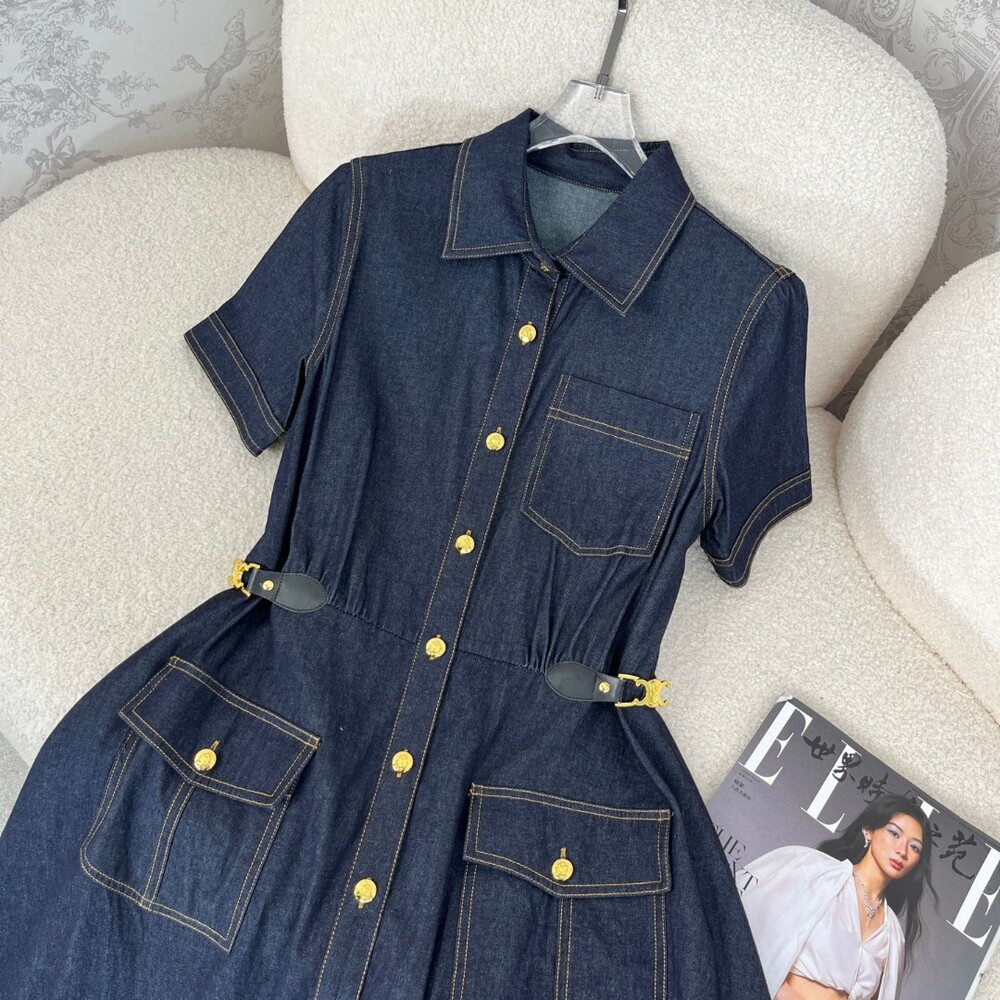 E. 스티치 포인트 데님 골드버튼 셔츠 원피스