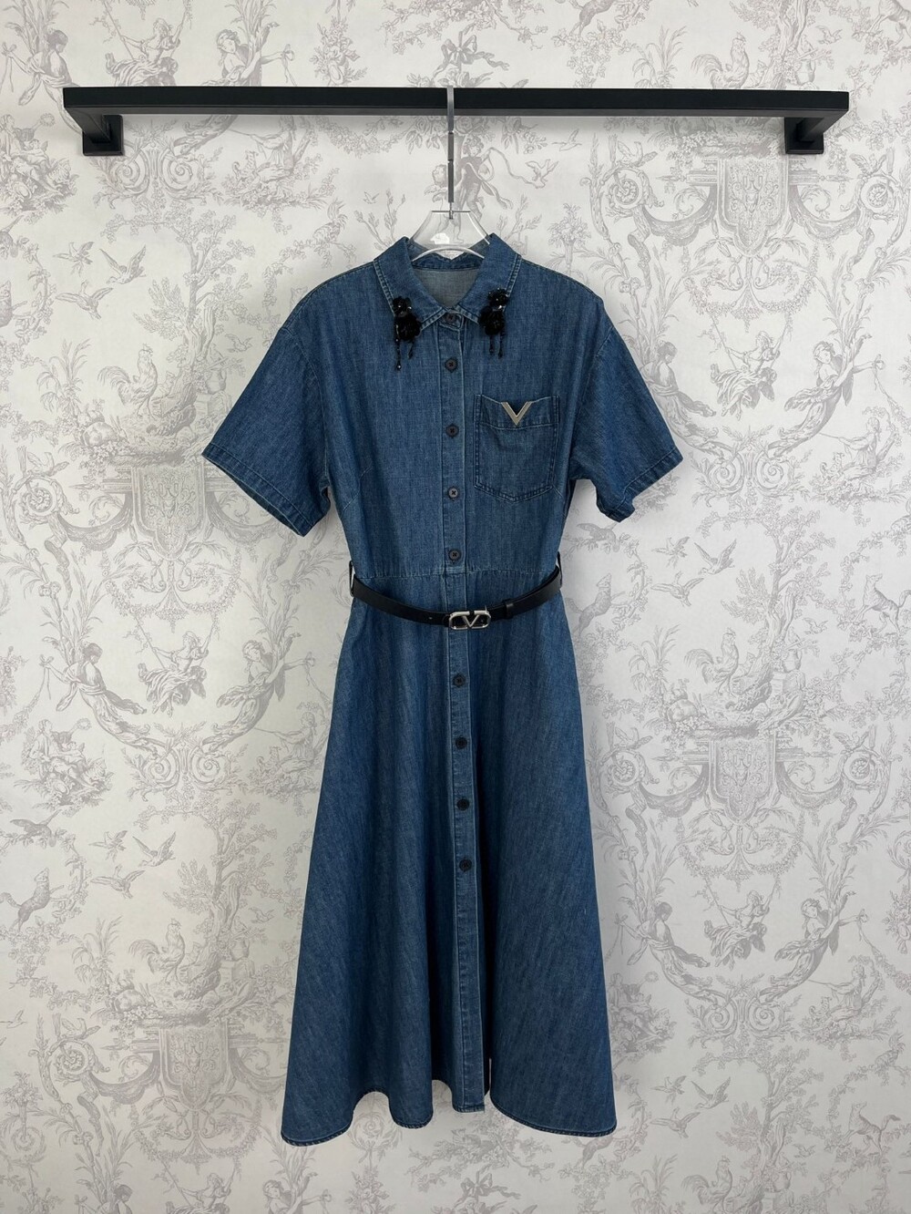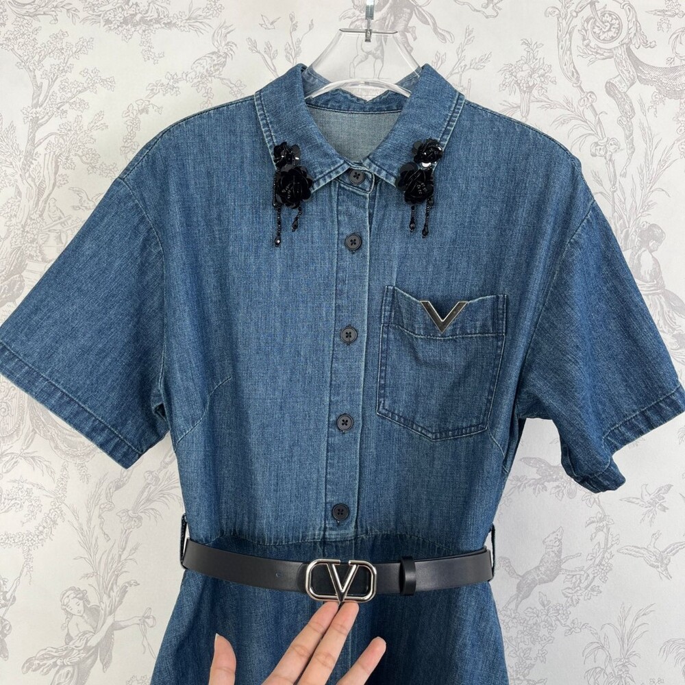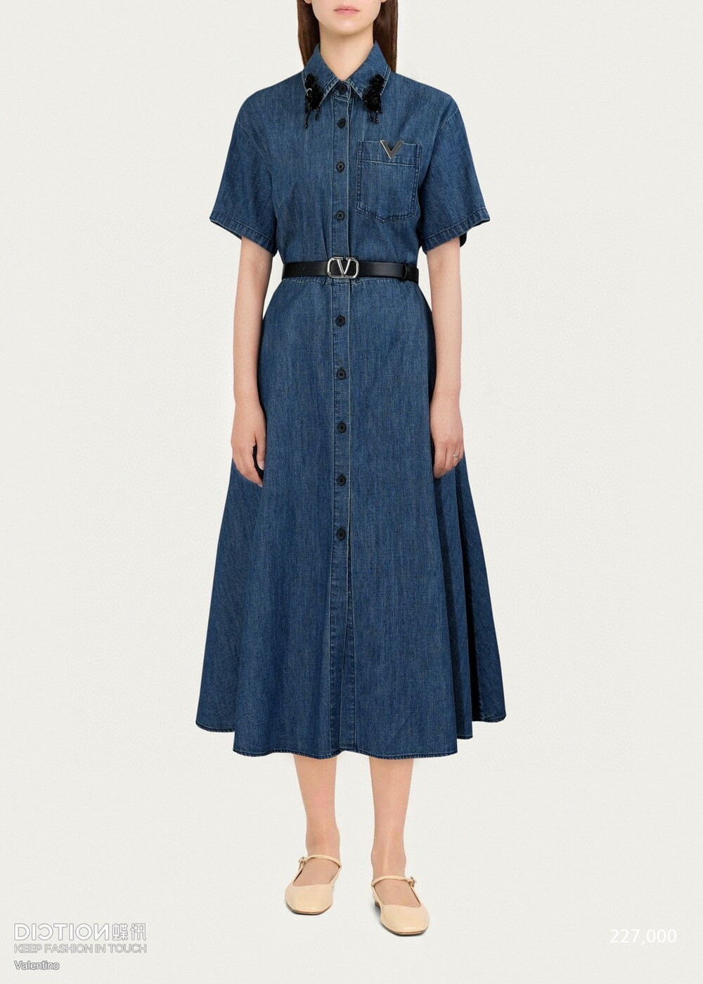F. 티노 스랩 벨트 셔츠 데님 롱 원피스