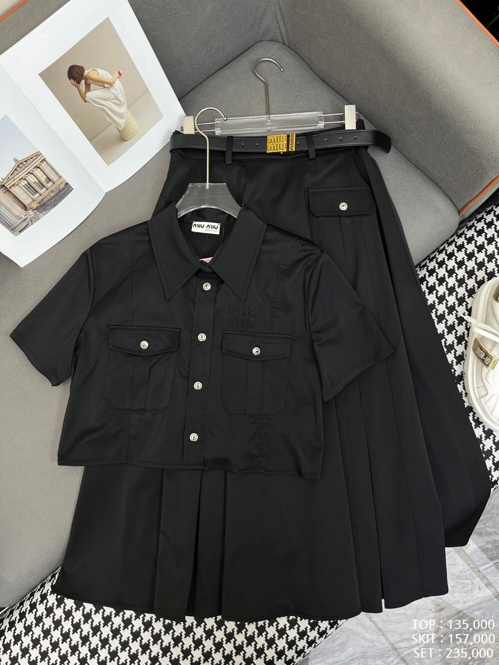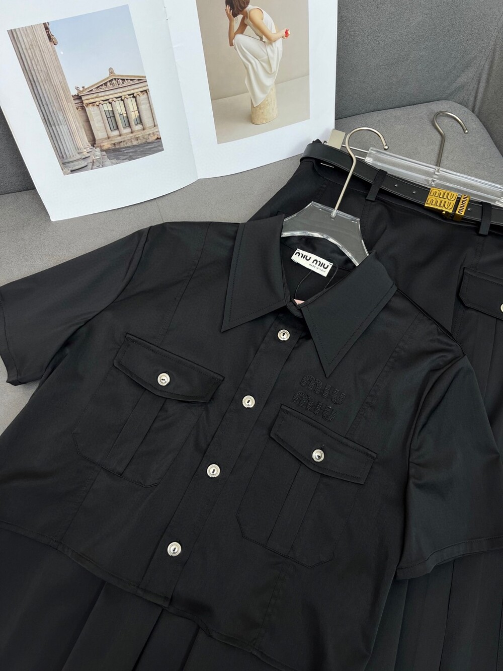 H. 뮤뮤 클래식 포켓 반팔 투피스