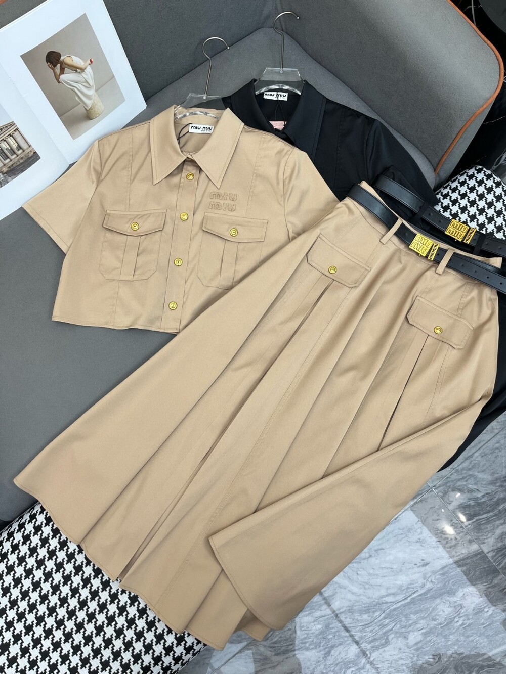 M. 뮤뮤 배색 절개 세일러 크롭 투피스