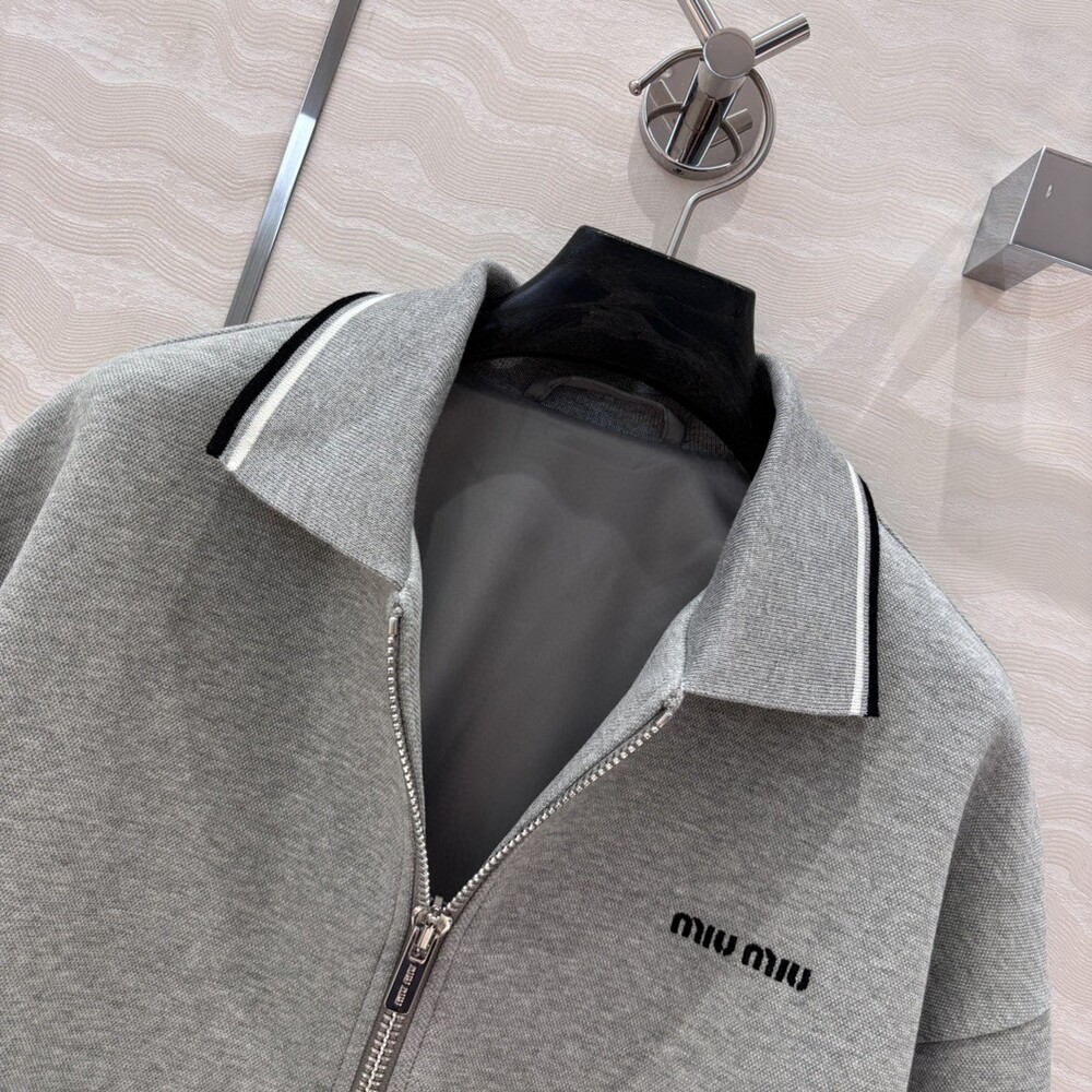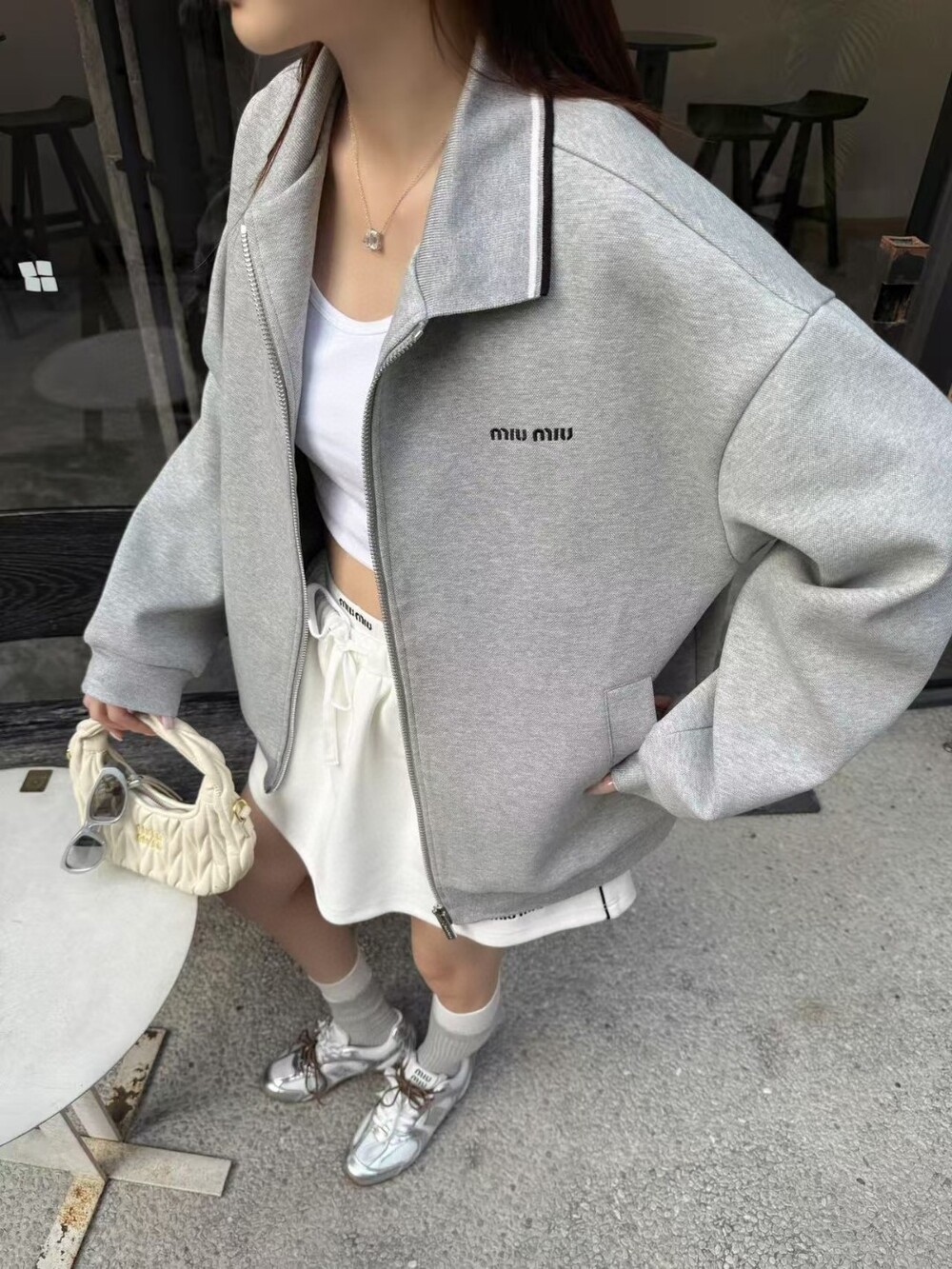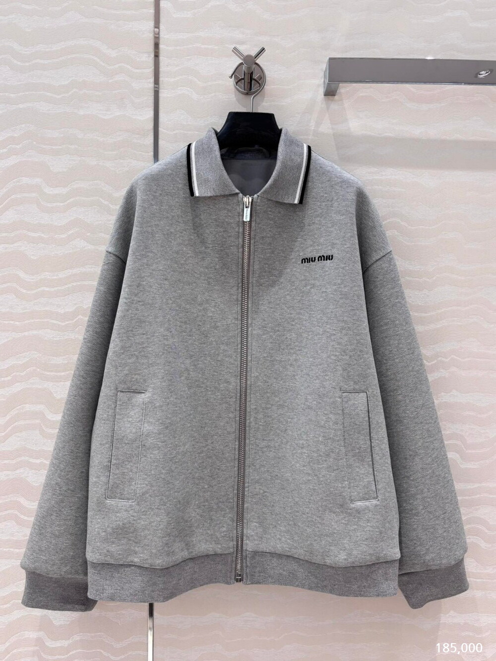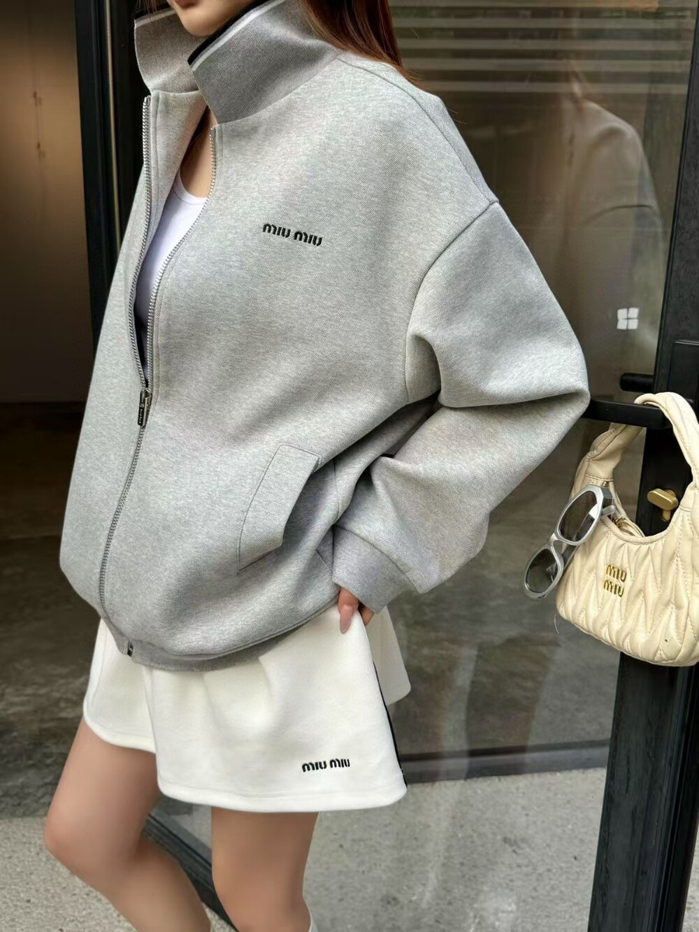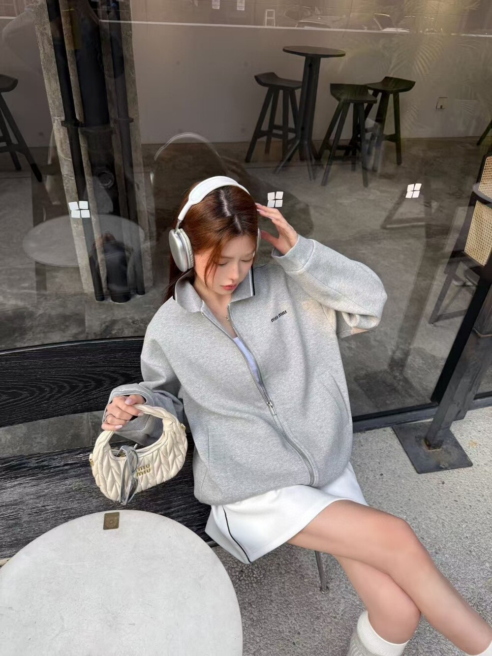 O. 뮤뮤 자수 카라 집업 맨투맨