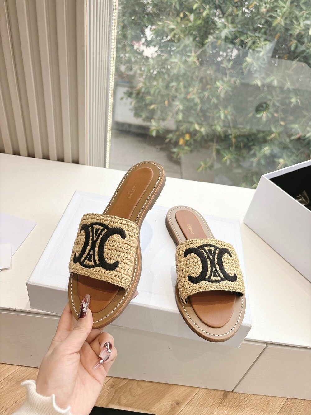 P. 셀리 라탄 자수 스트로우 슬리퍼