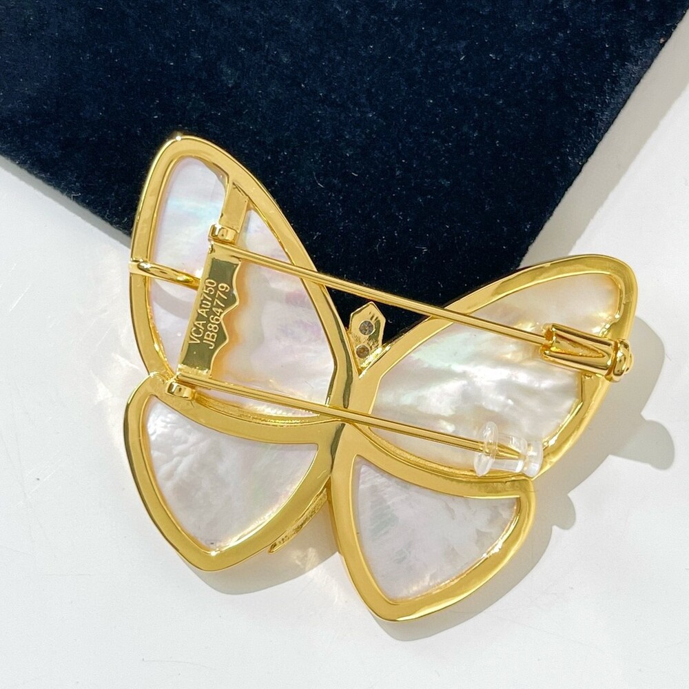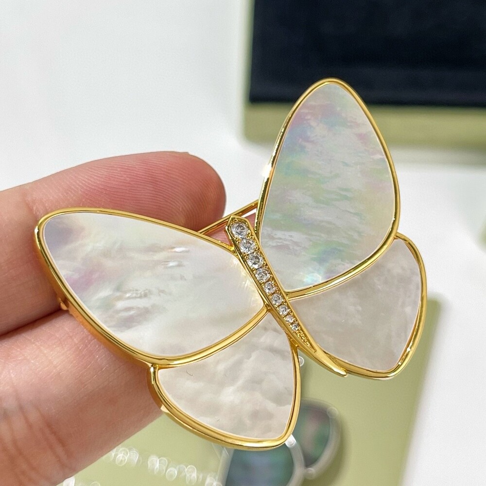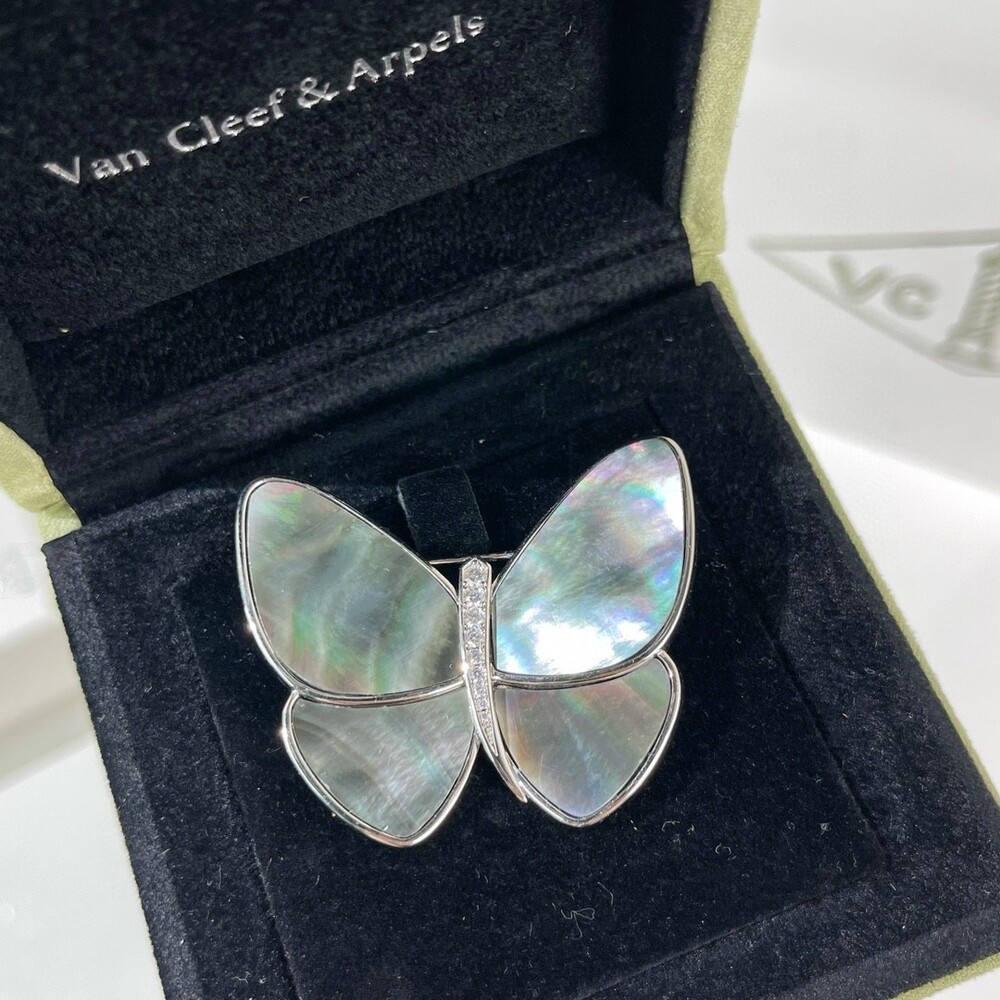 Van Cleef & Arpels White Shell Grey Shell Butterfly Brooch V gold Meng Wanzhou with mother-of-pearl shell, diamond group composition.Butterfly wings slightly lifted, as if the spirit, full of spirit.Butterfly originally meant to be reborn, it broke the cocoon, self-subversion after the state, but also meant that although the past was difficult, I always ushered in hope, ushered in a better future and myself.