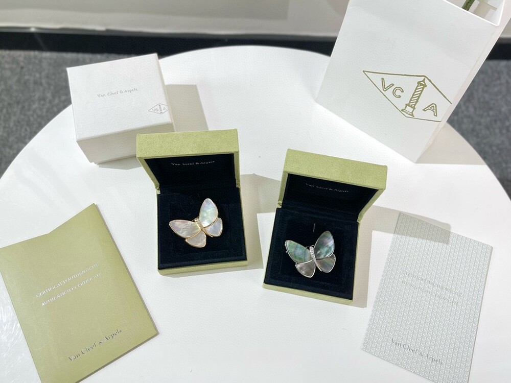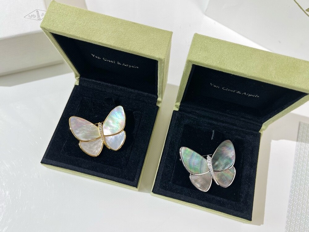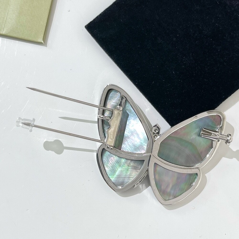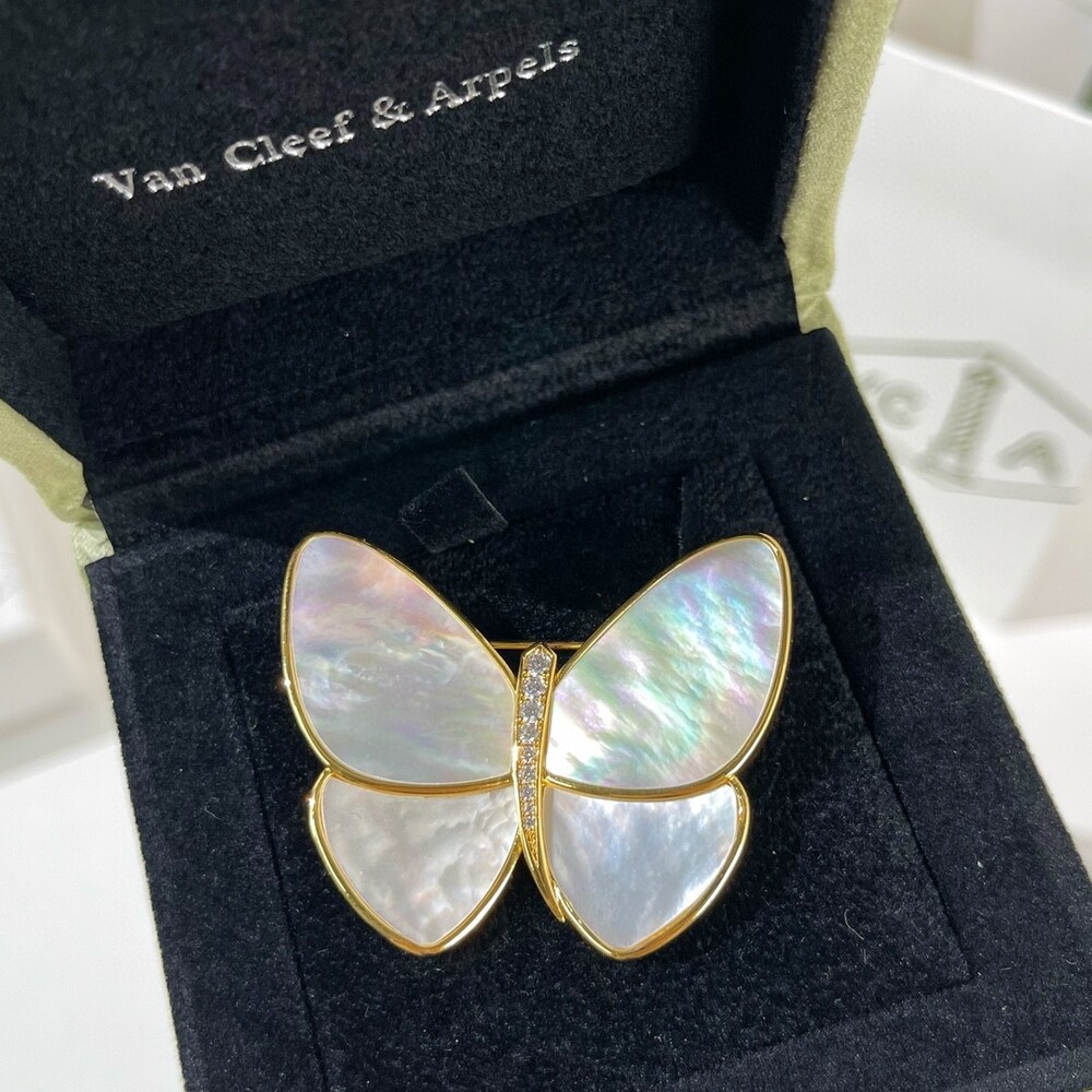 Van Cleef & Arpels White Shell Grey Shell Butterfly Brooch V gold Meng Wanzhou with mother-of-pearl shell, diamond group composition.Butterfly wings slightly lifted, as if the spirit, full of spirit.Butterfly originally meant to be reborn, it broke the cocoon, self-subversion after the state, but also meant that although the past was difficult, I always ushered in hope, ushered in a better future and myself.