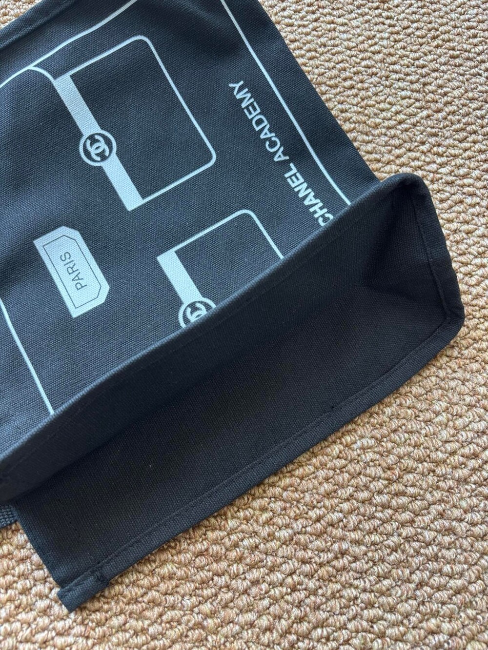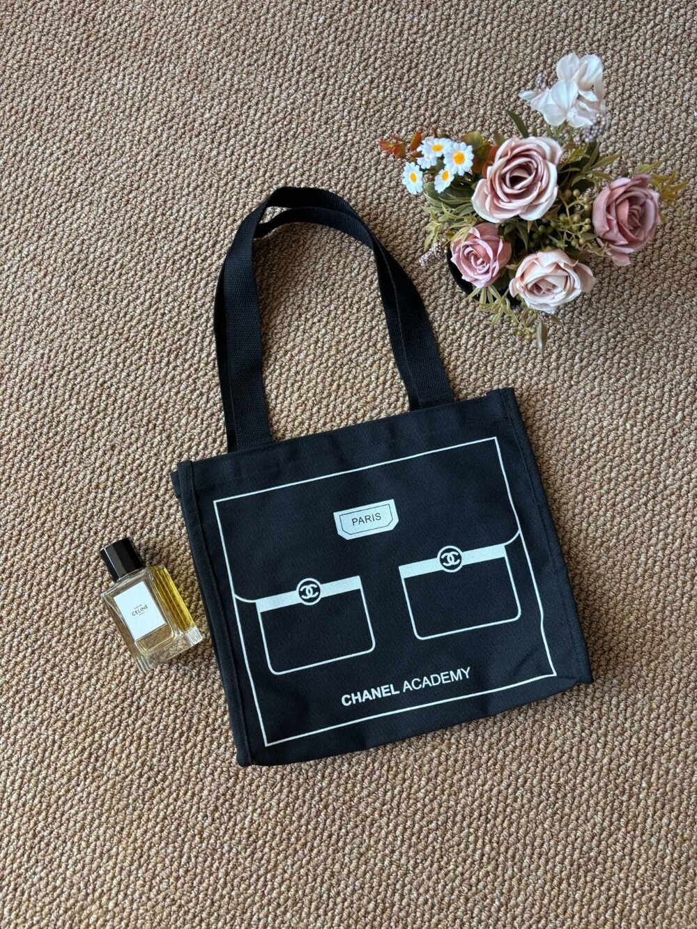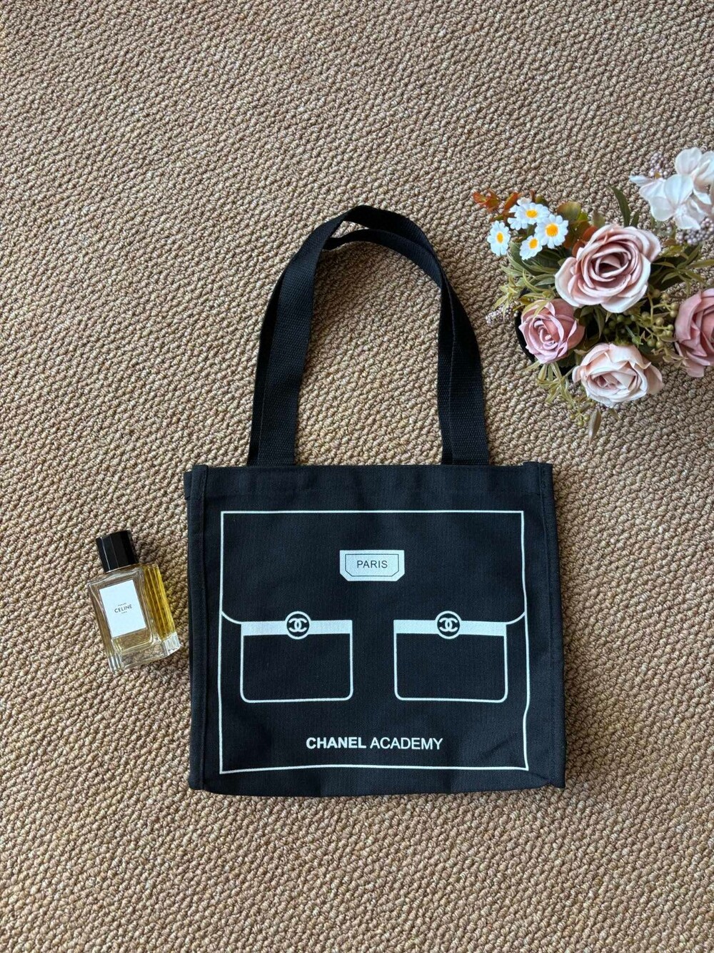 it features bold “CHANEL ACADEMY” and “PARIS” prints that add a chic, collegiate-inspired vibe. Lightweight yet durable, this tote is perfect for daily use —