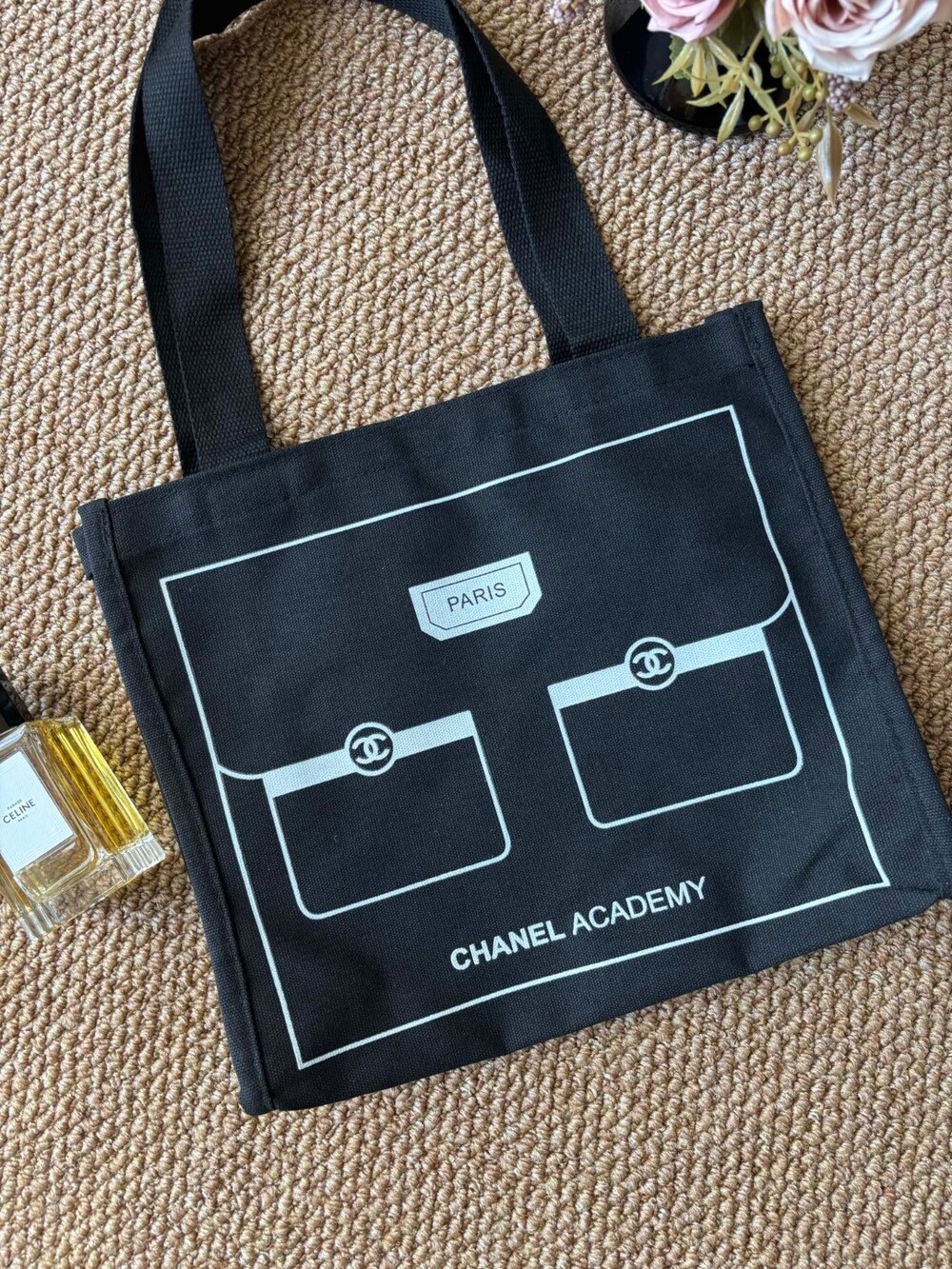 The Chanel Academy Canvas Tote Bag combines everyday practicality with timeless elegance.
