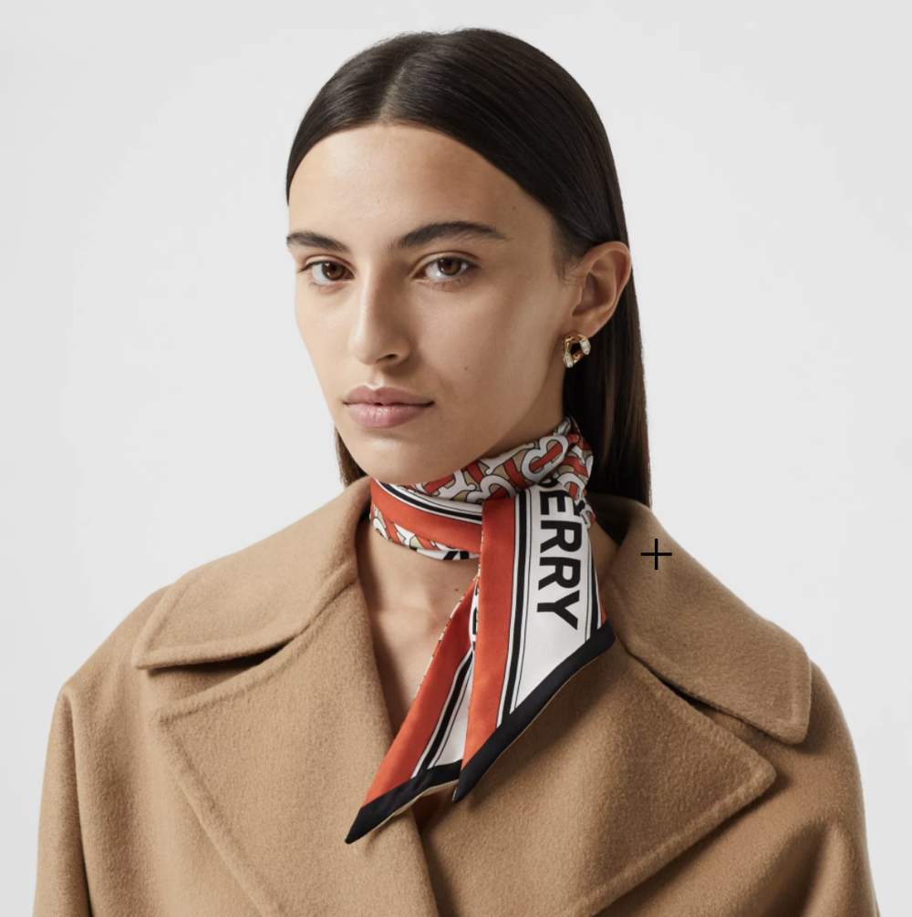 Points left over at the Burberry counter. Only sellers can exchange. Skinny scarf in silk twill. Digitally printed Burberry logo and Thomas Burberry monogram.