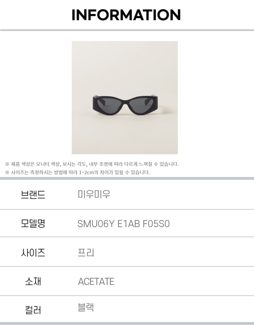 [국내재고보유] 미우미우 로고 여성 선글라스 SMU06Y E1AB F05S0