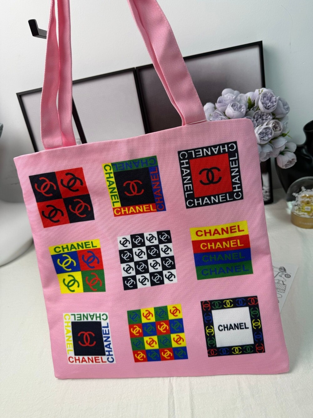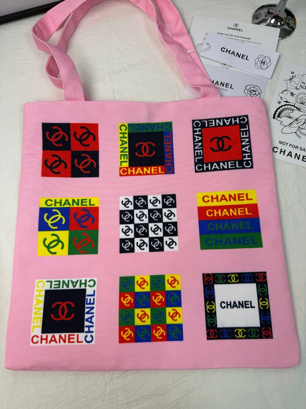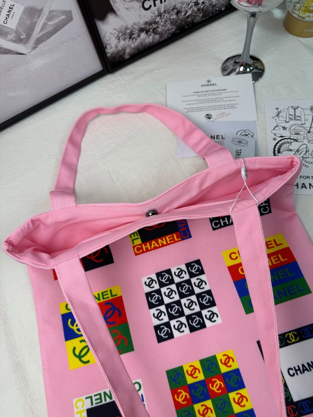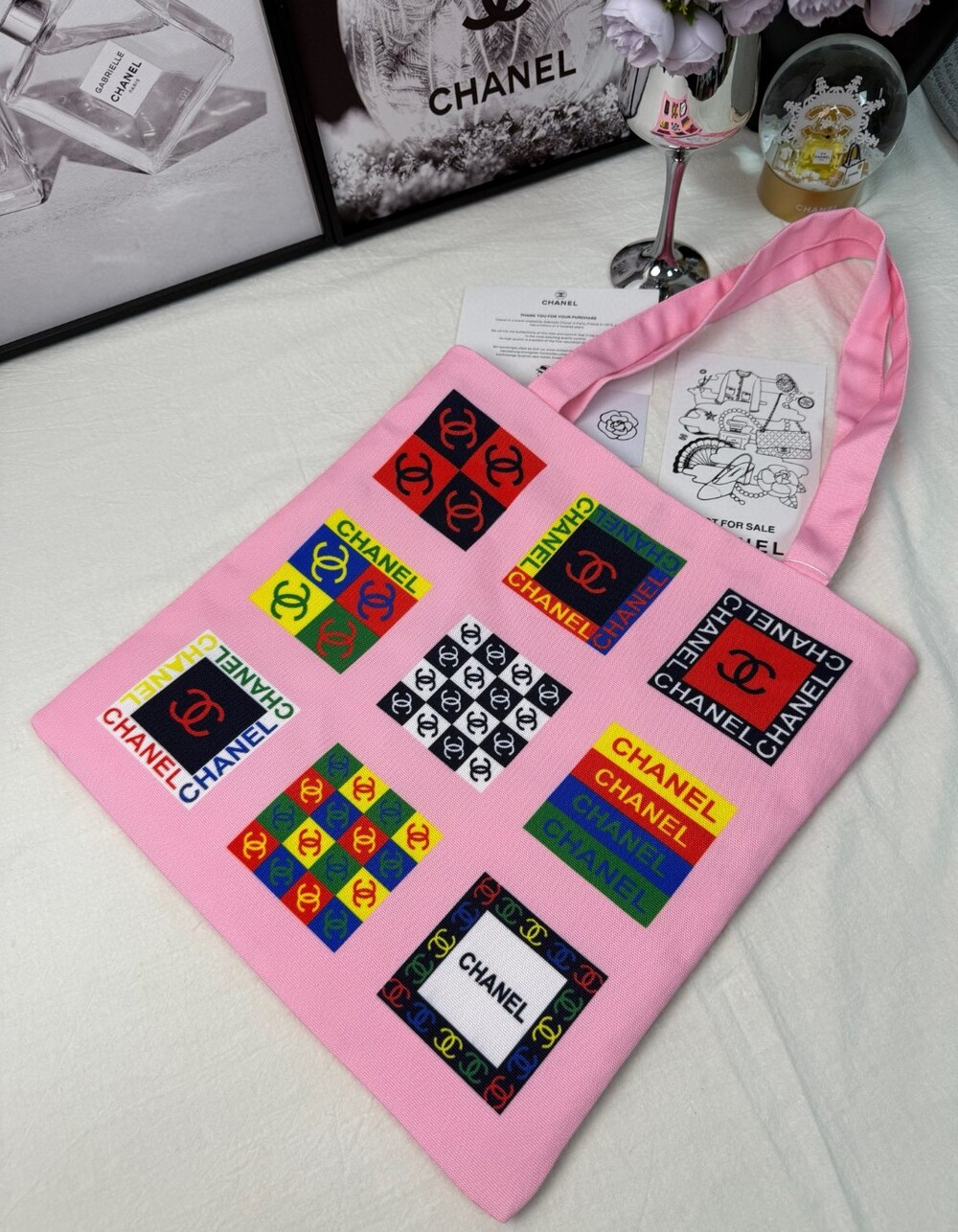 Chanel Employee Exclusive] Pink Check Graffiti Canvas Tote B[ag