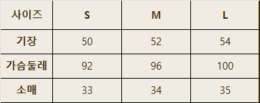 <상의 사이즈표>