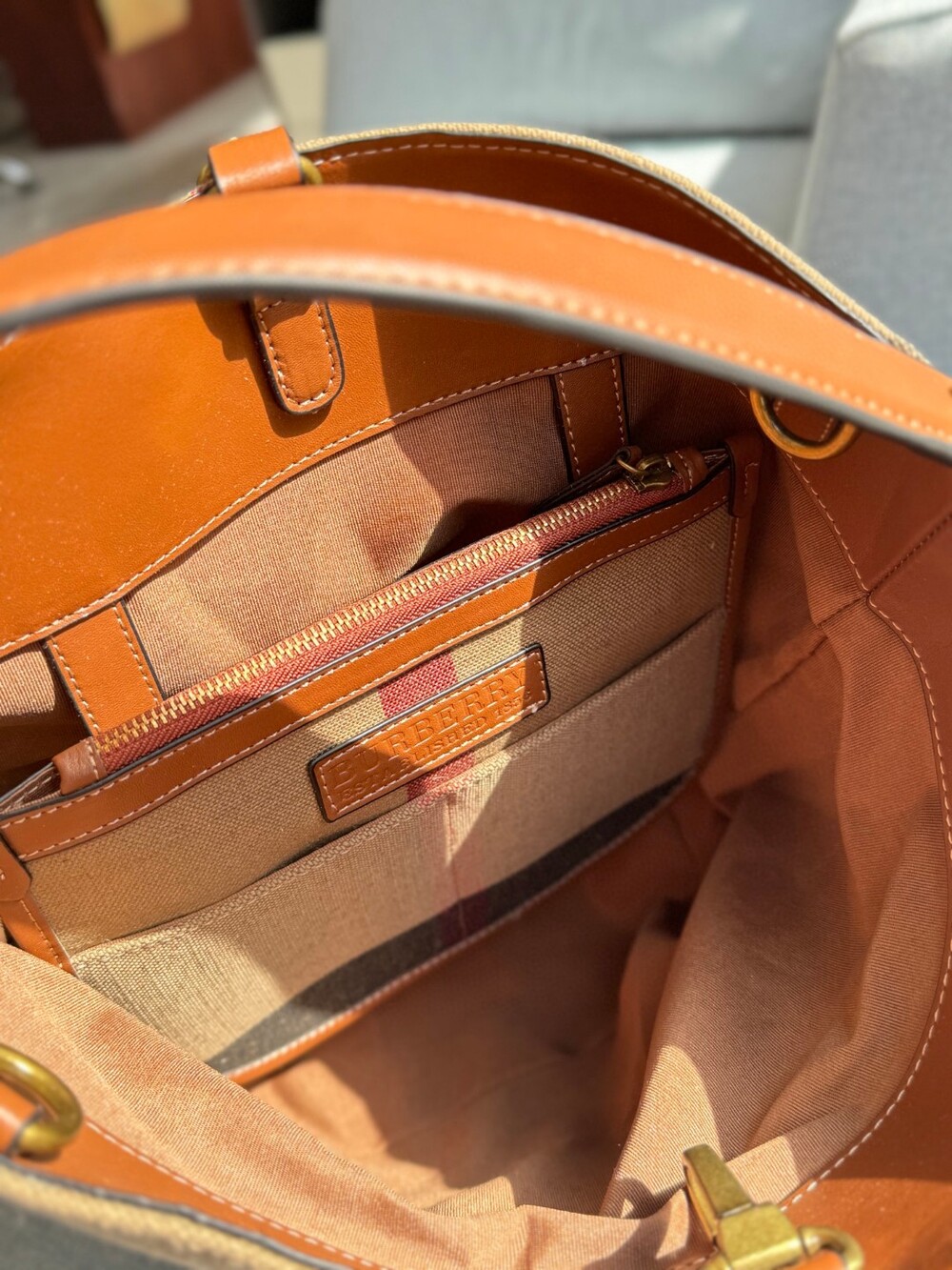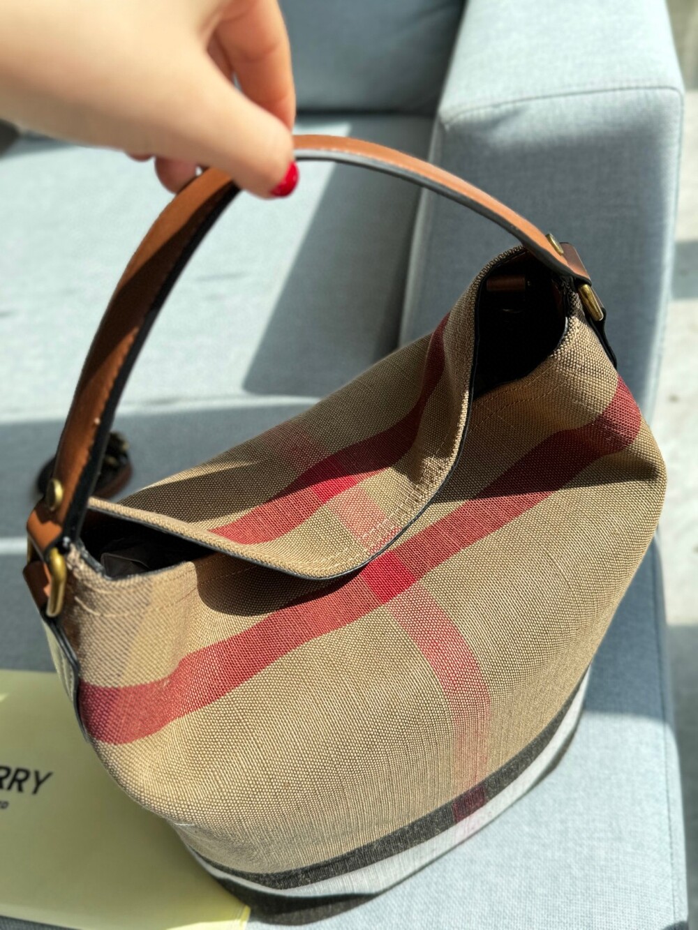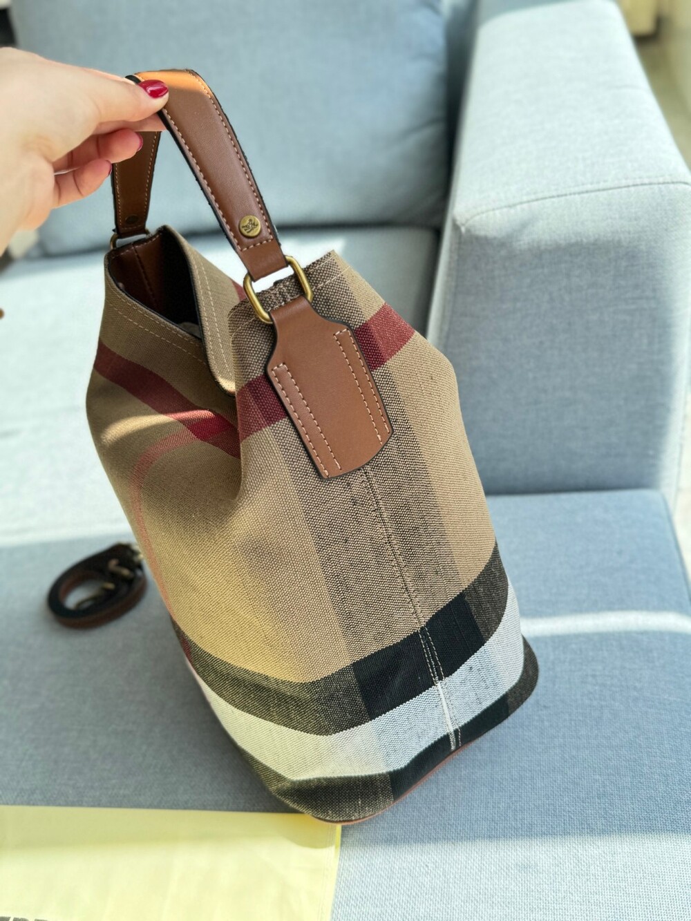 Burberry Classic Check Canvas Bucket Bag (with inner pouch) Iconic Burberry check pattern, made with sturdy, non-deforming canvas. Minimalist and effortlessly stylish—perfect for any outfit Still trending and versatile all year round A daily bag that combines charm and practicality