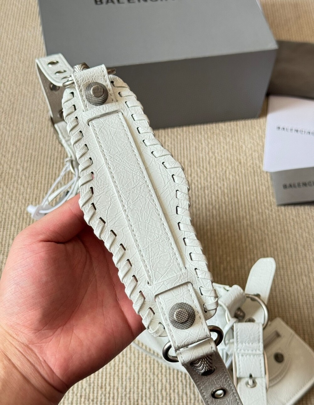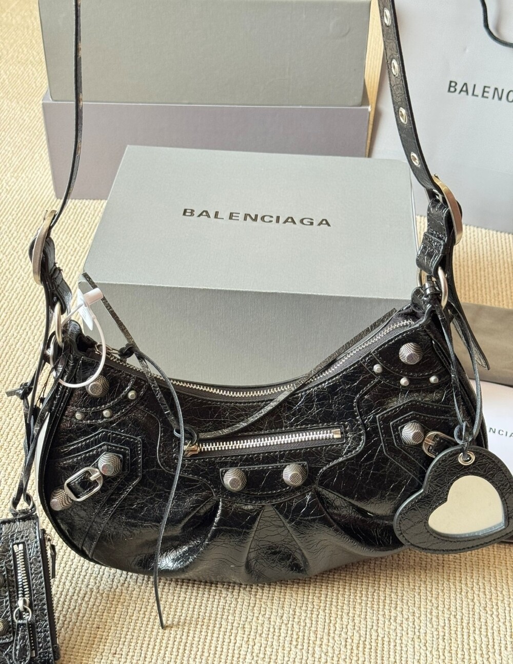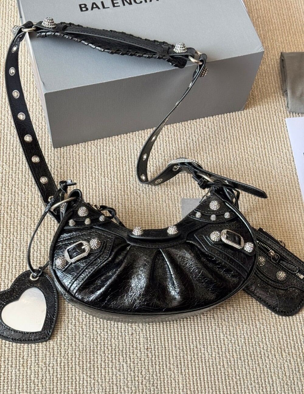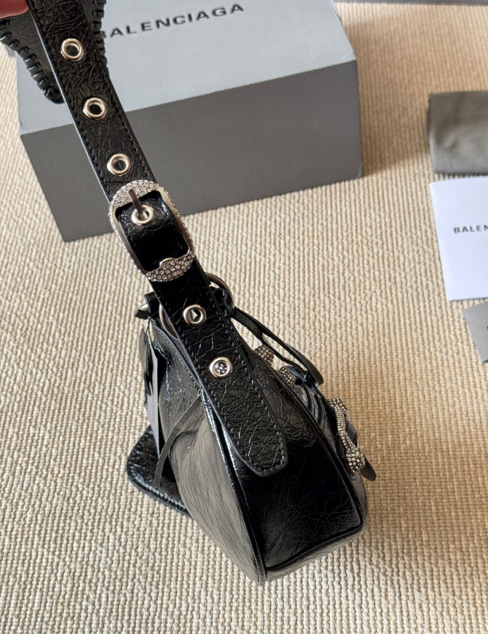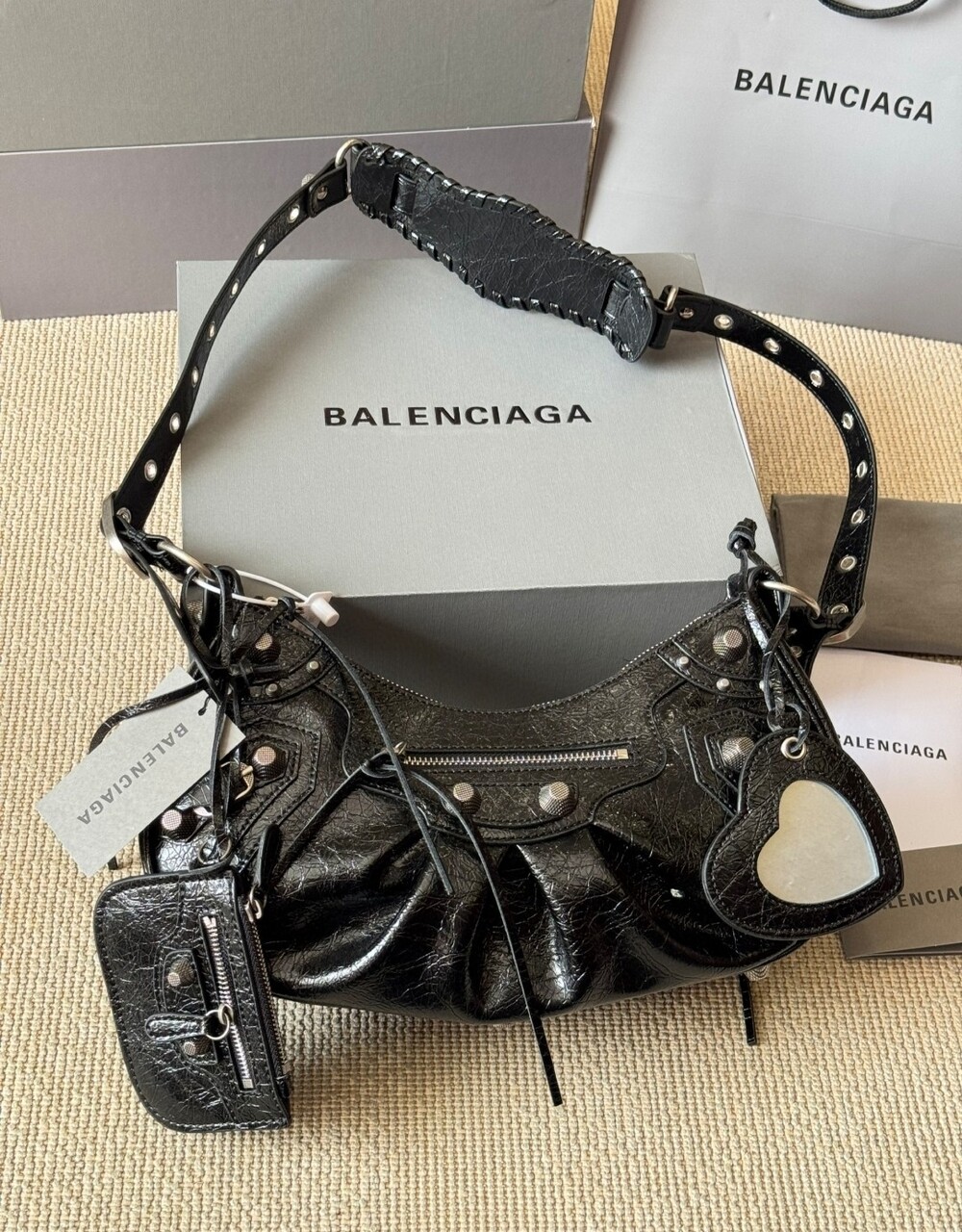 this bag blends a vintage rock-chic mood with Balenciaga’s signature edgy details.