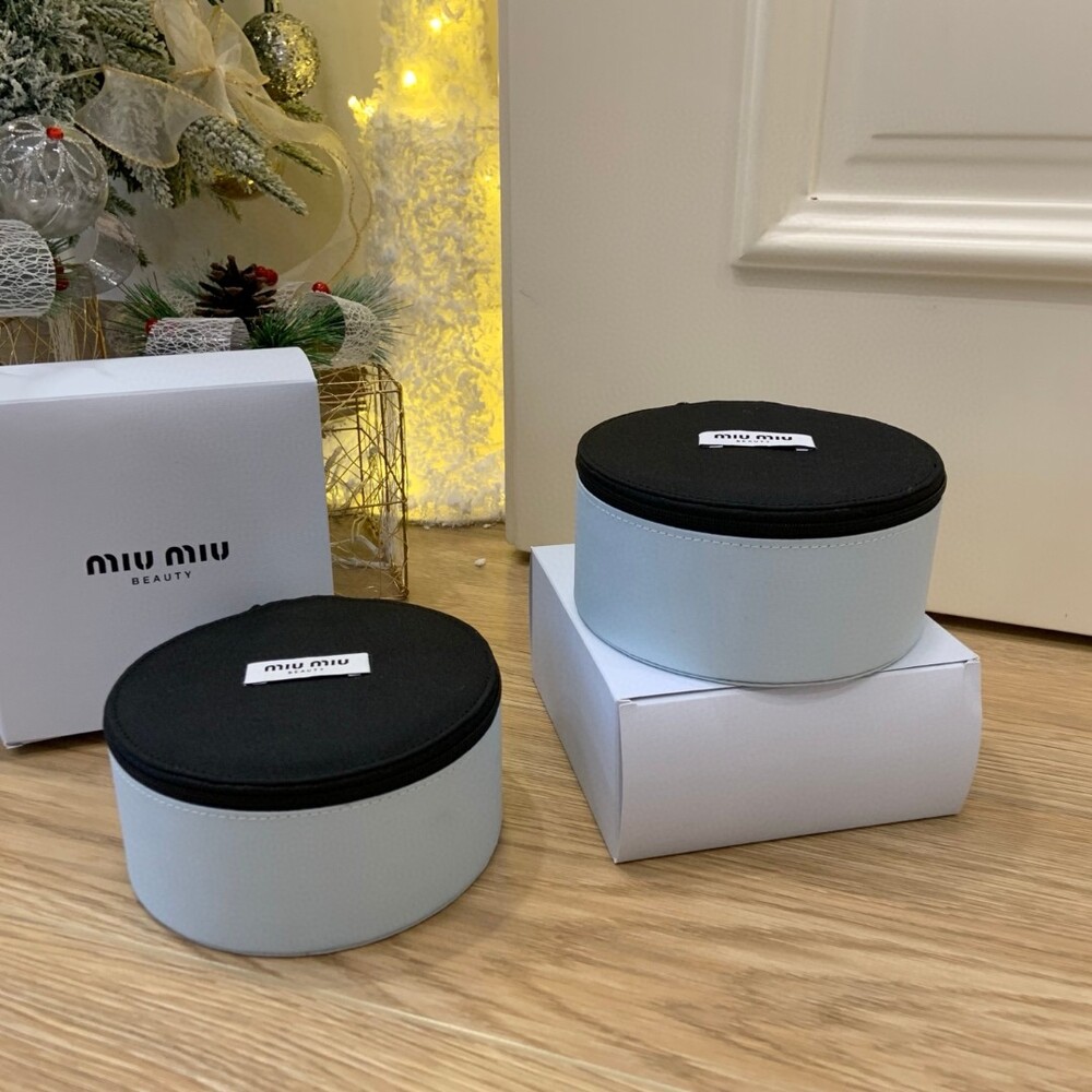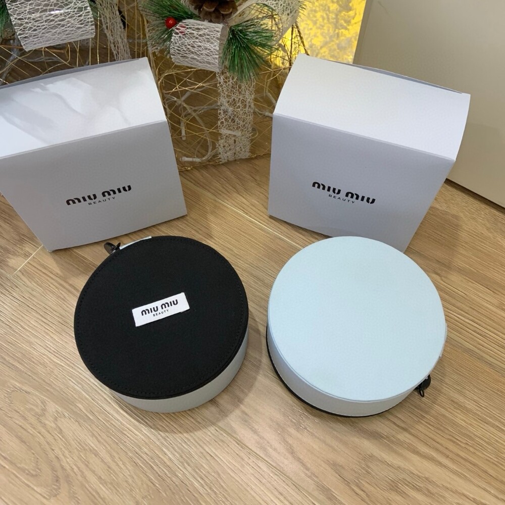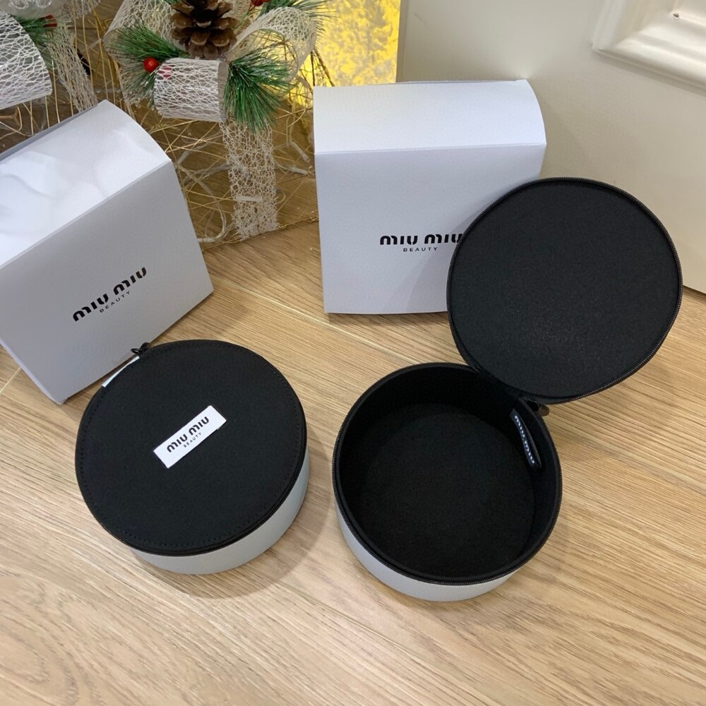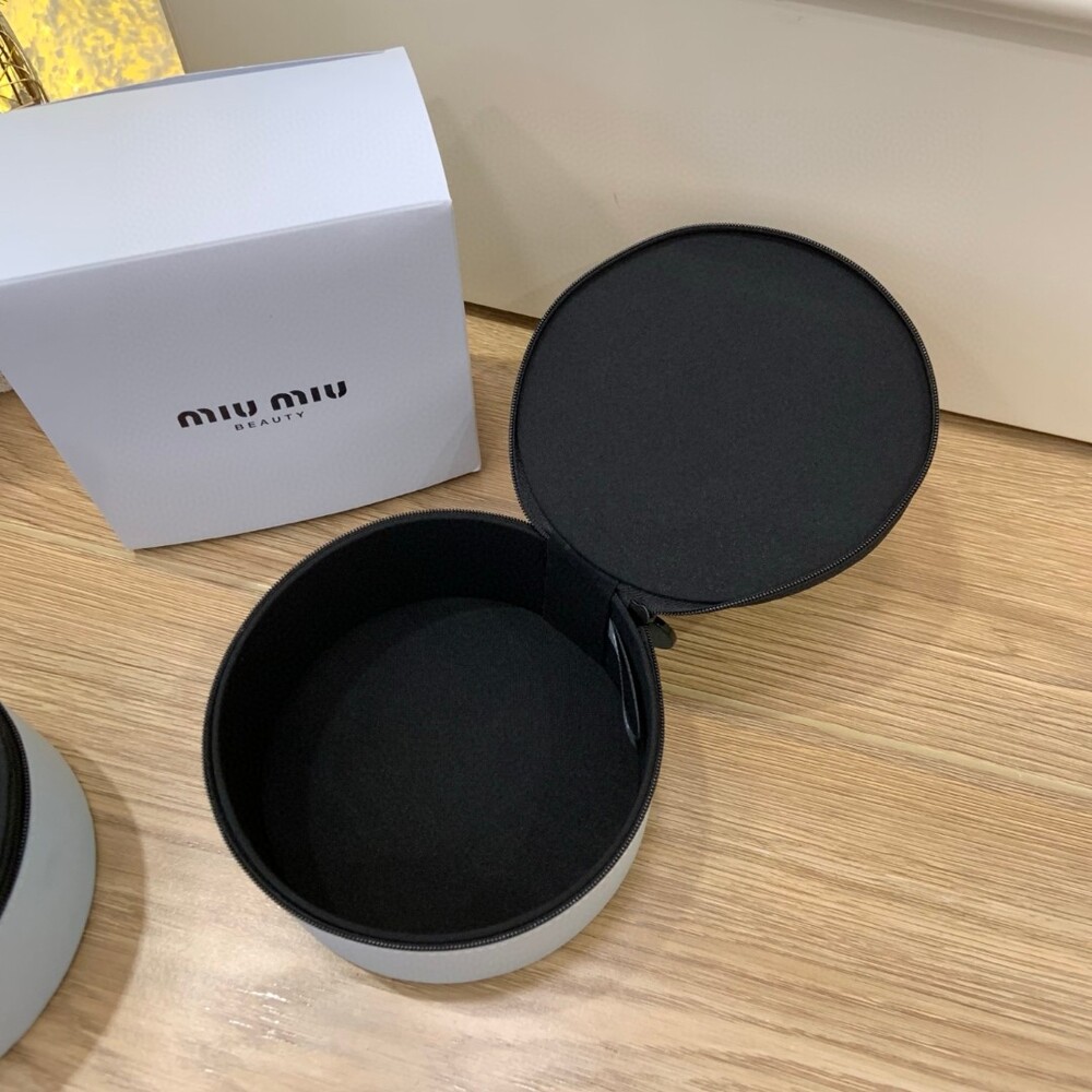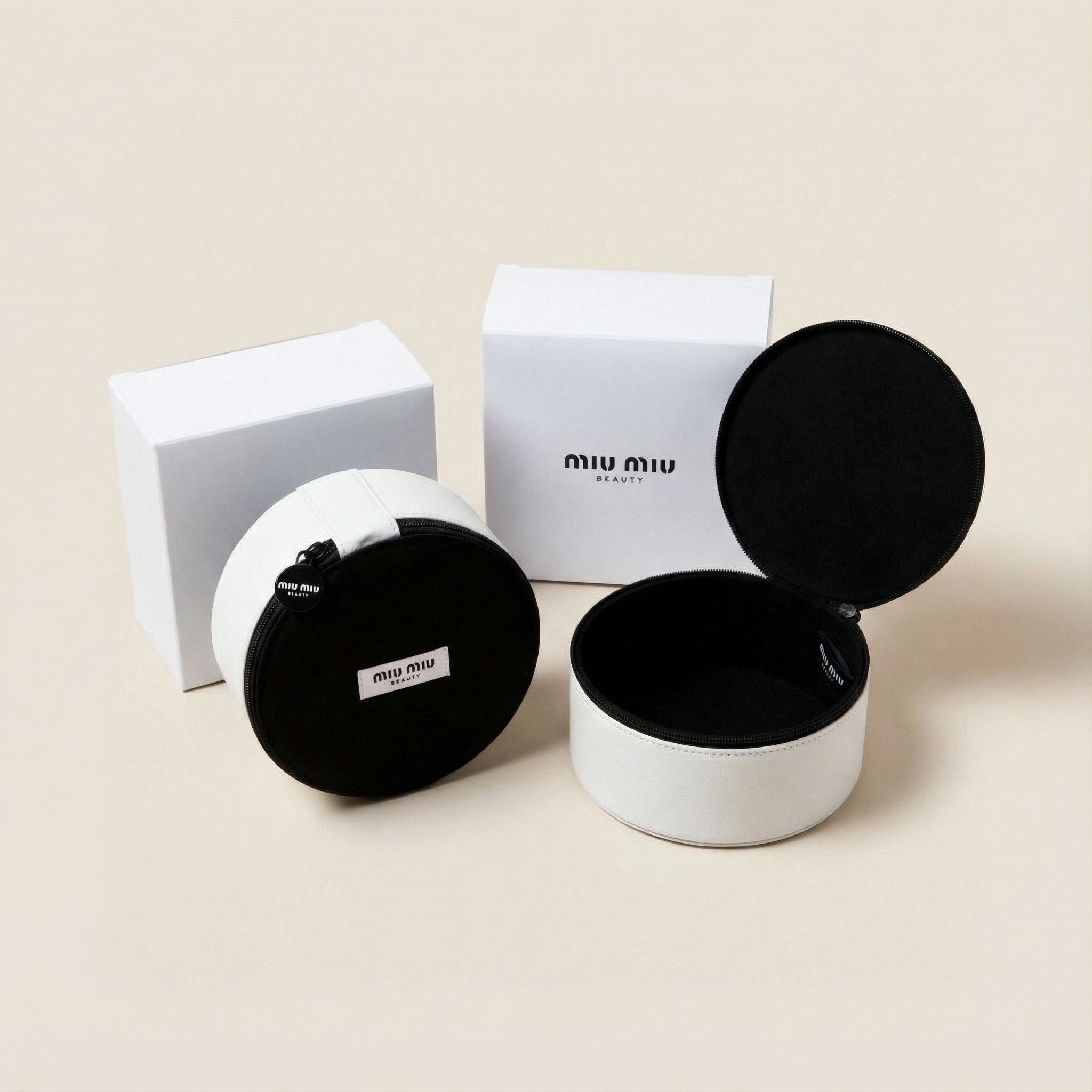 A rare and minimalist round storage case from Miu Miu Beauty,